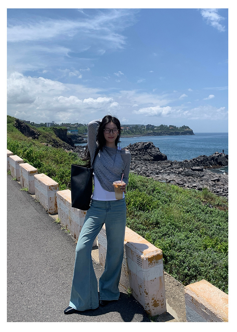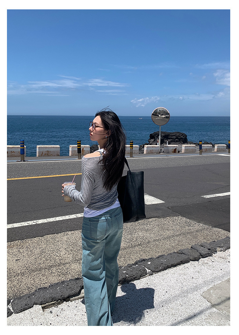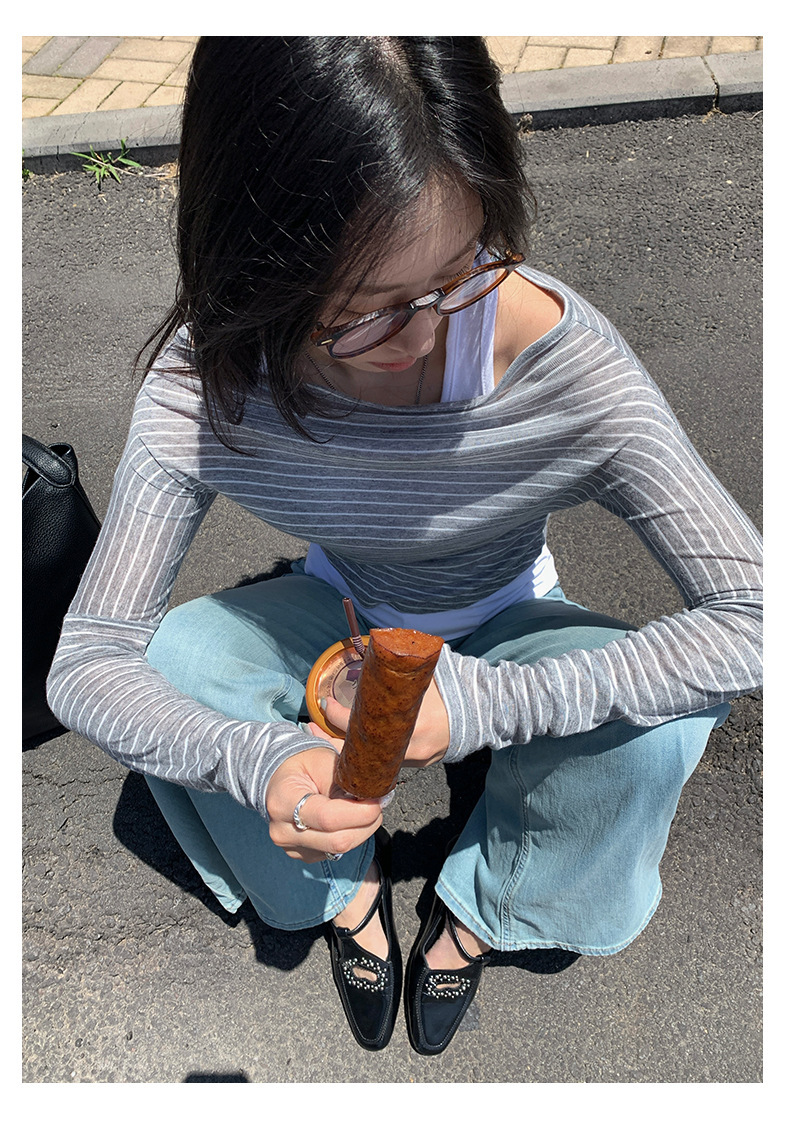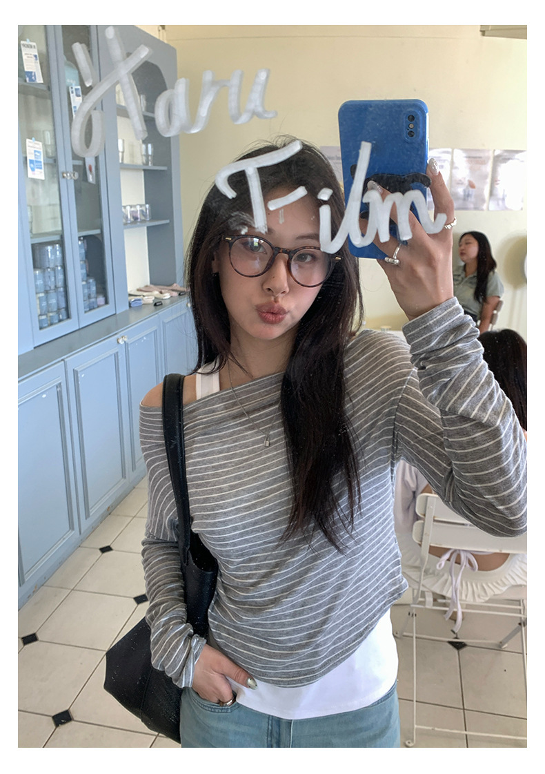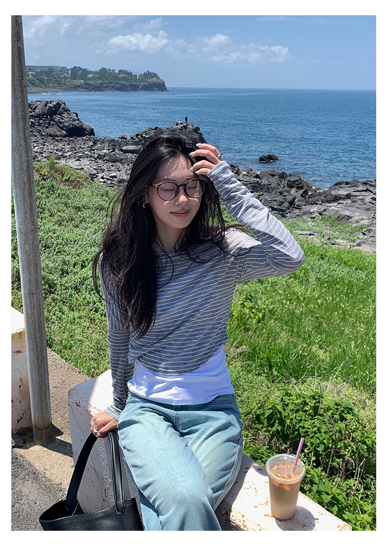 *o-ha-you*【FHZH1KA5030833】韓版條紋一字領長袖T恤+吊帶背心兩件套防曬上衣