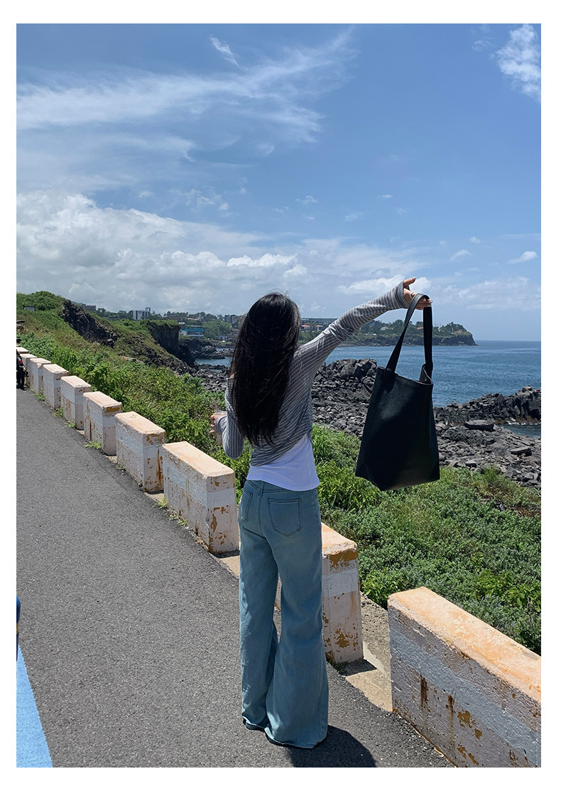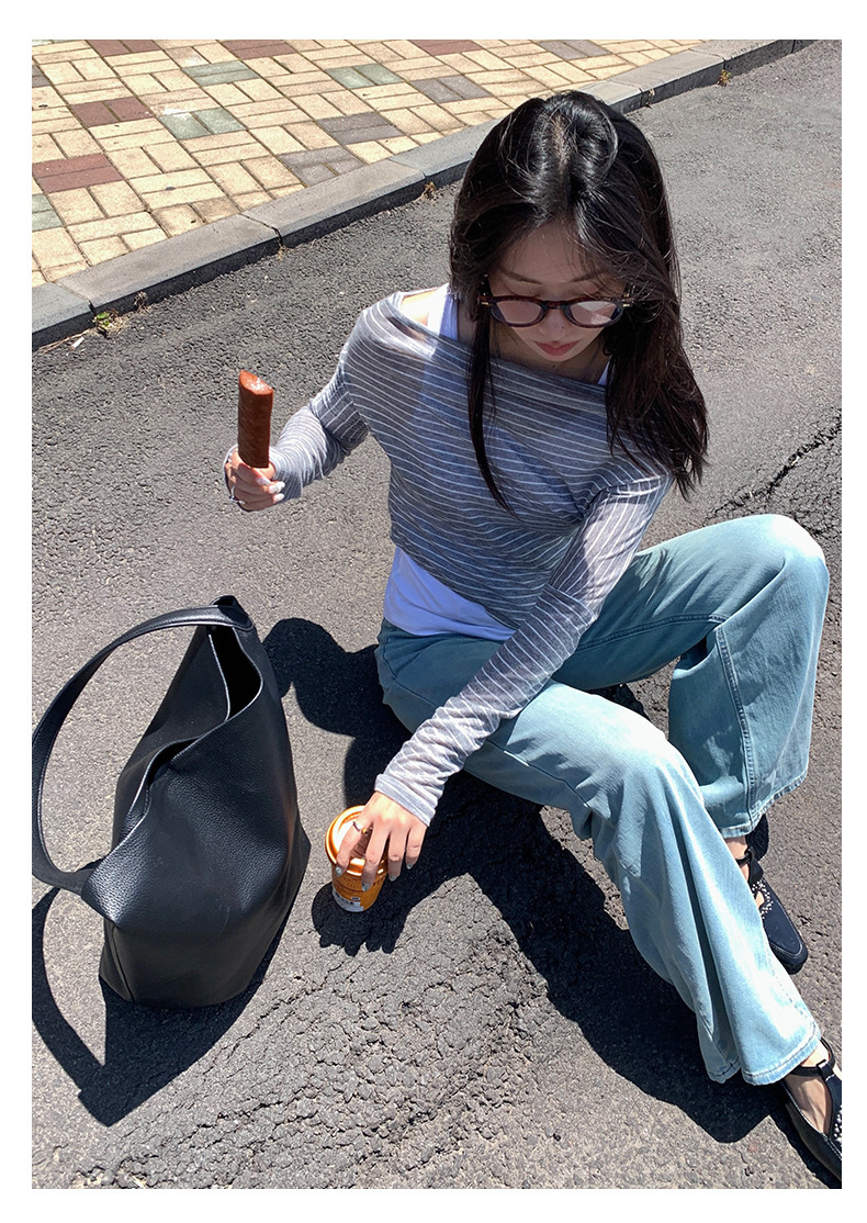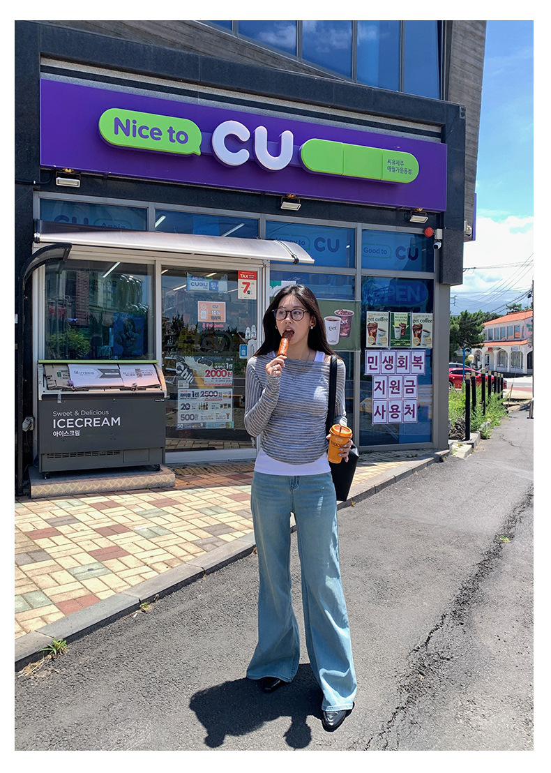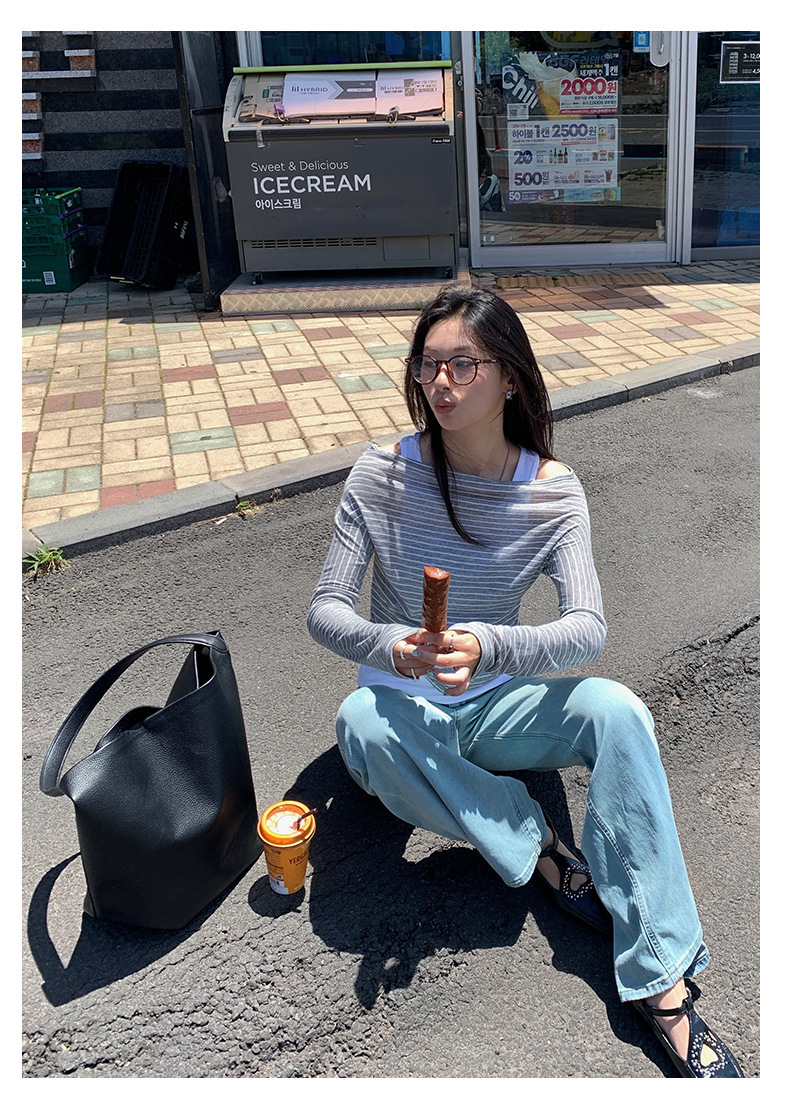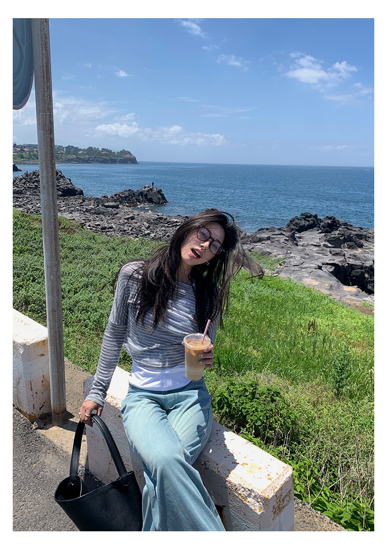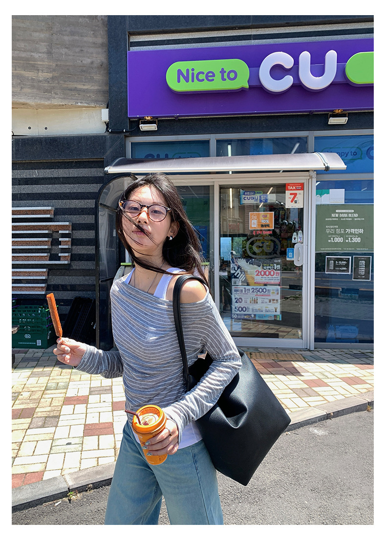 *o-ha-you*【FHZH1KA5030833】韓版條紋一字領長袖T恤+吊帶背心兩件套防曬上衣