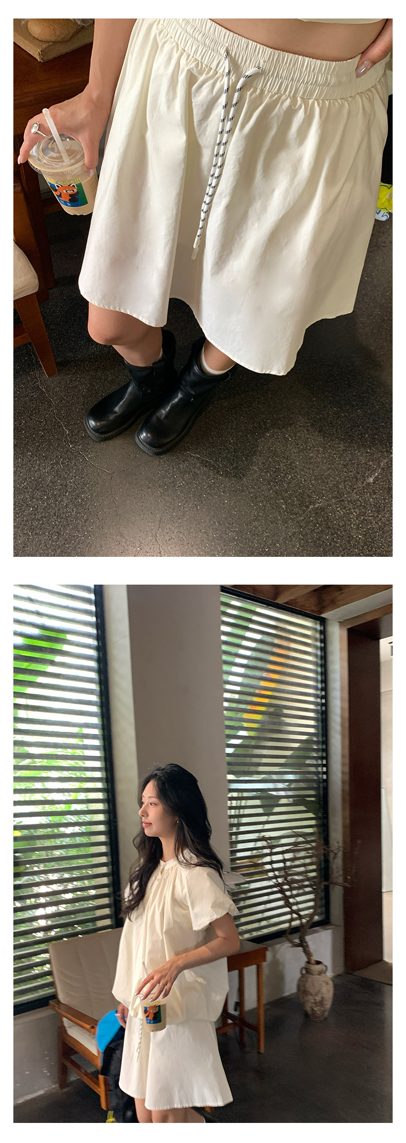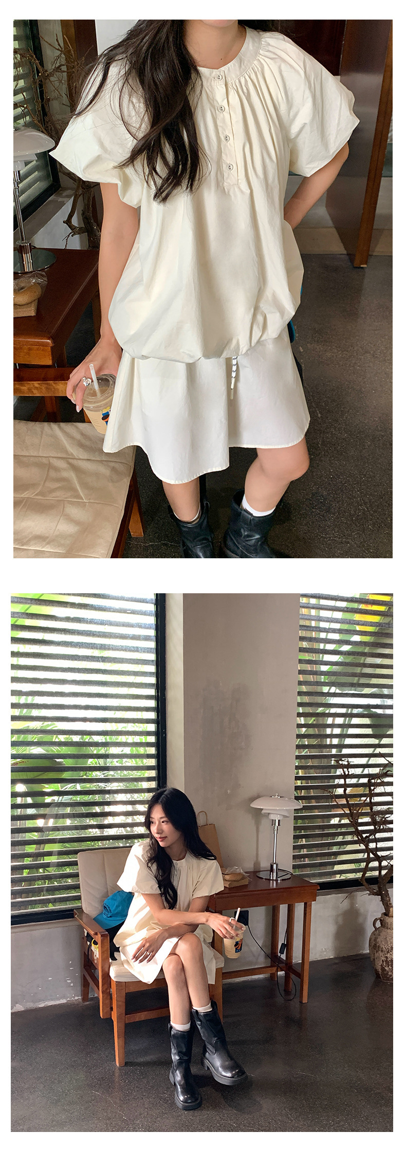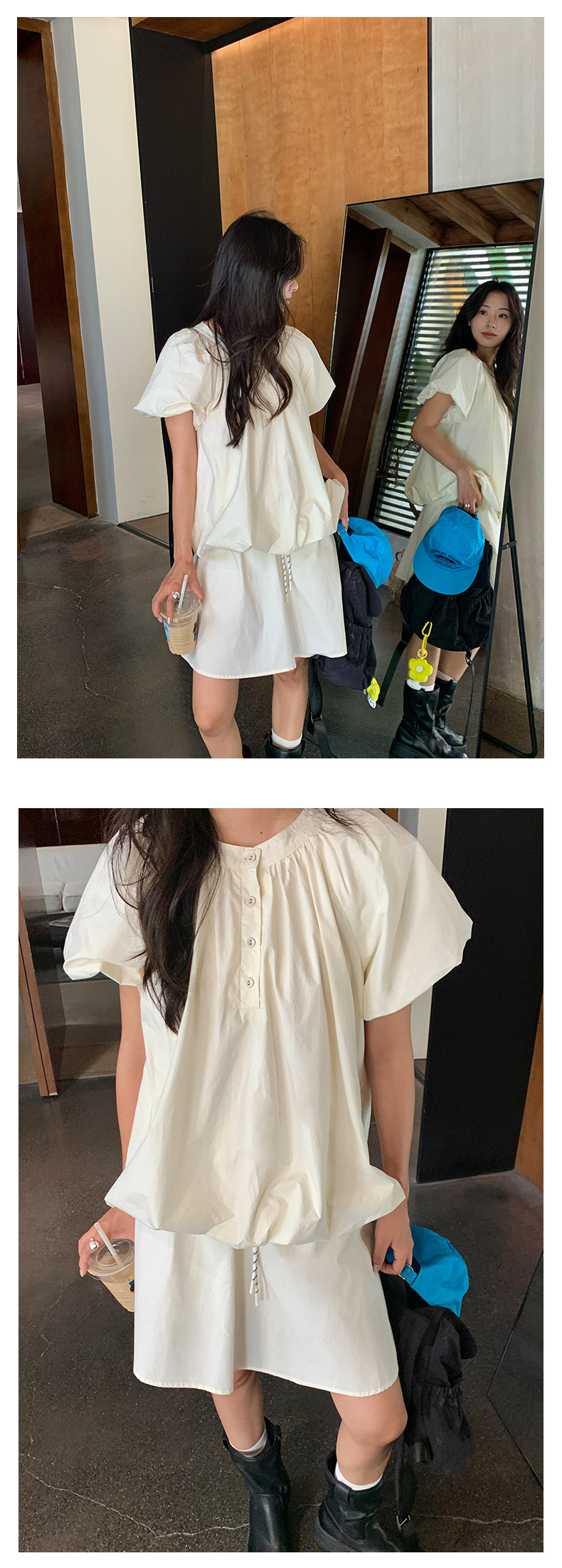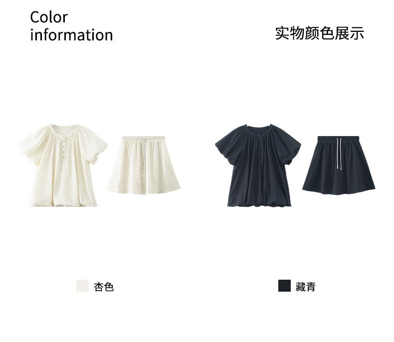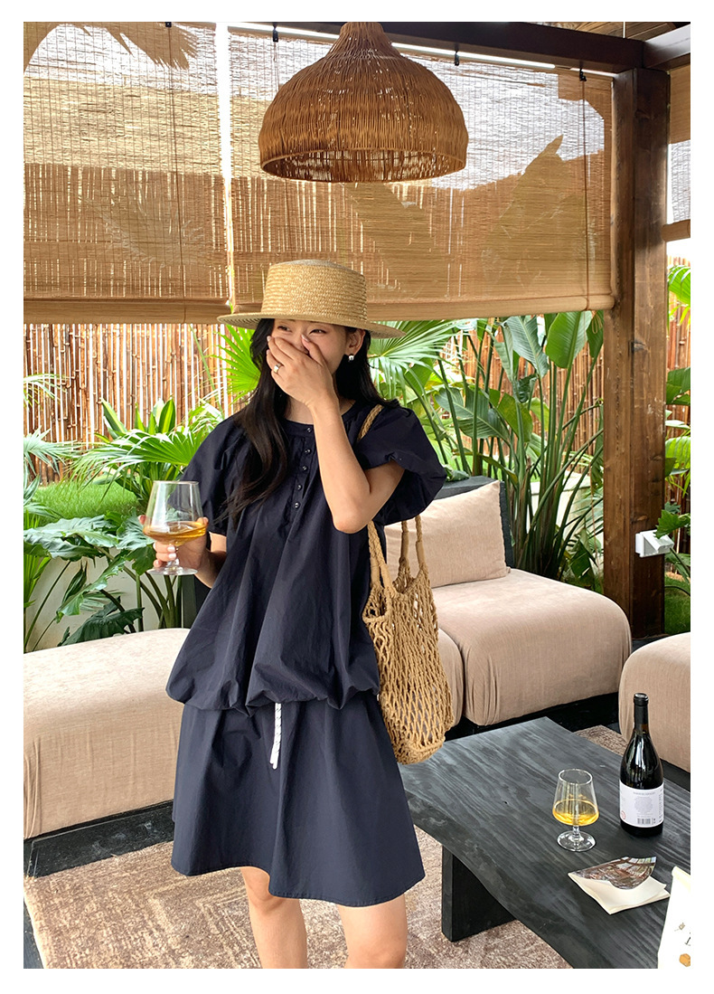 *o-ha-you*【FHZH1KB5020553】韓系泡泡䄂圓領小衫鬆緊腰抽繩A字裙兩件組小個子套裝-2色-如有需要請先諮詢