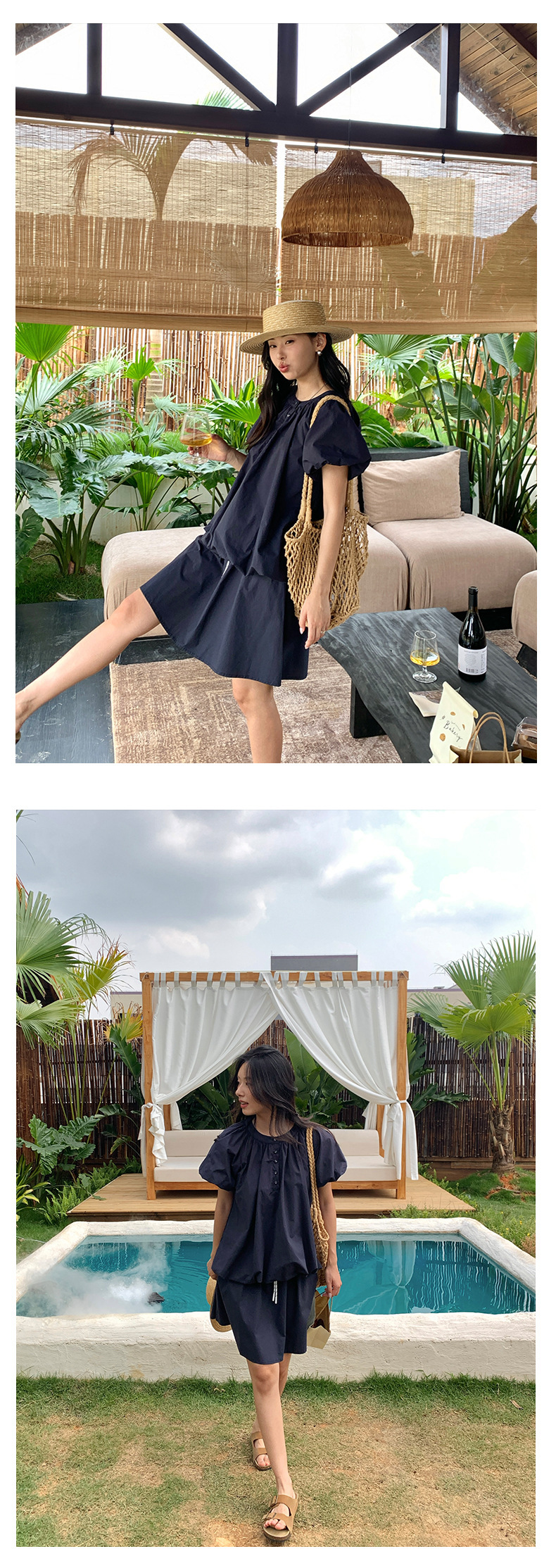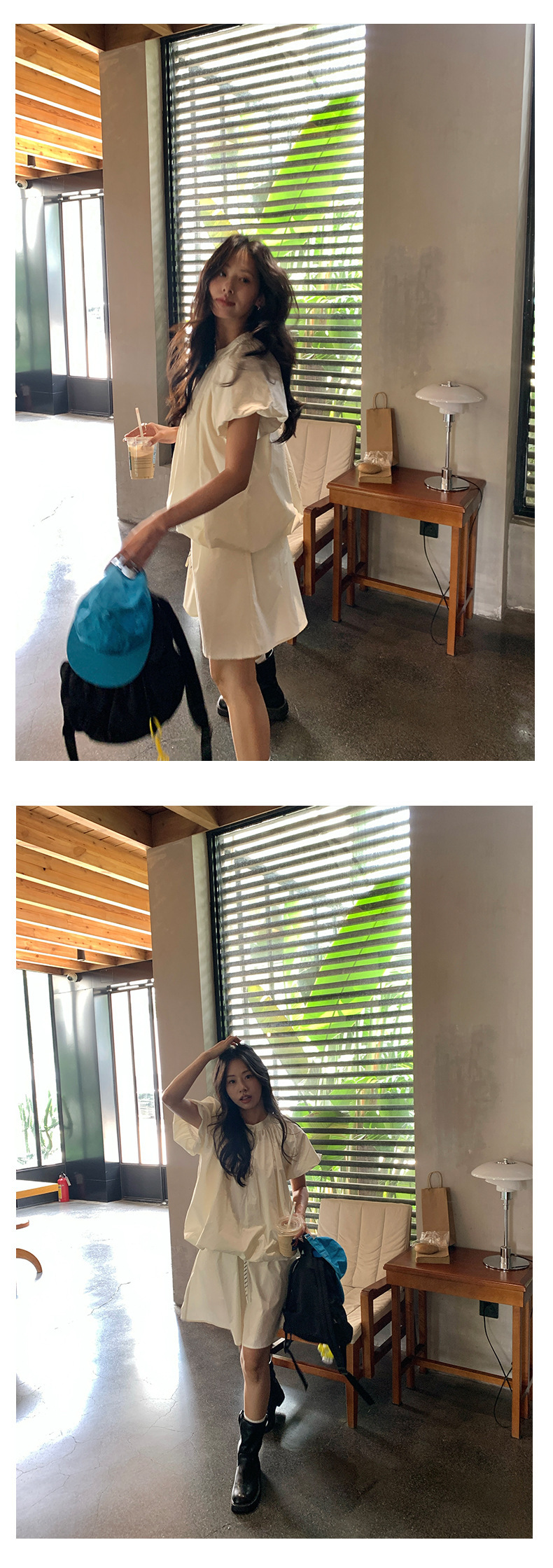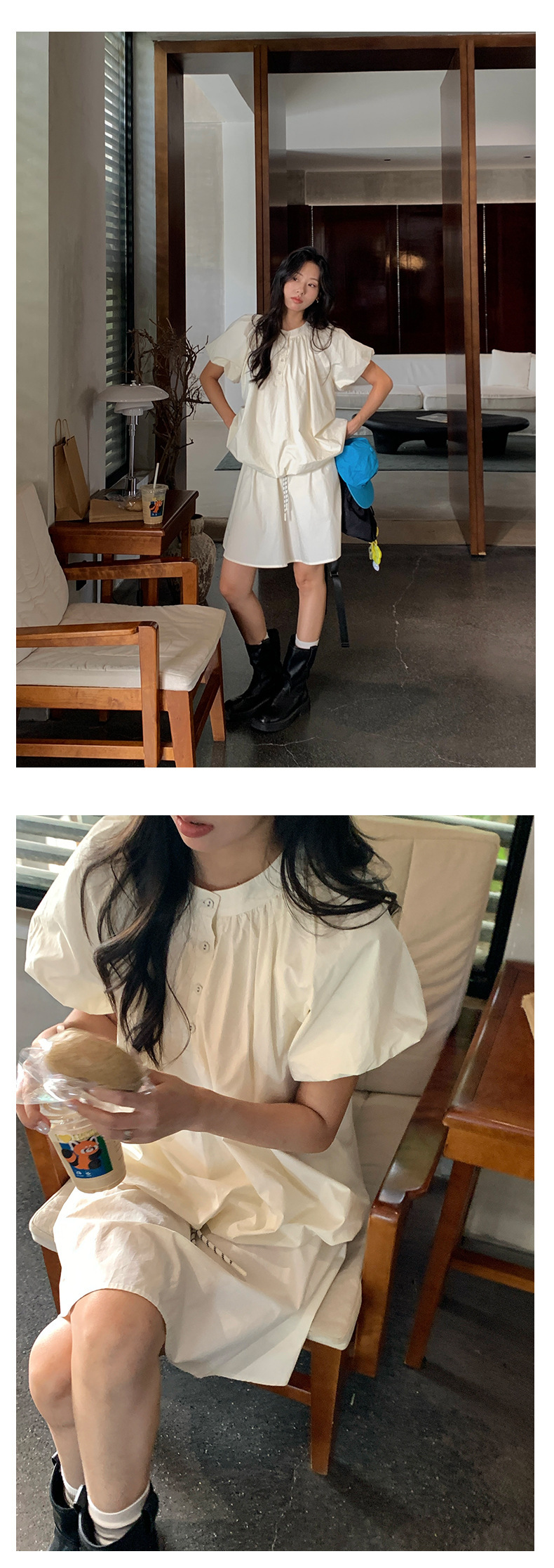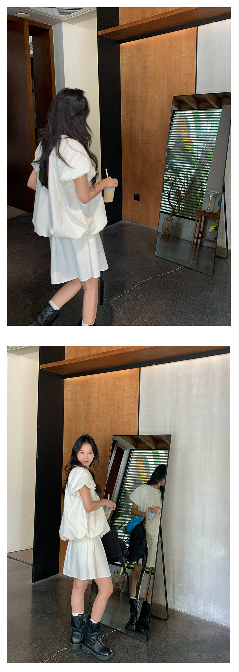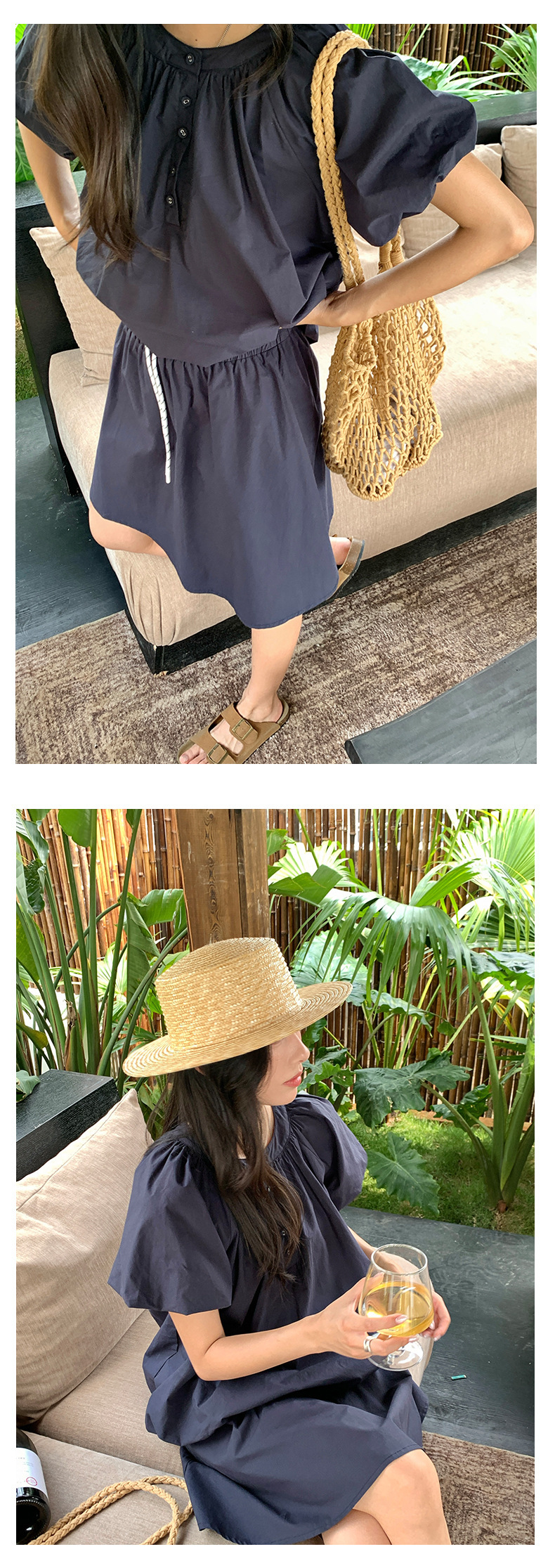 *o-ha-you*【FHZH1KB5020553】韓系泡泡䄂圓領小衫鬆緊腰抽繩A字裙兩件組小個子套裝-2色-如有需要請先諮詢