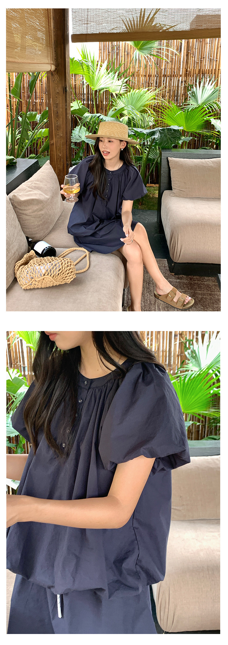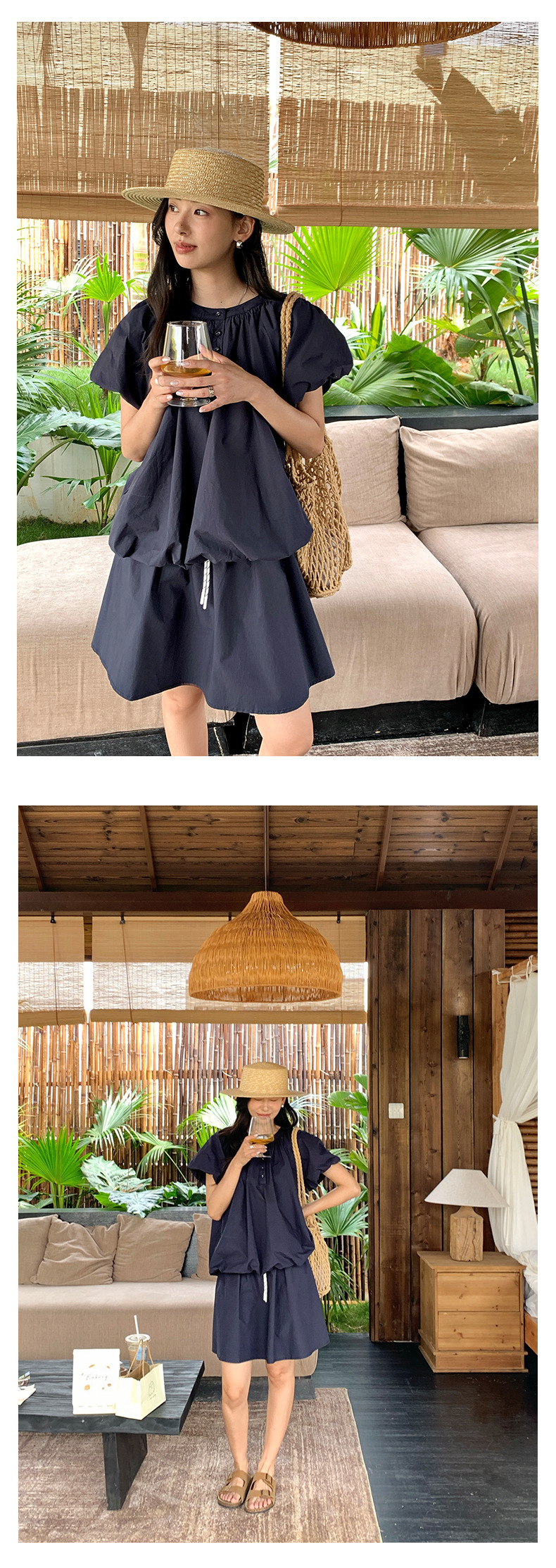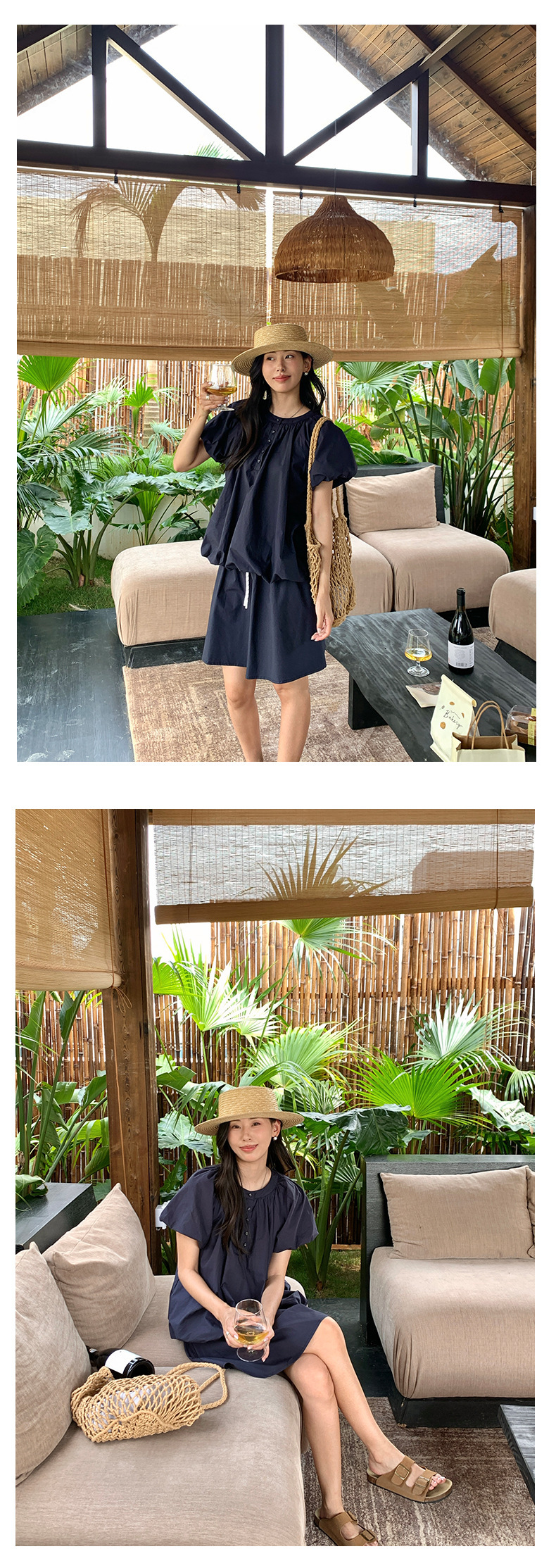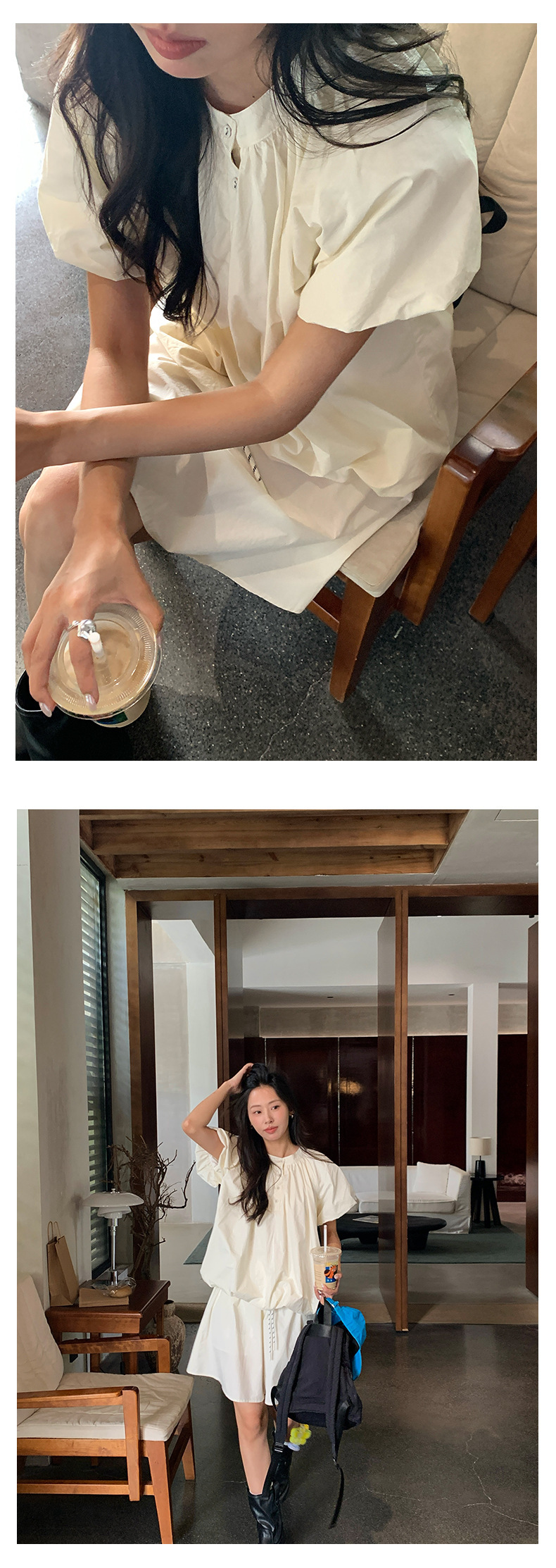 *o-ha-you*【FHZH1KB5020553】韓系泡泡䄂圓領小衫鬆緊腰抽繩A字裙兩件組小個子套裝-2色-如有需要請先諮詢