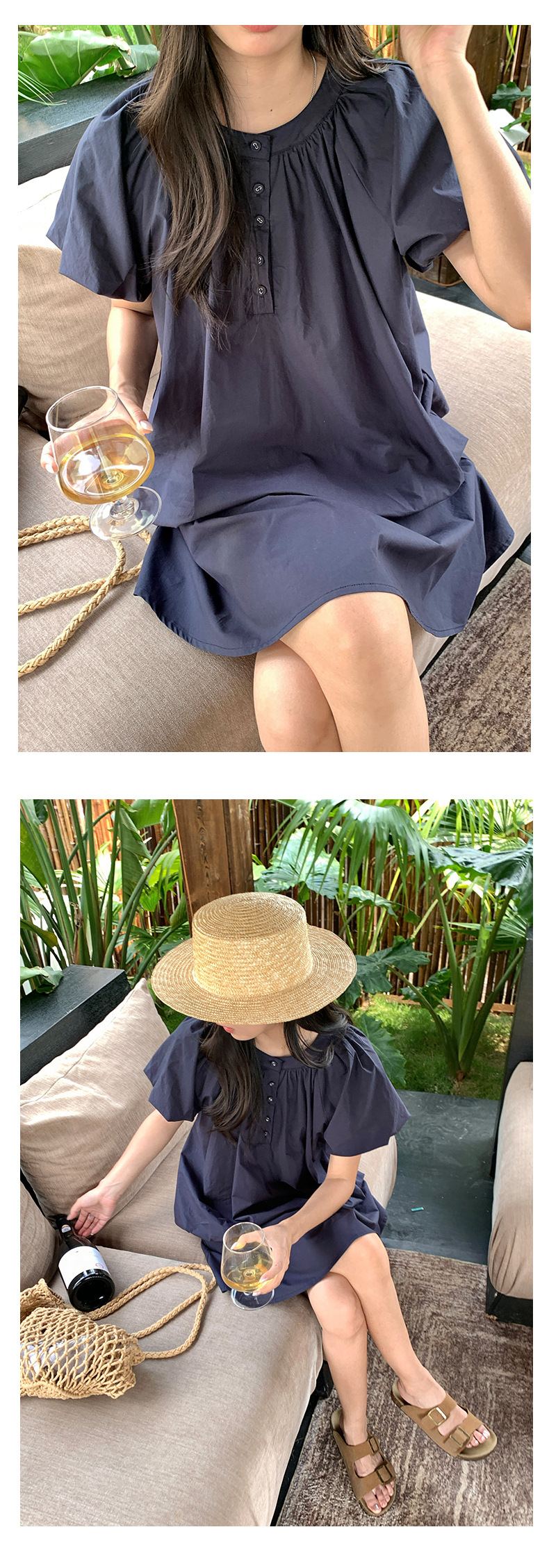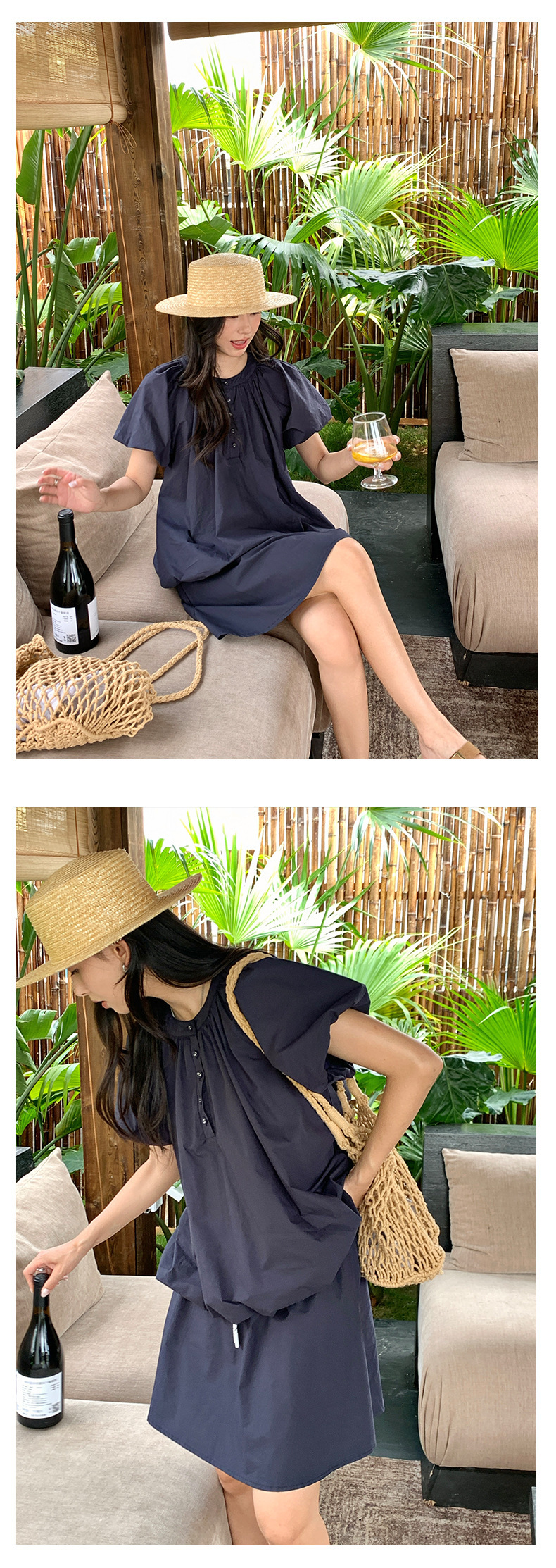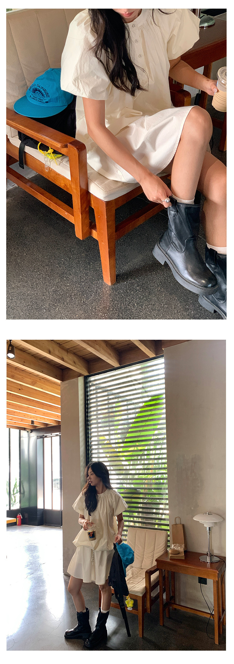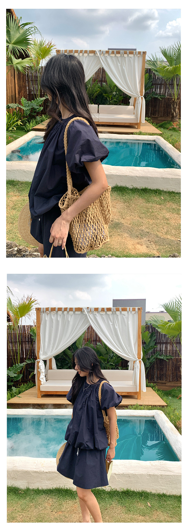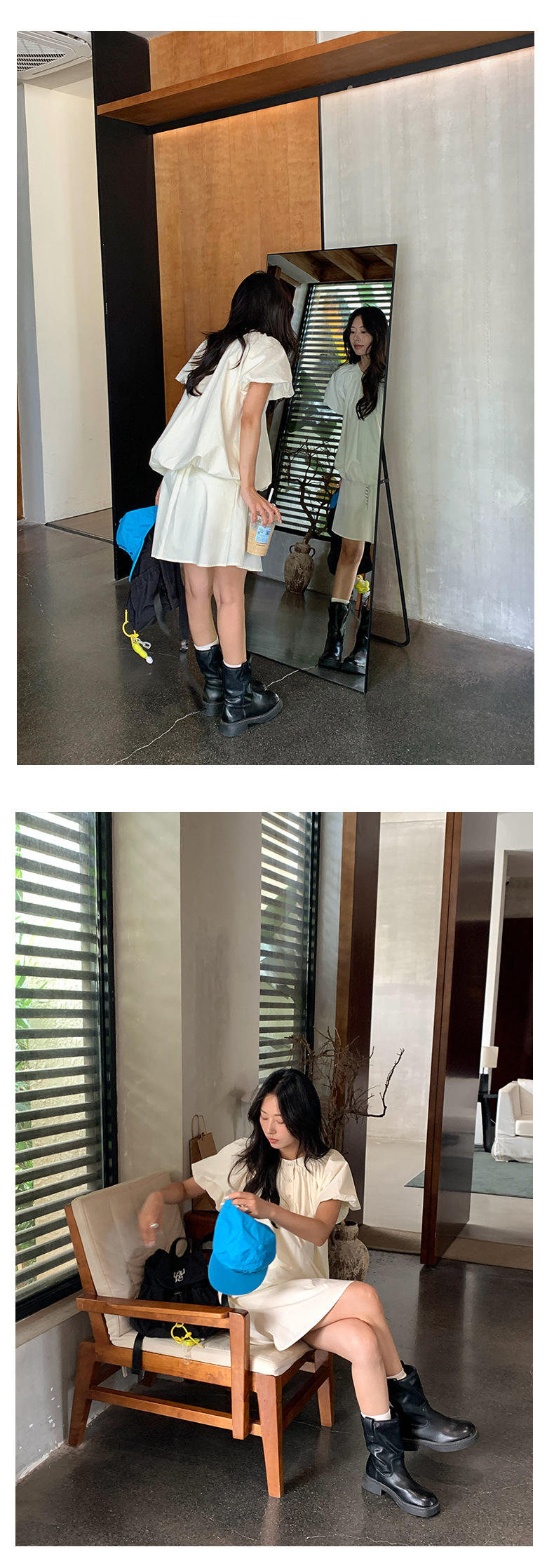 *o-ha-you*【FHZH1KB5020553】韓系泡泡䄂圓領小衫鬆緊腰抽繩A字裙兩件組小個子套裝-2色-如有需要請先諮詢