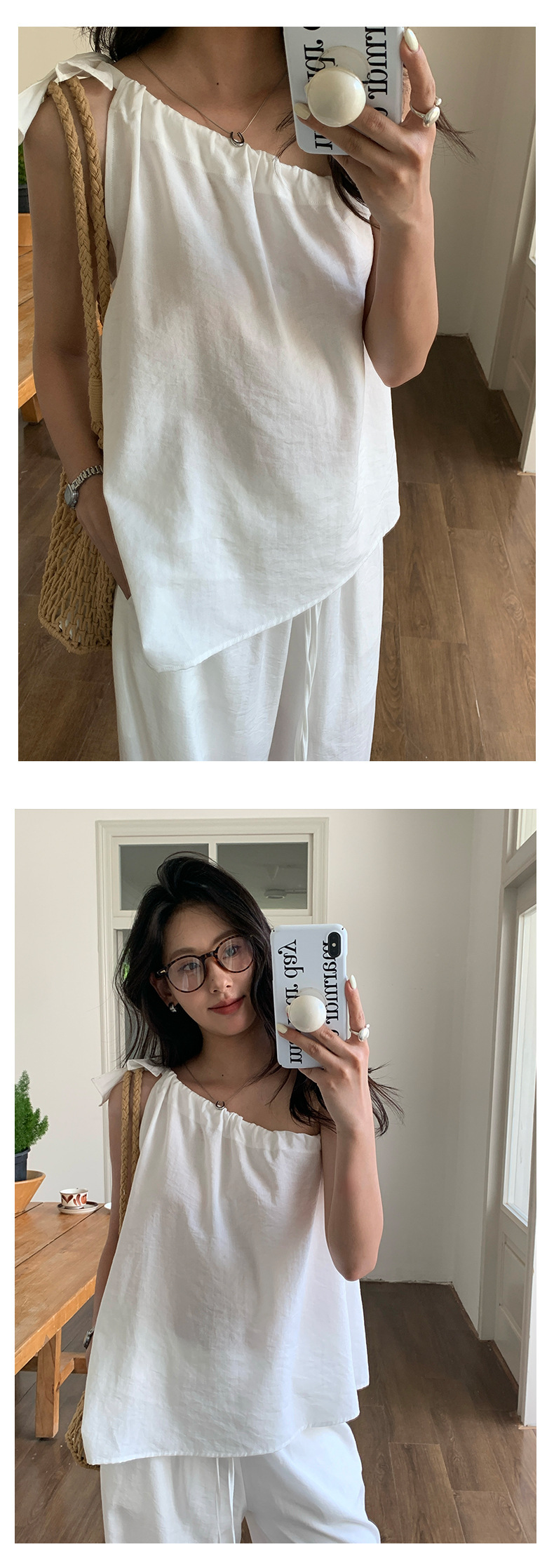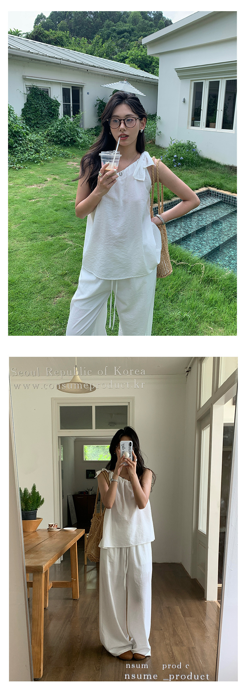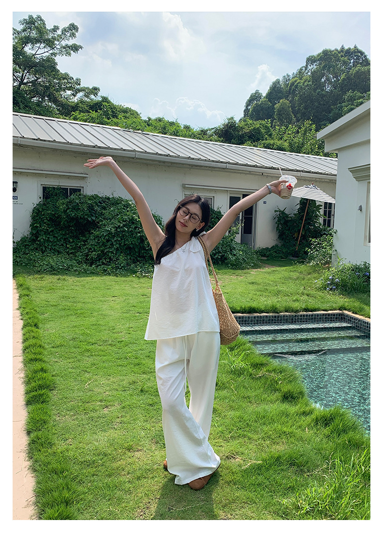 *o-ha-you*【FHZH1KB5020638】韓版絕美小套裝小眾氣質顯瘦無袖上衣闊腿褲兩件式套