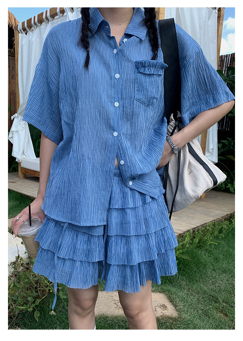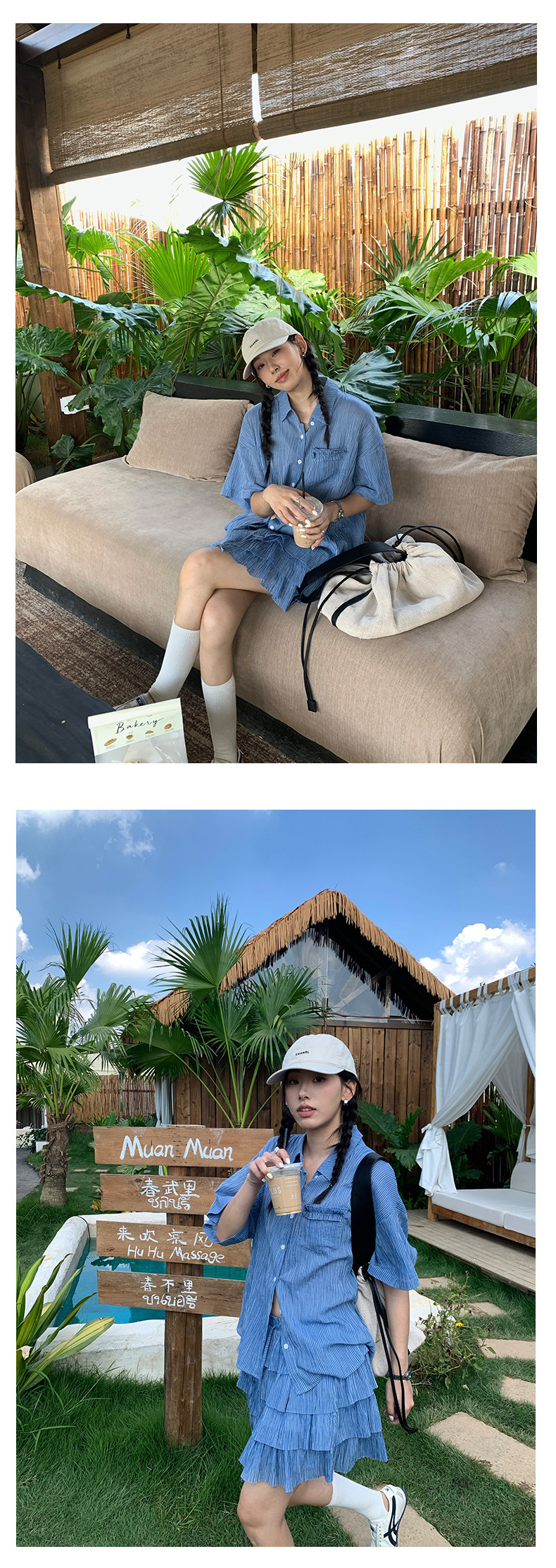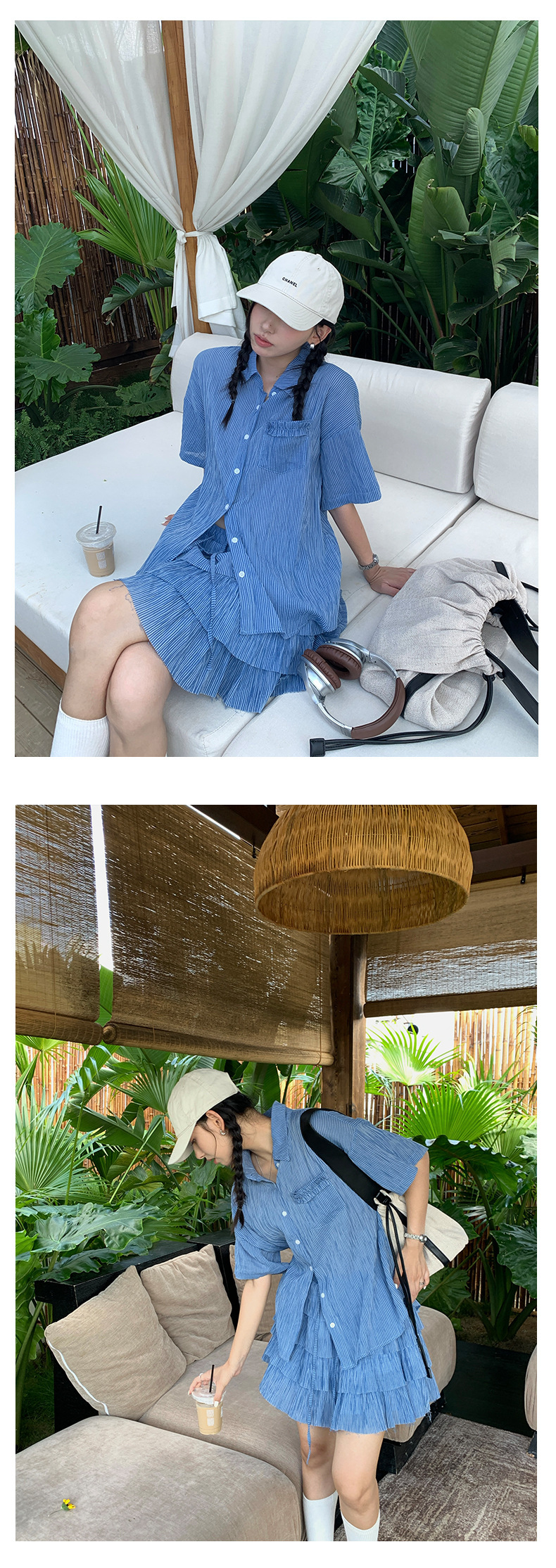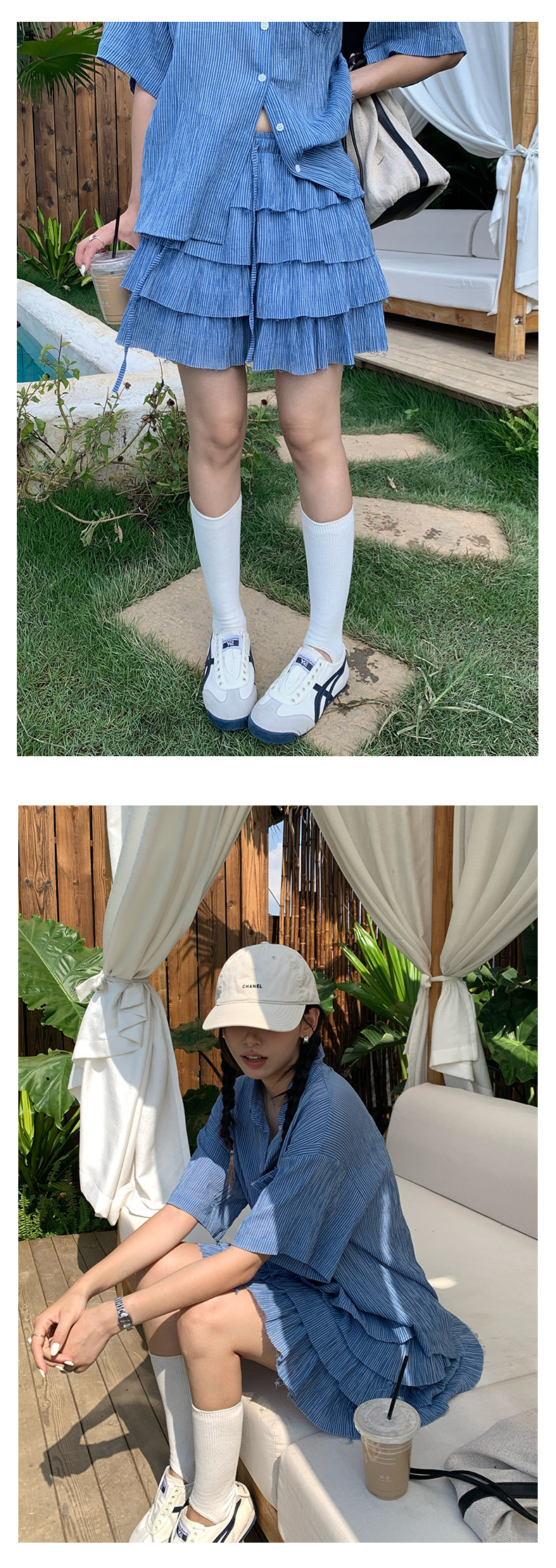 *o-ha-you*【FHZH1KB5020655】韓版夏季新款時尚休閒條紋襯衫蛋糕裙套裝戀夏風穿搭-如有需要請先諮詢