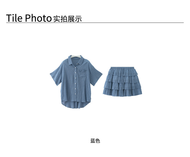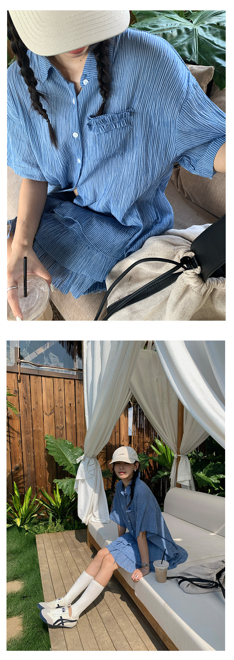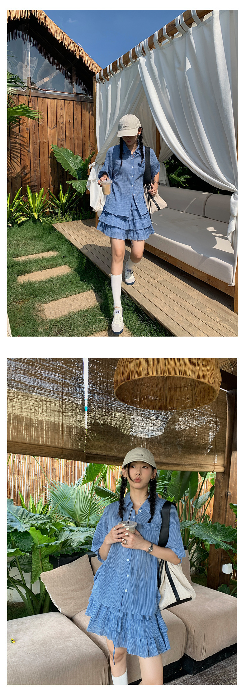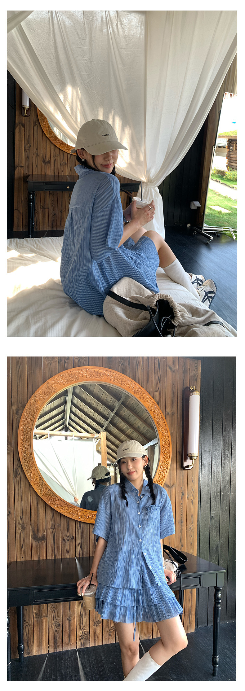 *o-ha-you*【FHZH1KB5020655】韓版夏季新款時尚休閒條紋襯衫蛋糕裙套裝戀夏風穿搭-如有需要請先諮詢