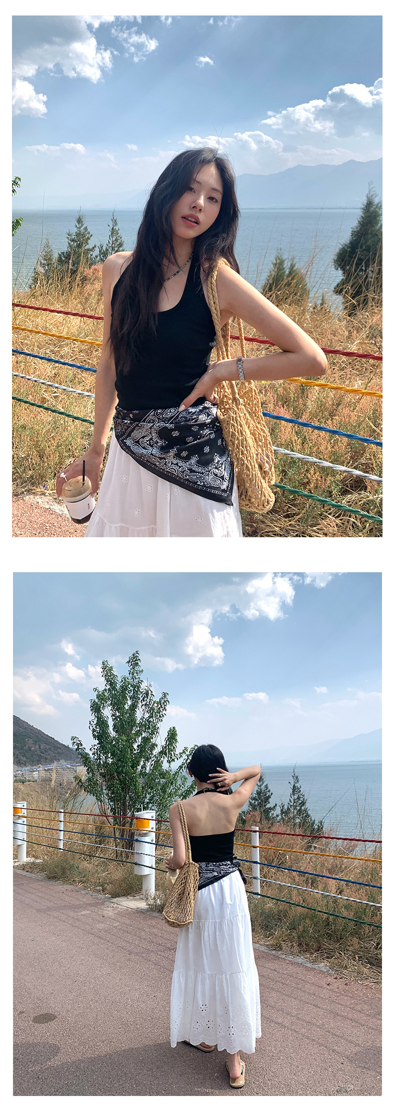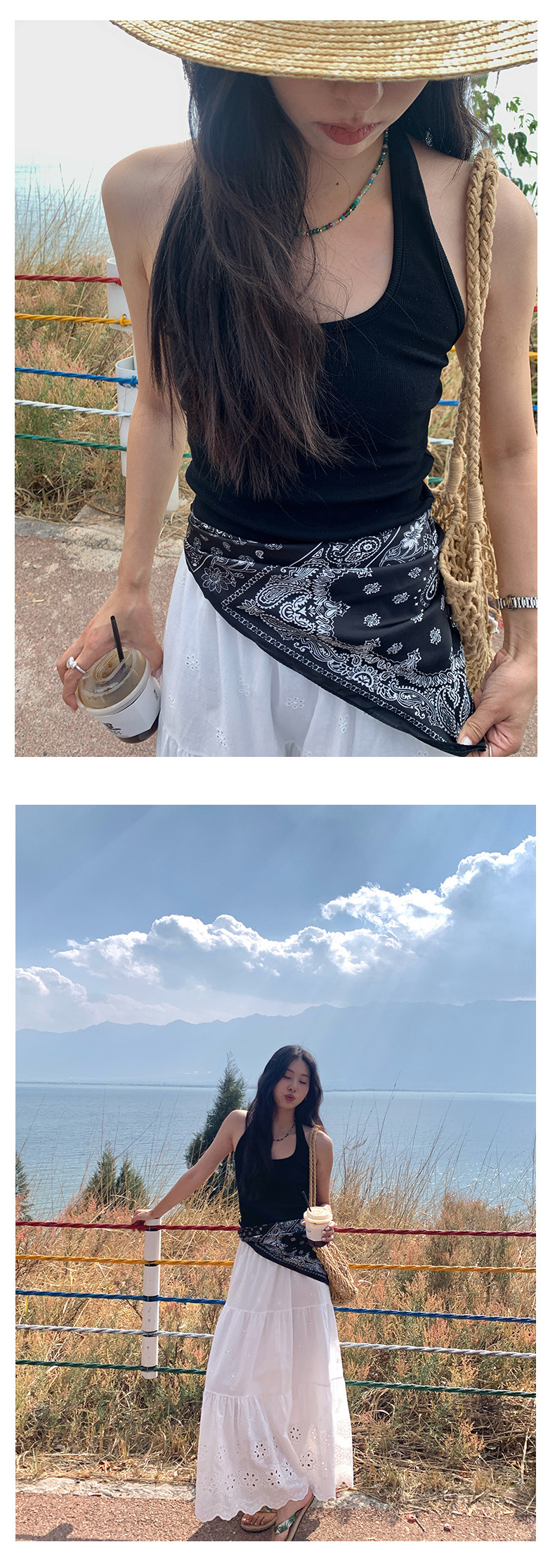 *o-ha-you*【FHZH1YZ5020469】腰果花圖案印花雪紡時尚裝飾方巾2025夏潮流百搭飾品