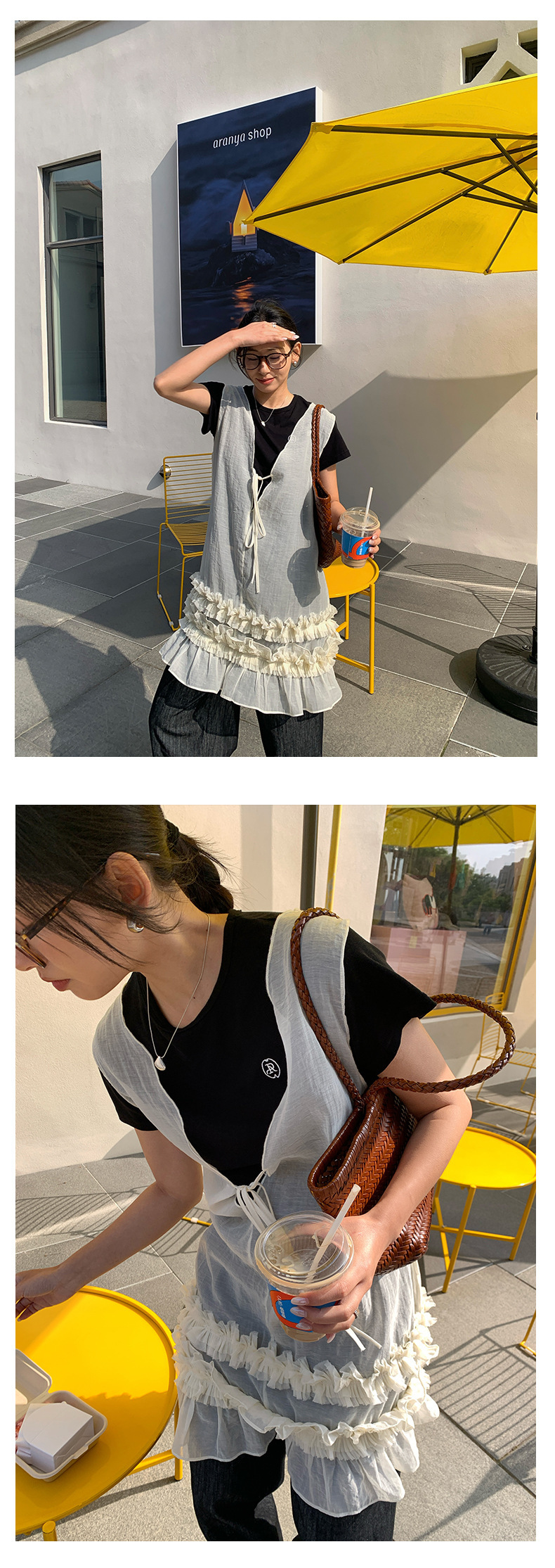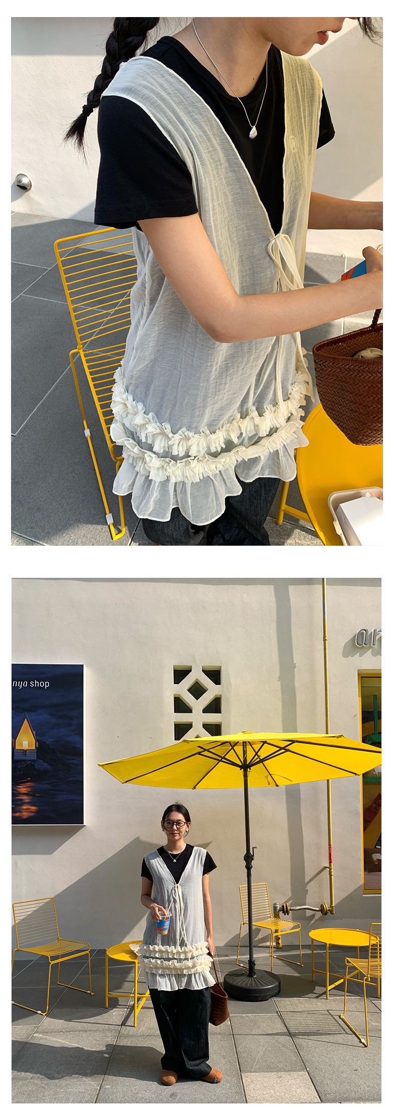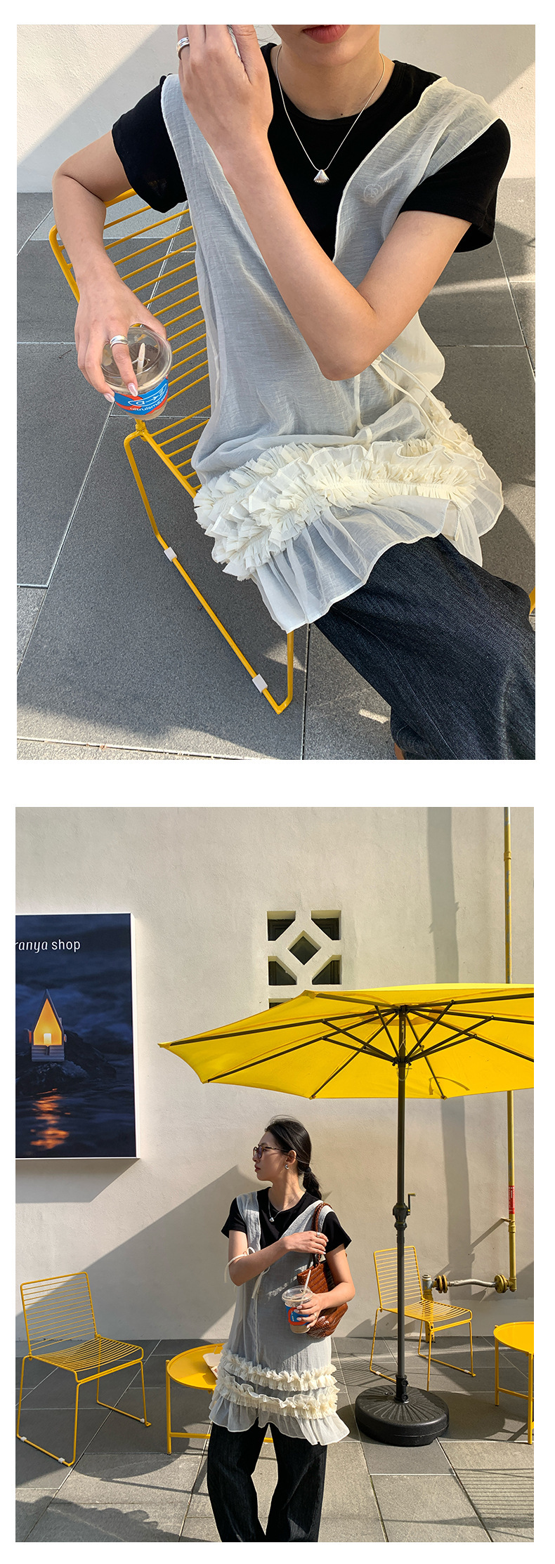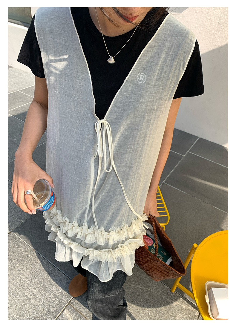 *o-ha-you*【FHZH2CH5020588】韓系夏季設計感微透網紗連衣裙無袖褶皺花邊疊穿背心裙洋裝