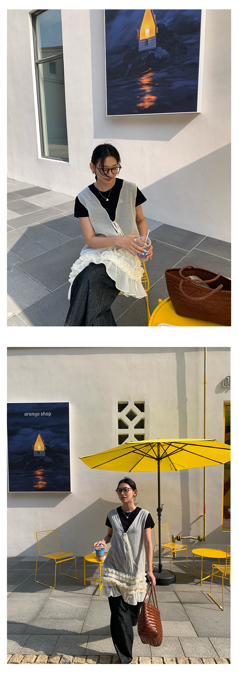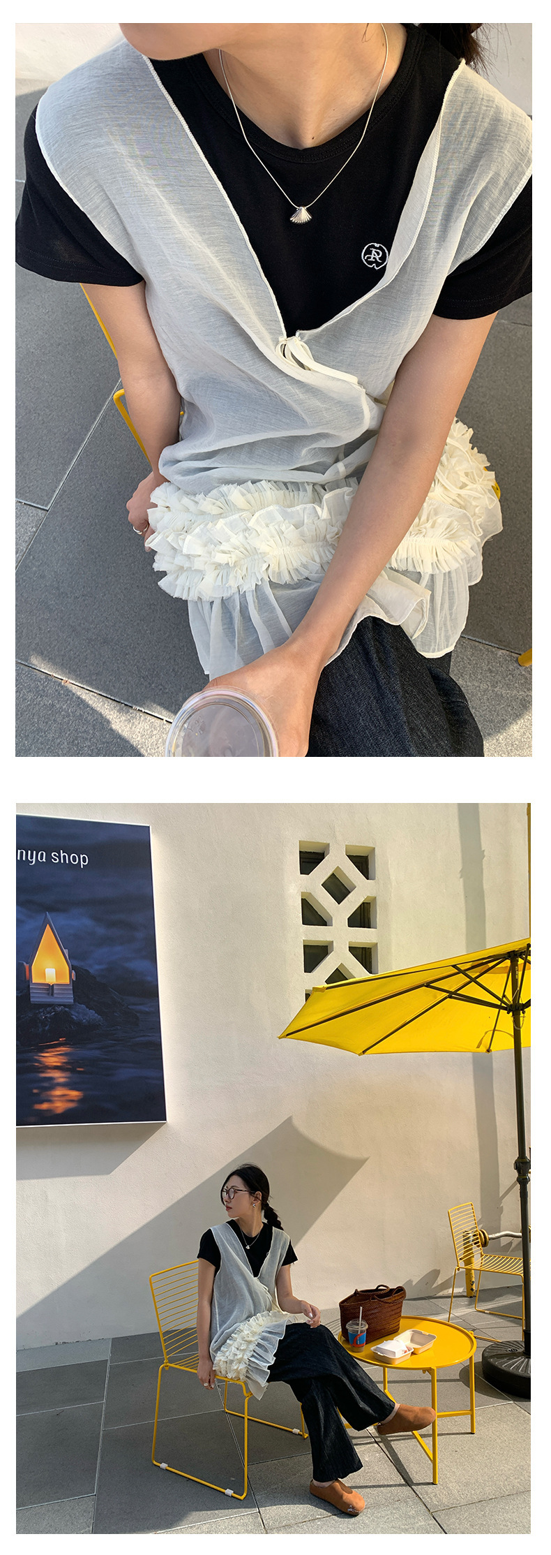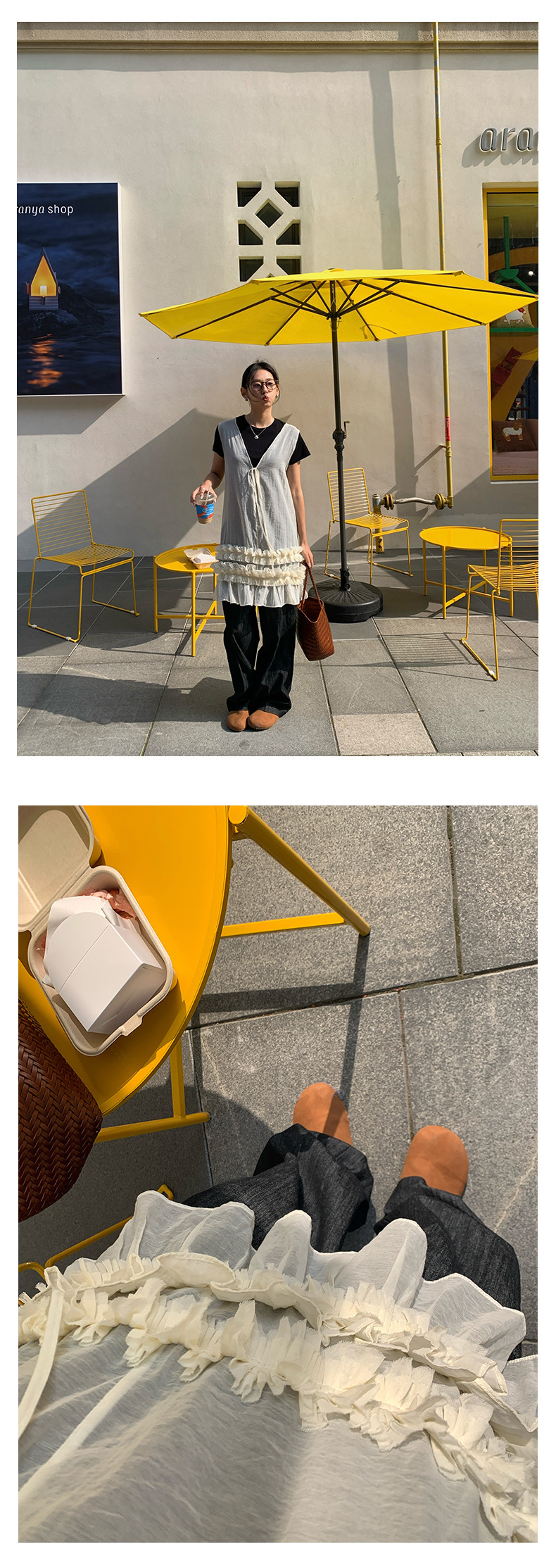 *o-ha-you*【FHZH2CH5020588】韓系夏季設計感微透網紗連衣裙無袖褶皺花邊疊穿背心裙洋裝