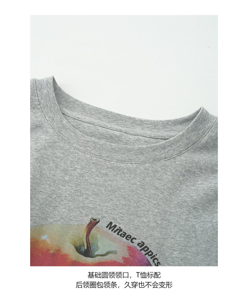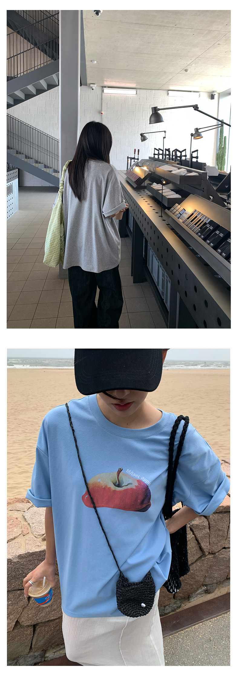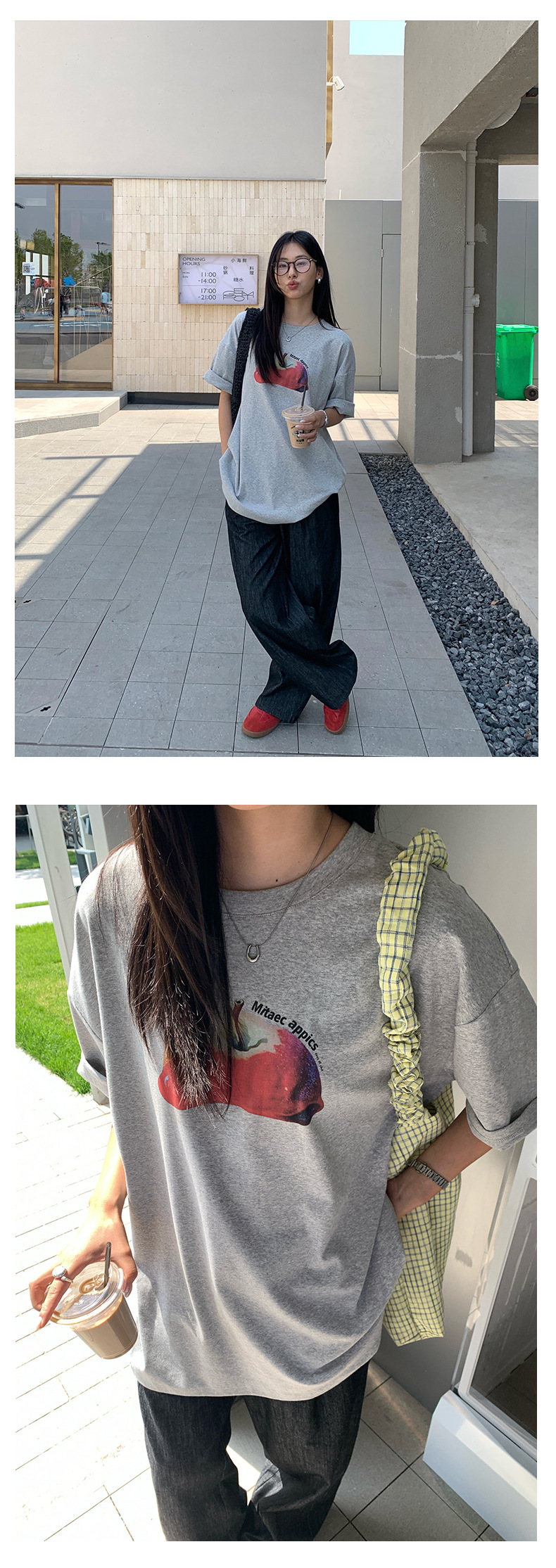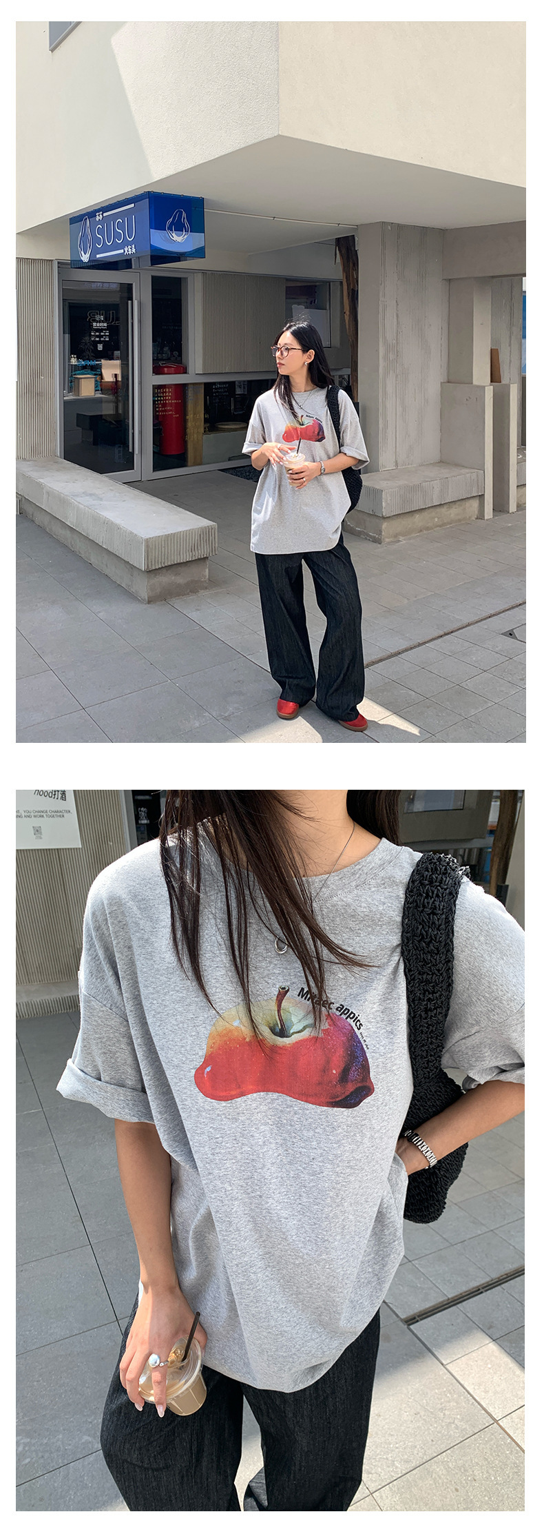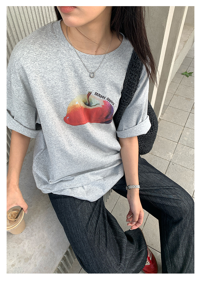 *o-ha-you*【FHZH2DA5020527】韓系蘋果印花大版短袖寬鬆T恤夏新款圓領休閒上衣-2色-如有需要請先諮詢