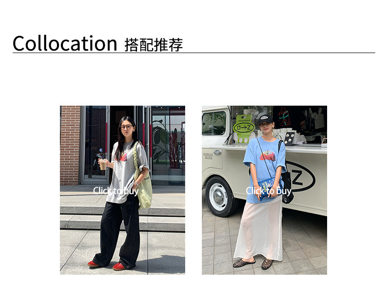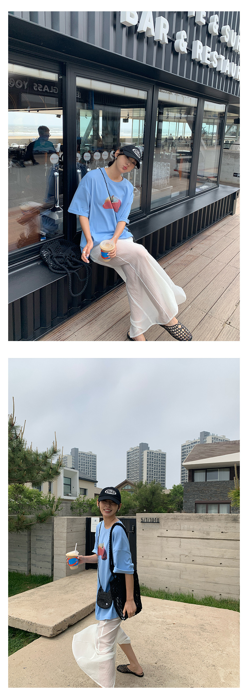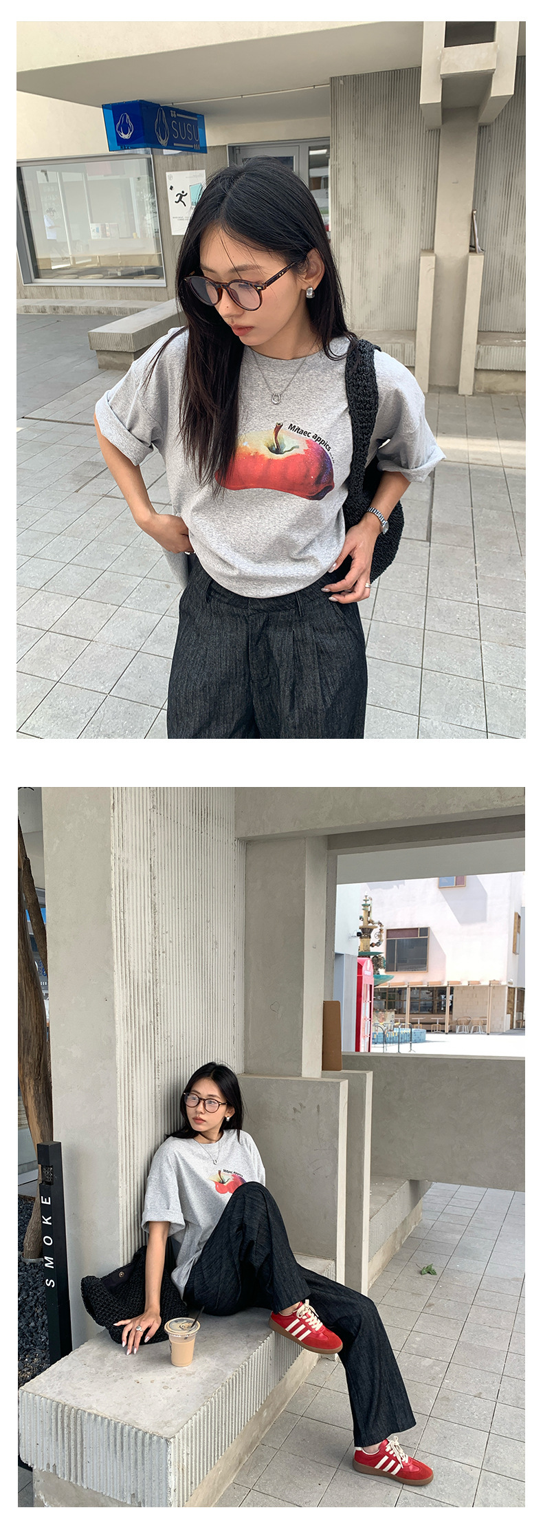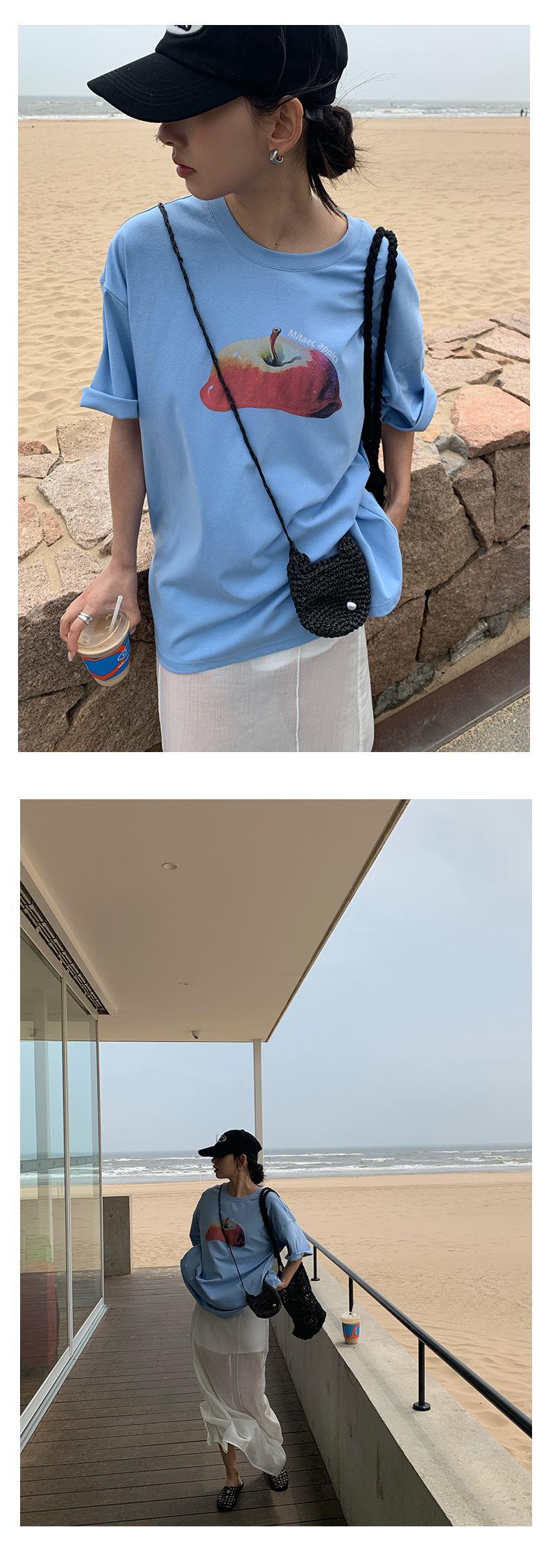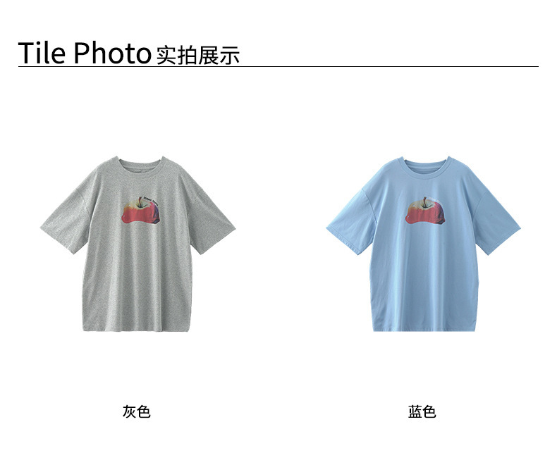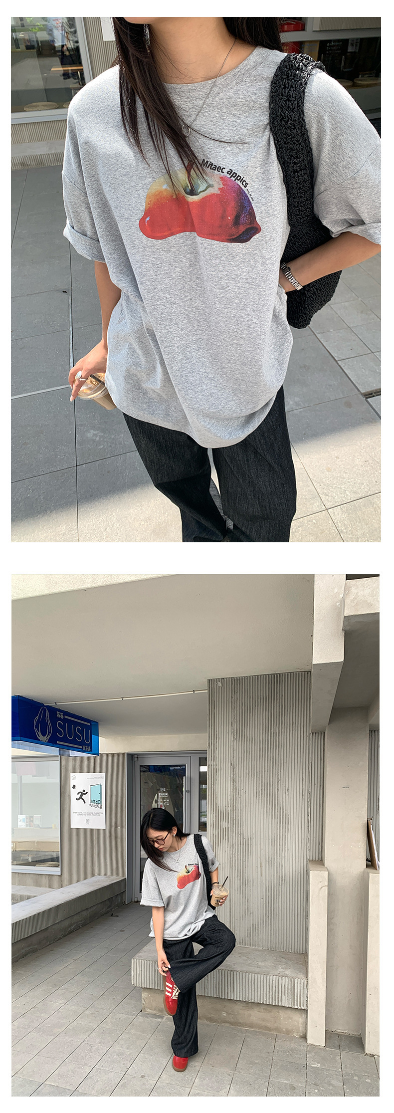 *o-ha-you*【FHZH2DA5020527】韓系蘋果印花大版短袖寬鬆T恤夏新款圓領休閒上衣-2色-如有需要請先諮詢