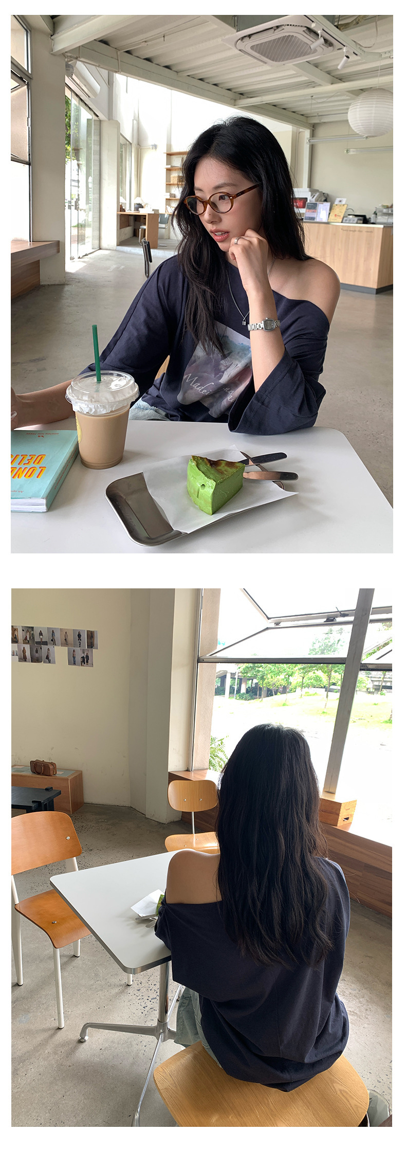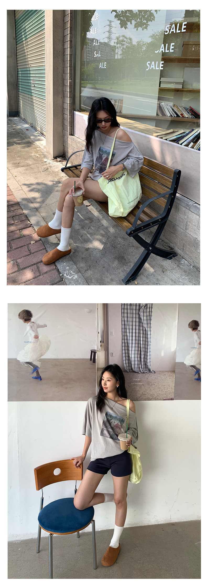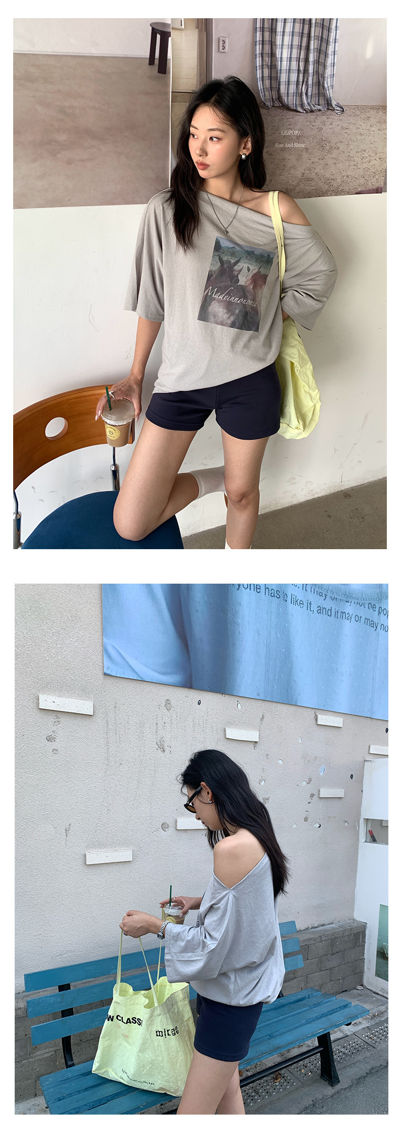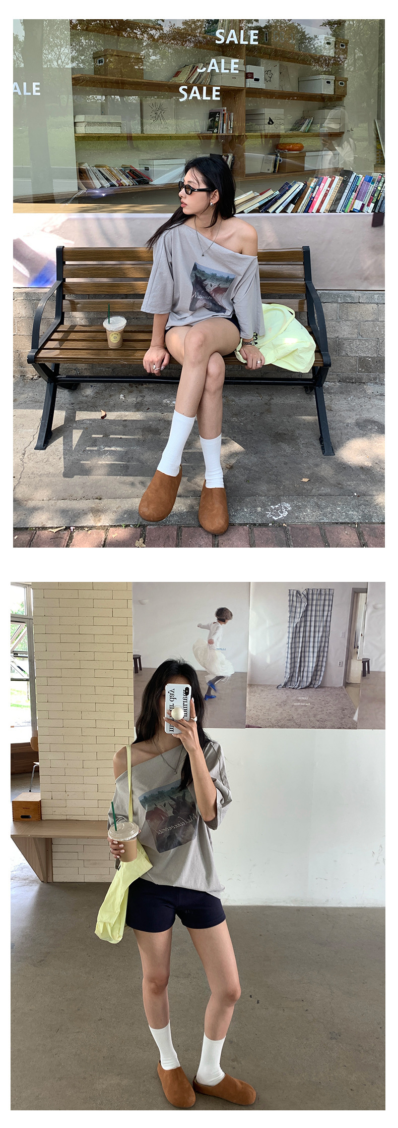 *o-ha-you*【FHZH2DA5020587】韓版夏季新款復古做舊風景印花百搭露肩斜肩短袖T恤-2色-如有需要請先諮詢