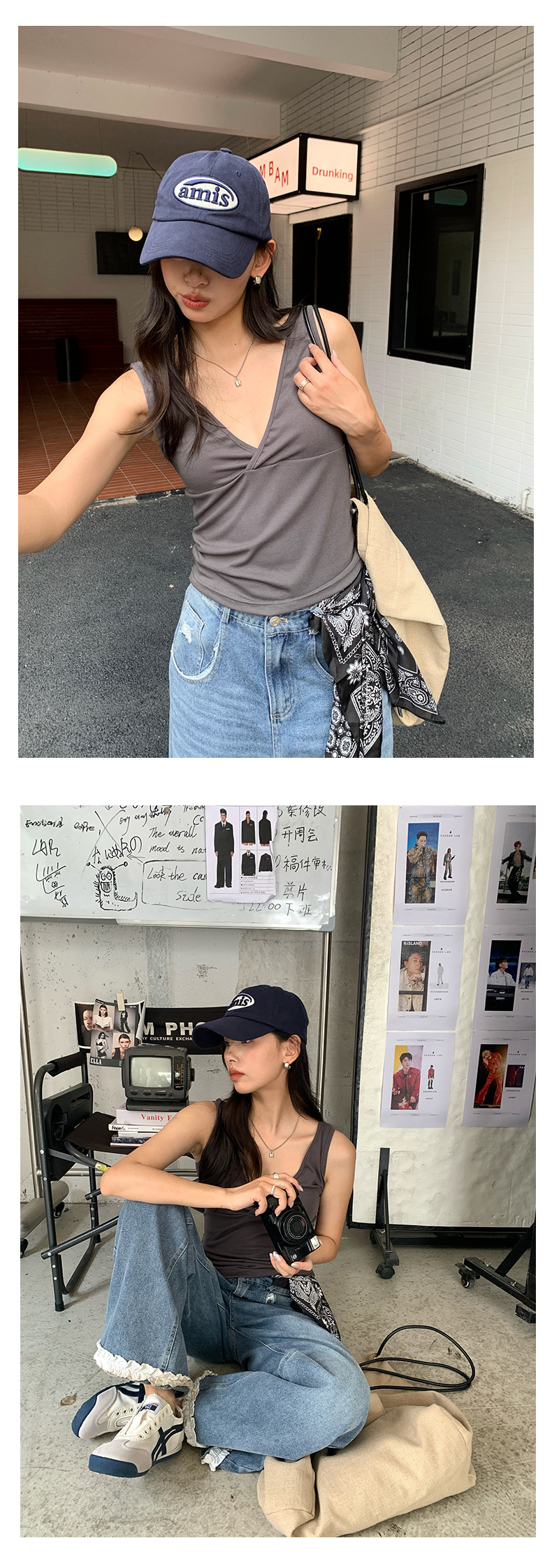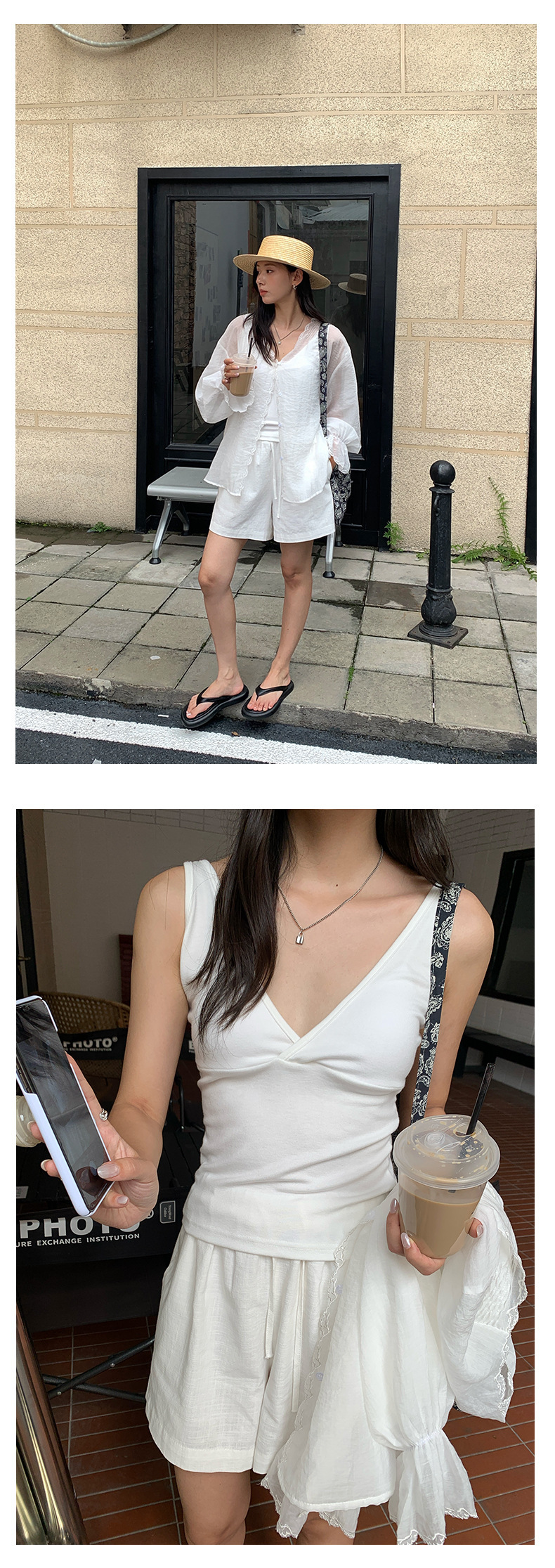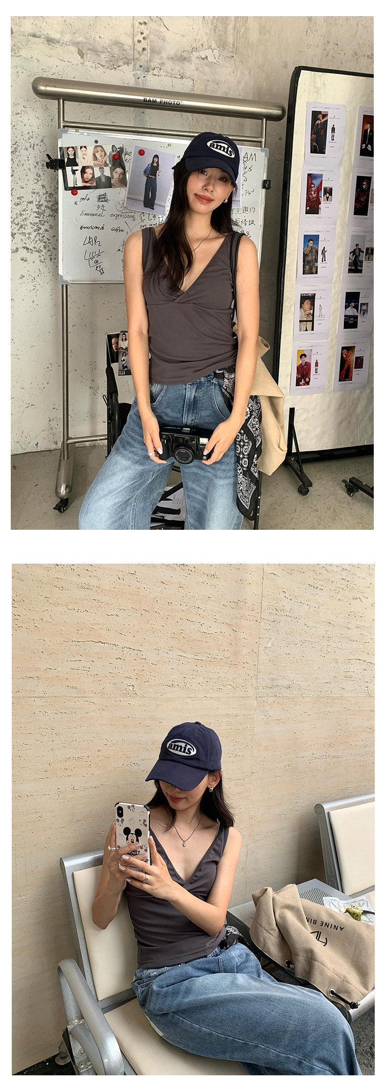 *o-ha-you*【FHZH2DD5020546】韓系夏深V領針織吊帶背心外穿性感無袖美背打底上衣-2色-如有需要請先諮詢