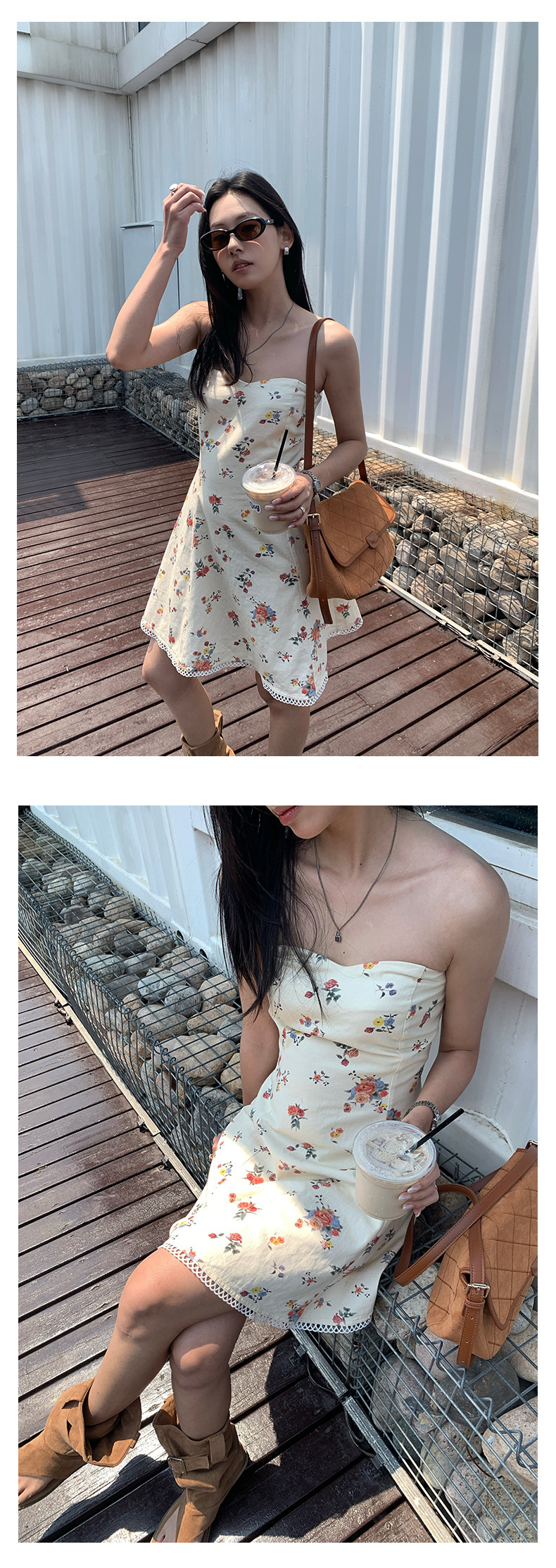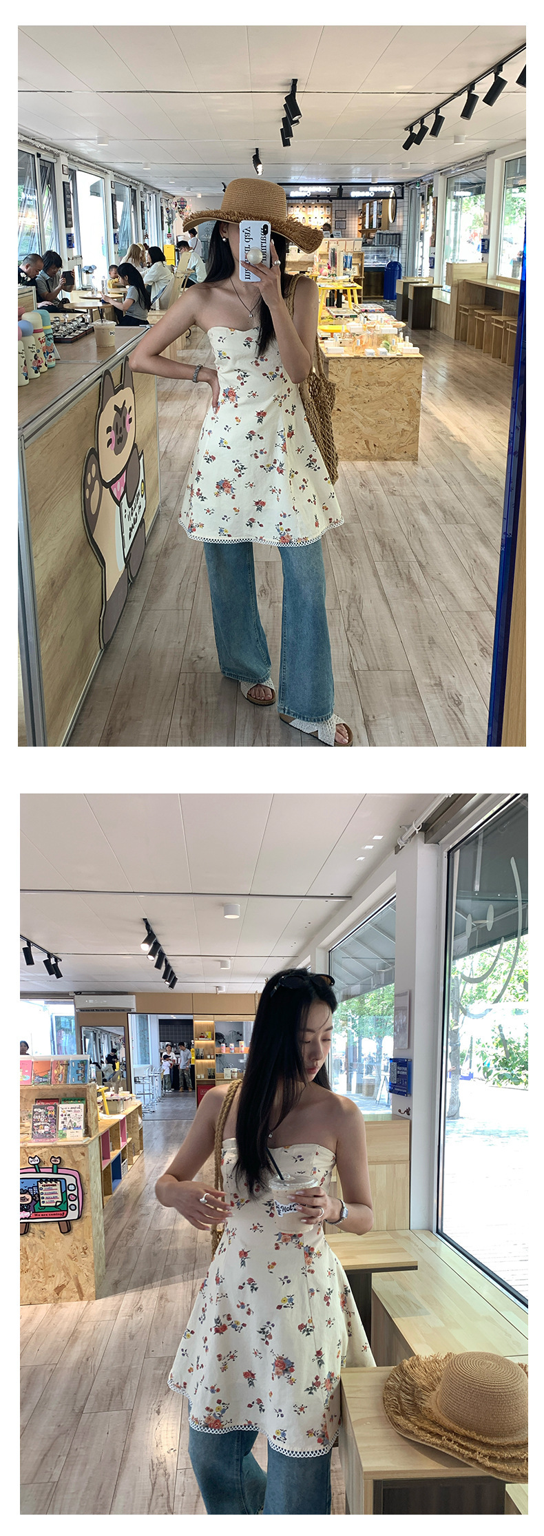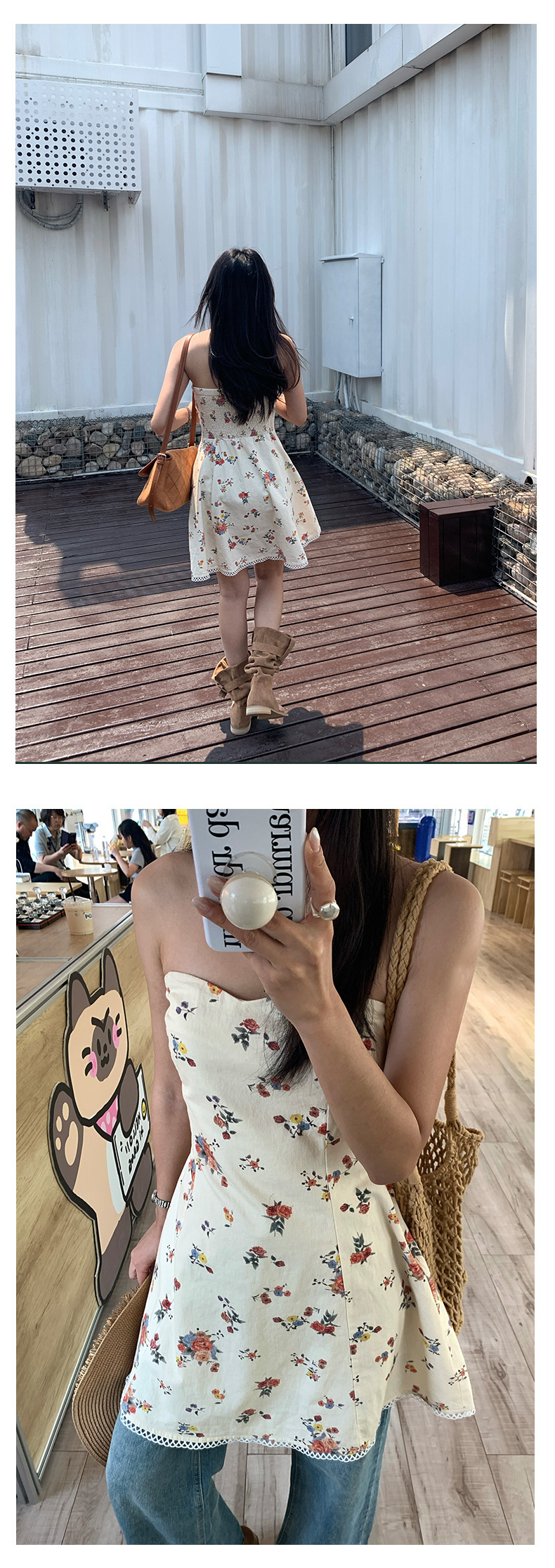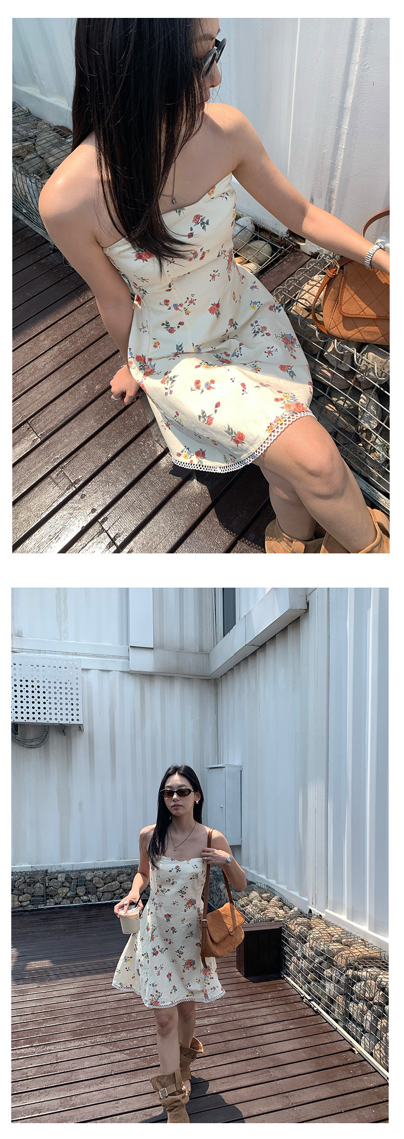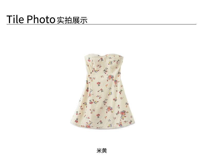 *o-ha-you*【FHZH2FA5020523】韓系夏季抹胸連衣裙玫瑰印花減齡少女感碎花收腰短裙洋裝