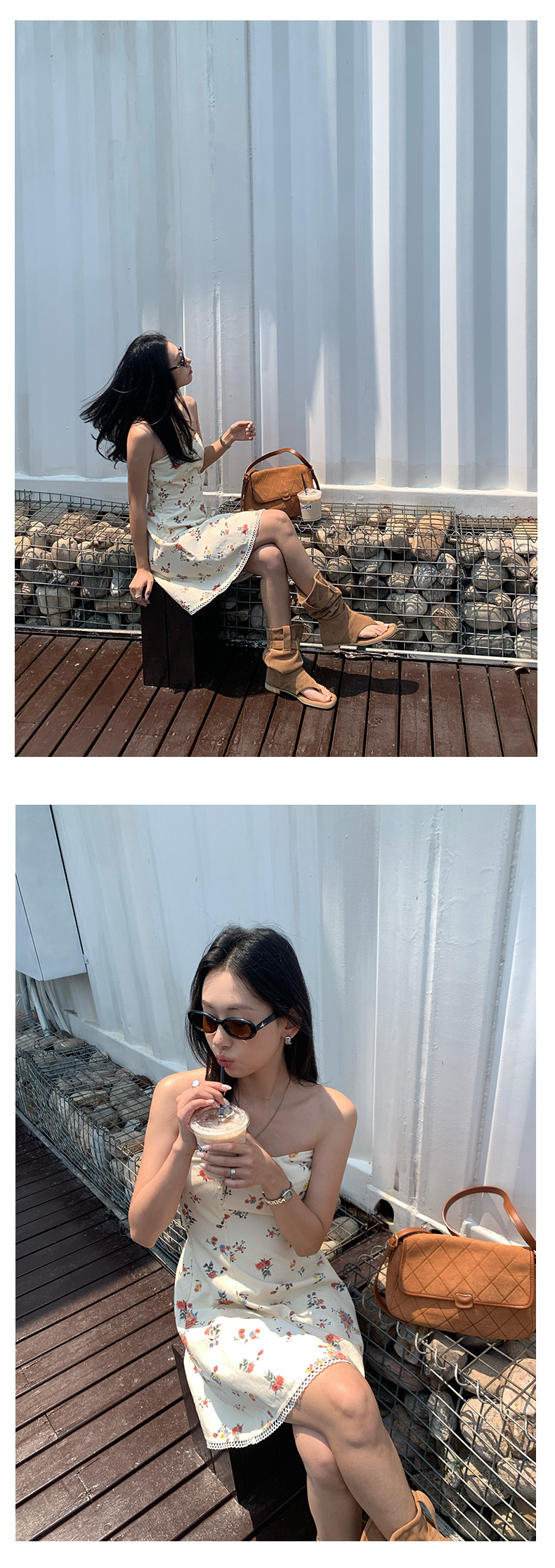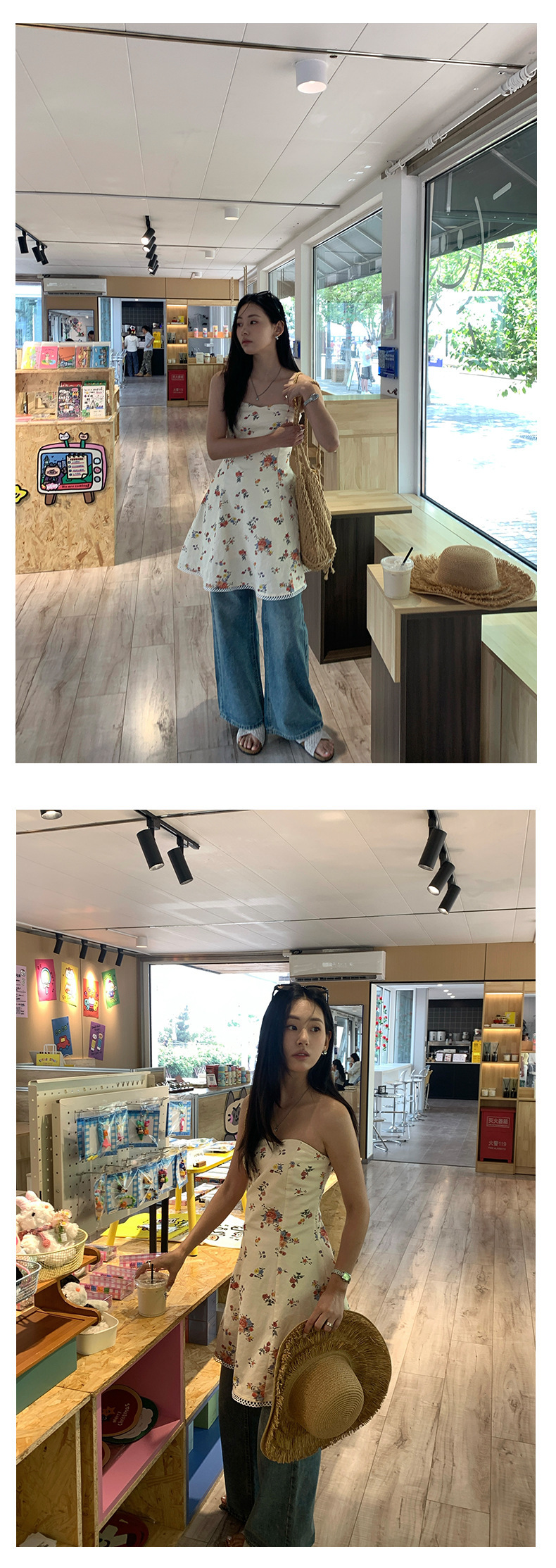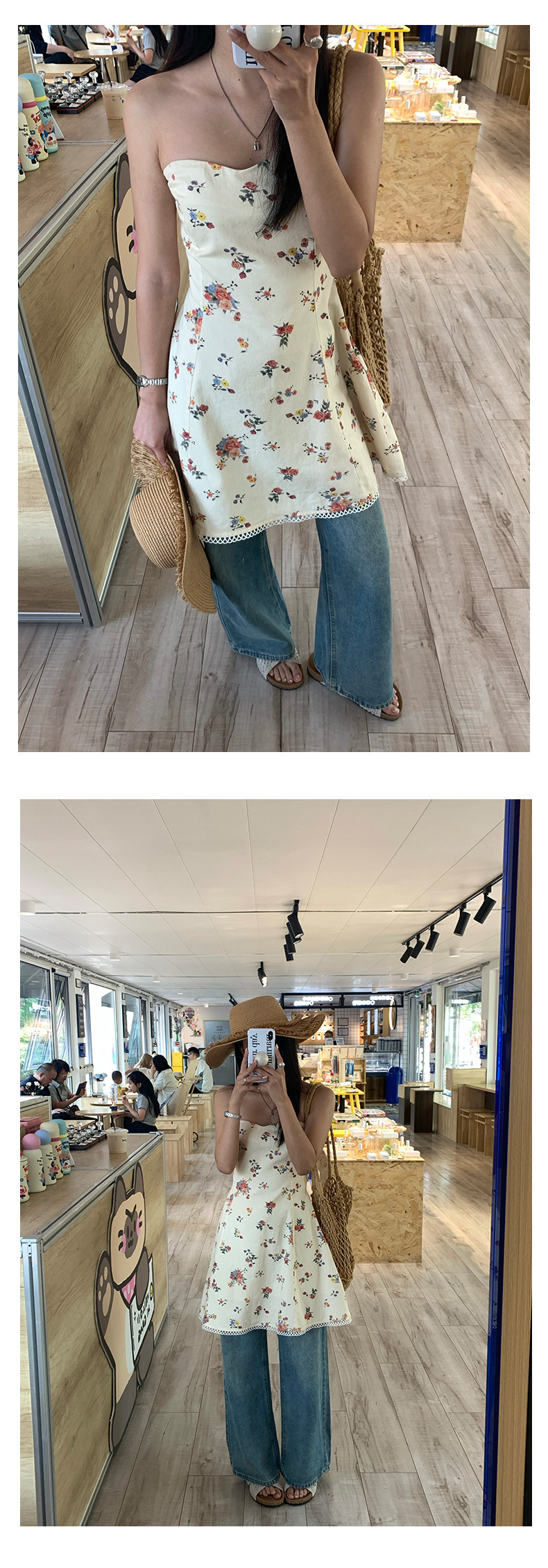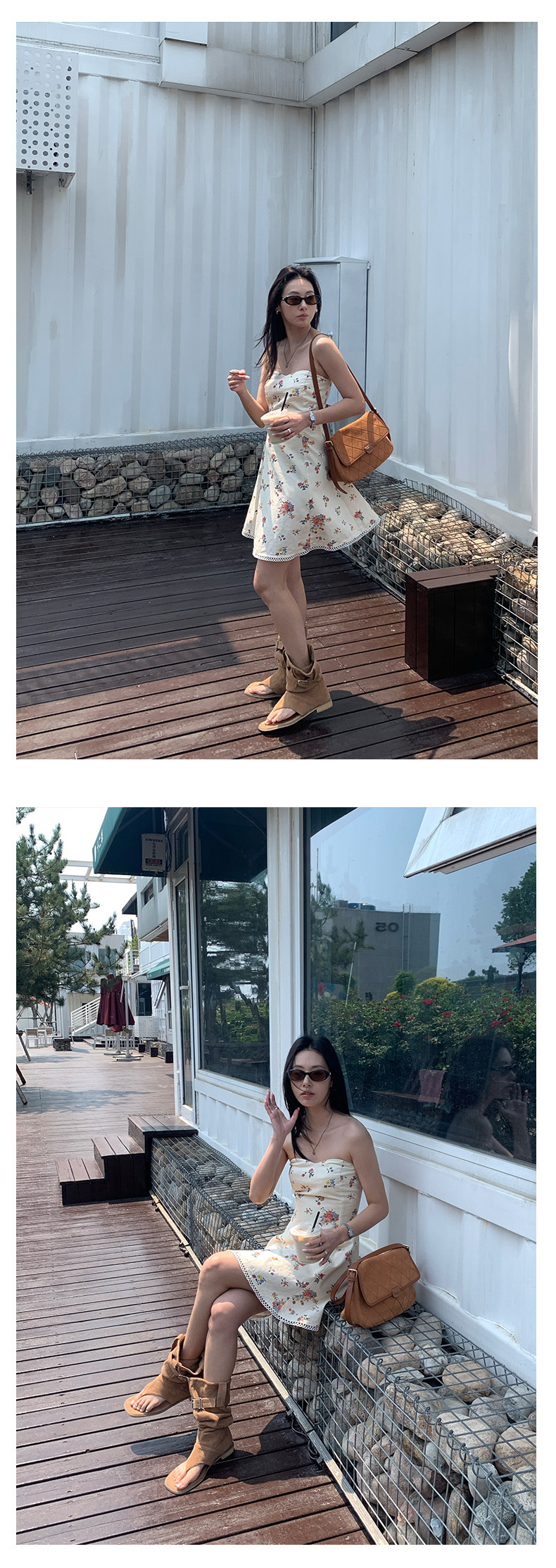 *o-ha-you*【FHZH2FA5020523】韓系夏季抹胸連衣裙玫瑰印花減齡少女感碎花收腰短裙洋裝