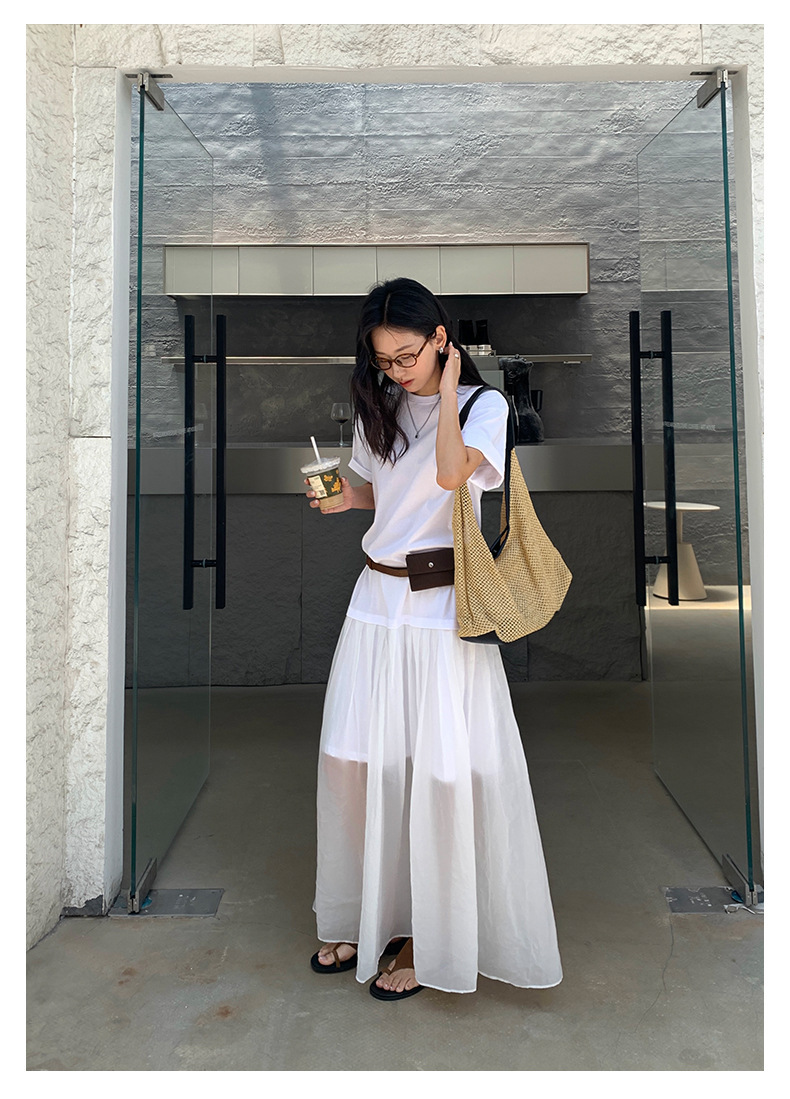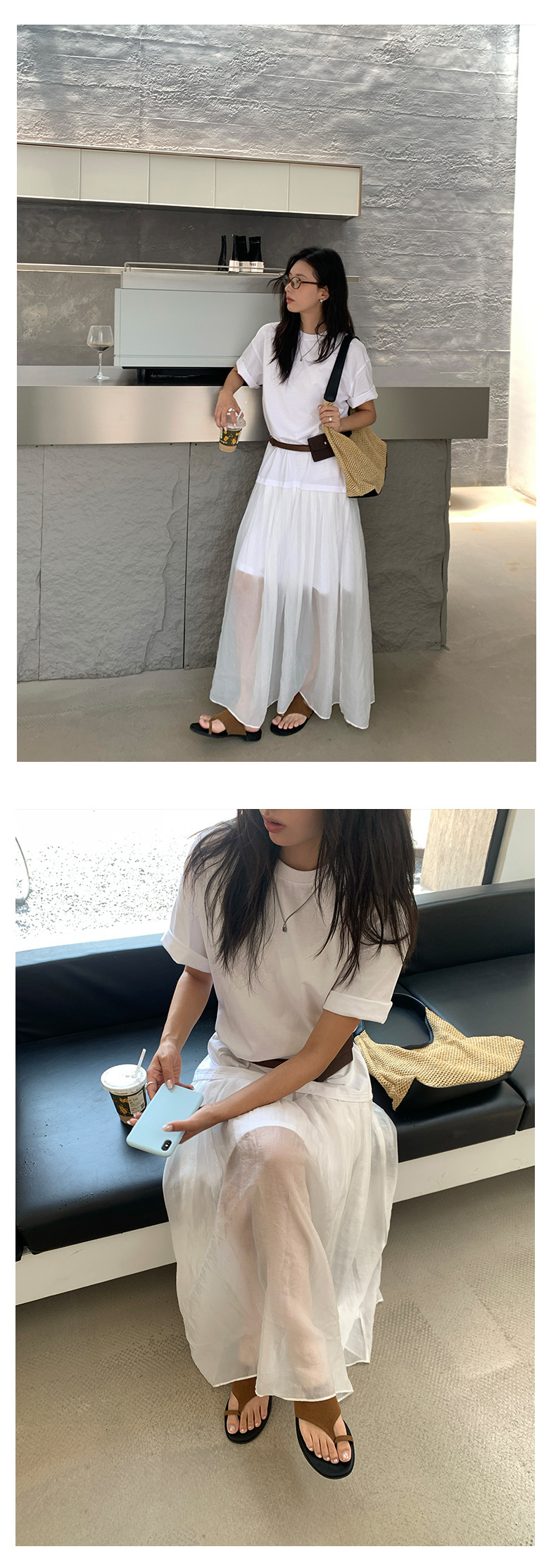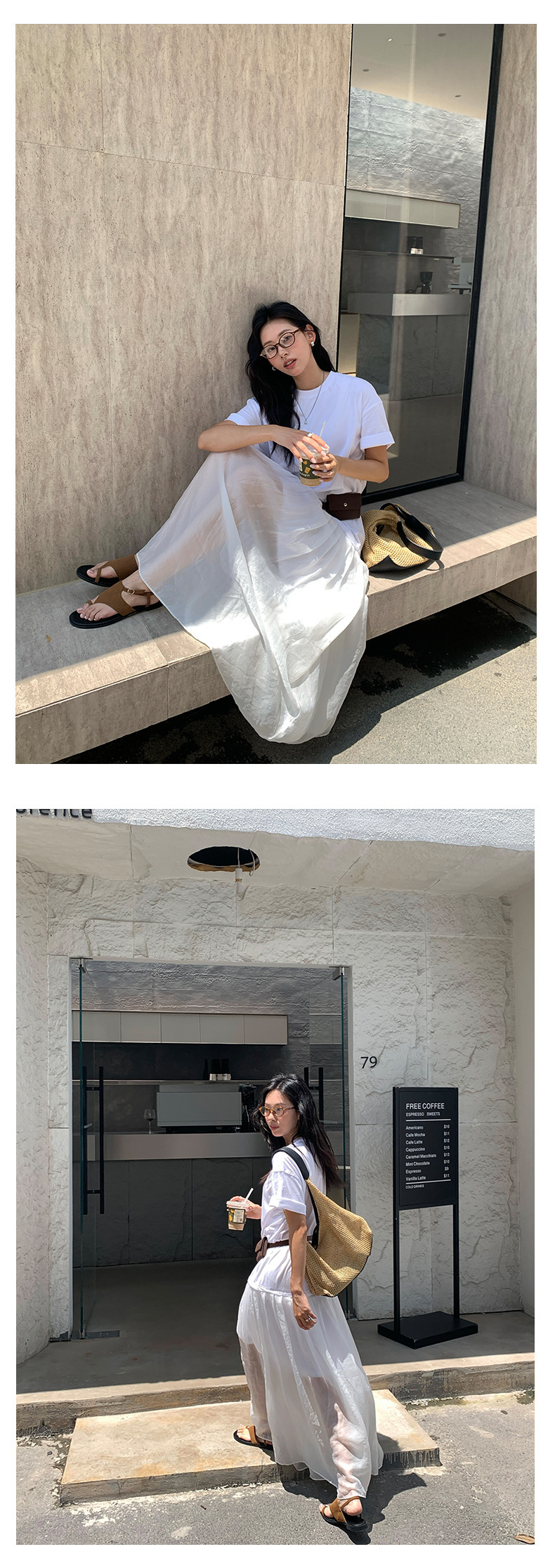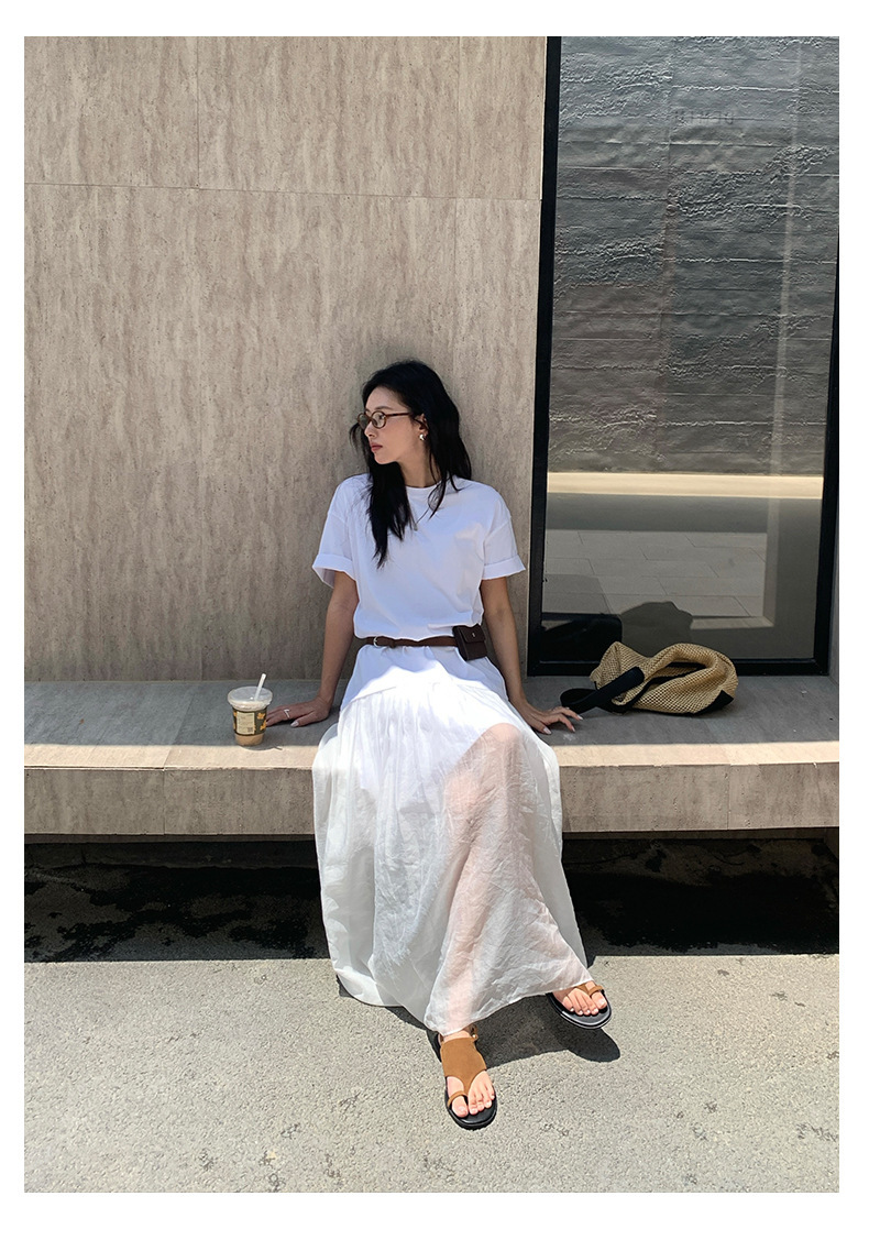 *o-ha-you*【FHZH2FA5020582】韓系白色夏季新款簡約氣質氛圍感短袖中長款連衣裙洋裝-如有需要請先諮詢