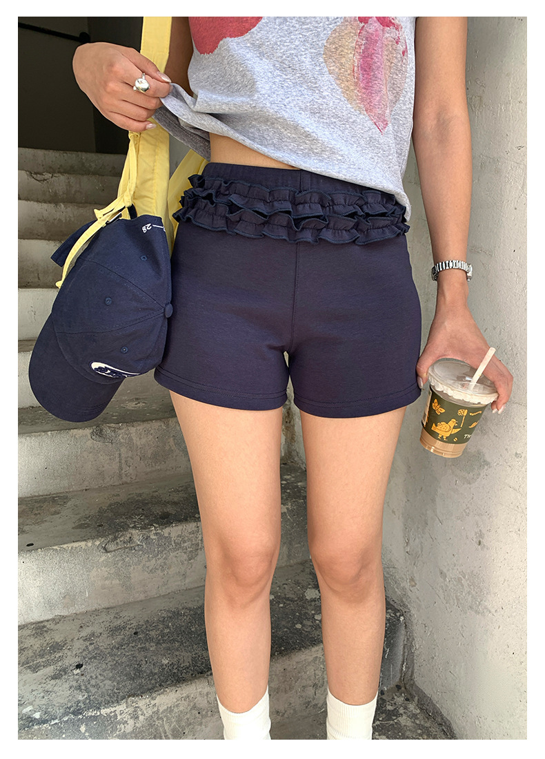 *o-ha-you*【FHZH2GC5020541】韓系設計感木耳邊休閒褲夏季甜辣妹低腰顯瘦短褲熱褲-2色