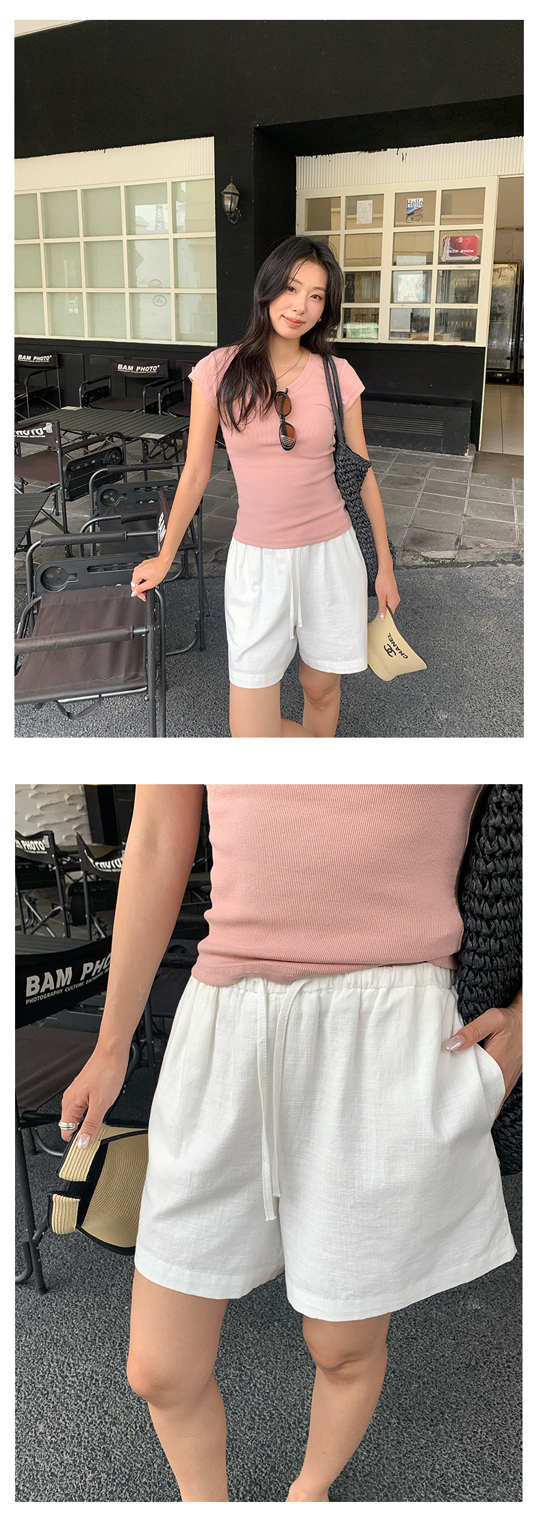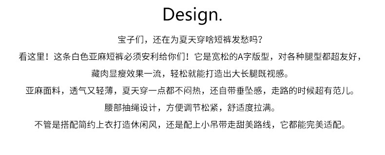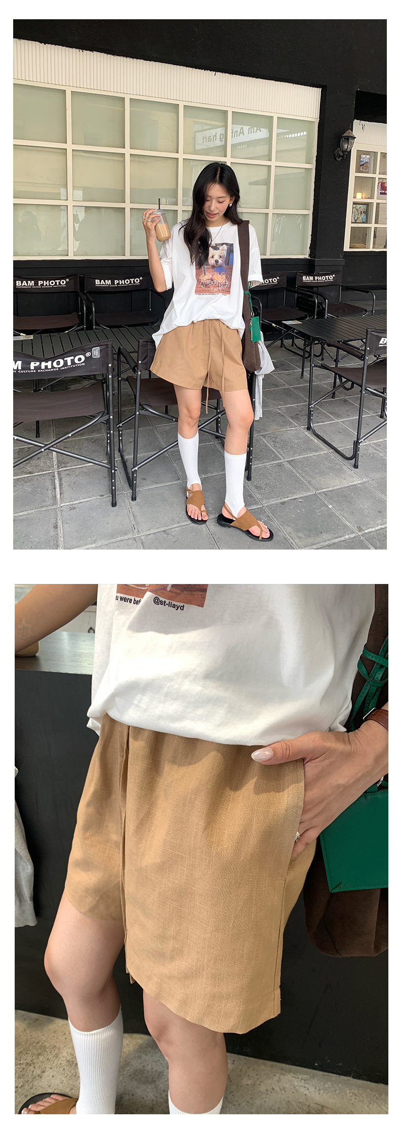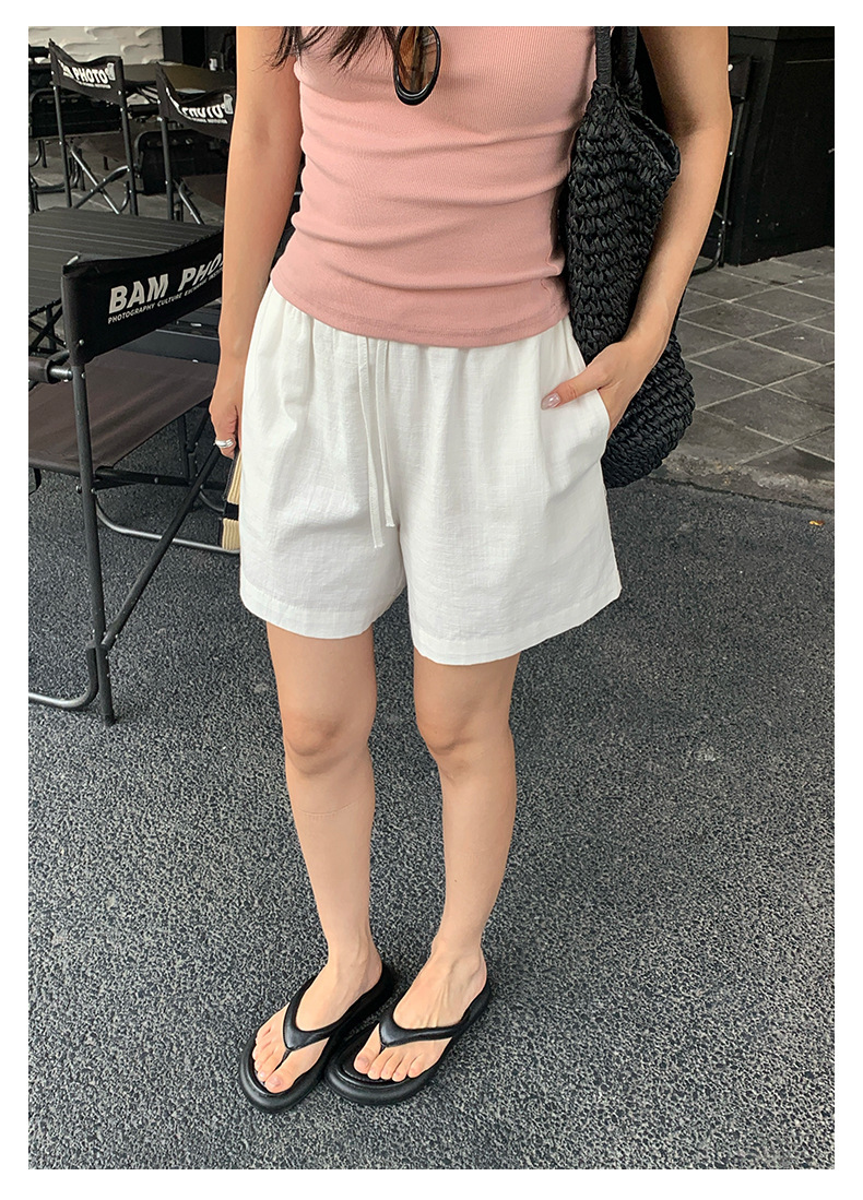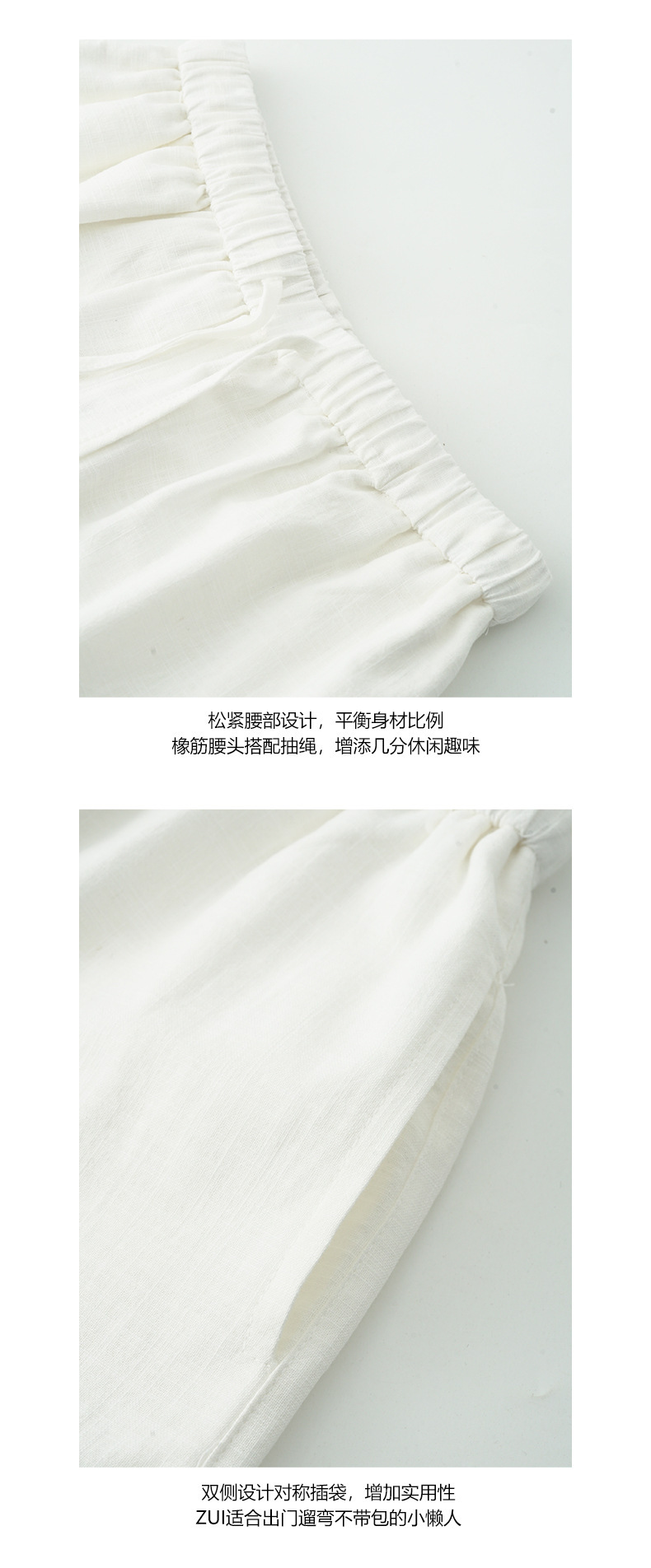 *o-ha-you*【FHZH2GC5020550】韓系鬆緊腰亞麻短褲外空A字褲寬鬆闊腿褲薄款休閒中褲-2色-如有需要請先諮詢