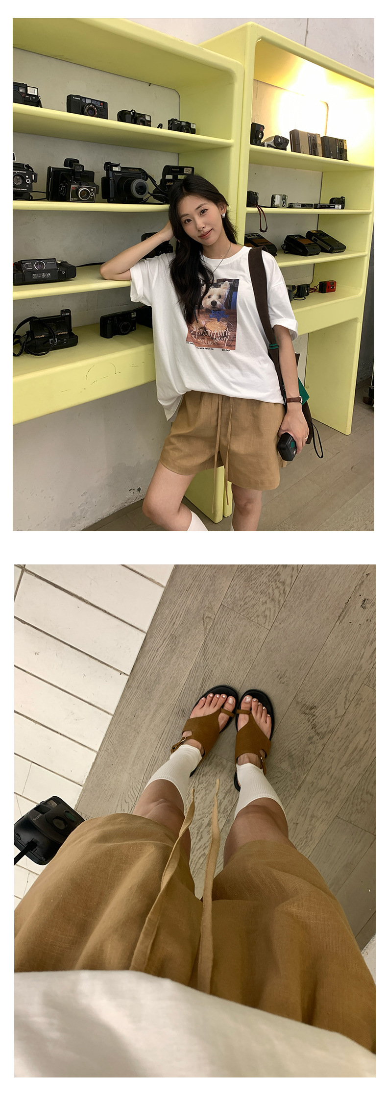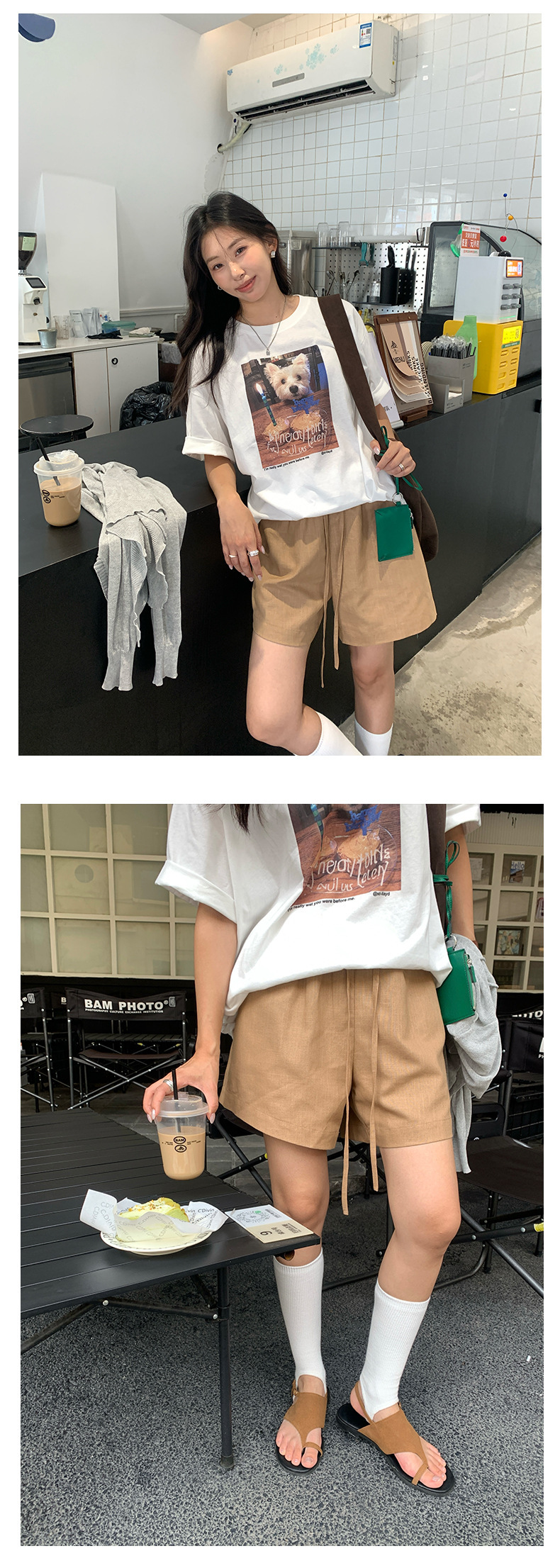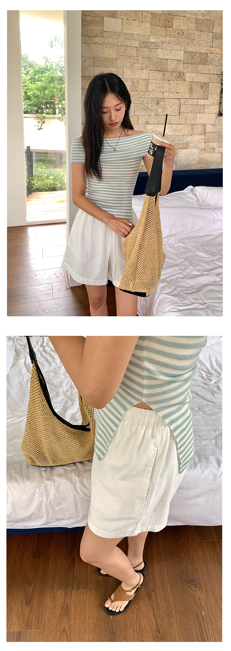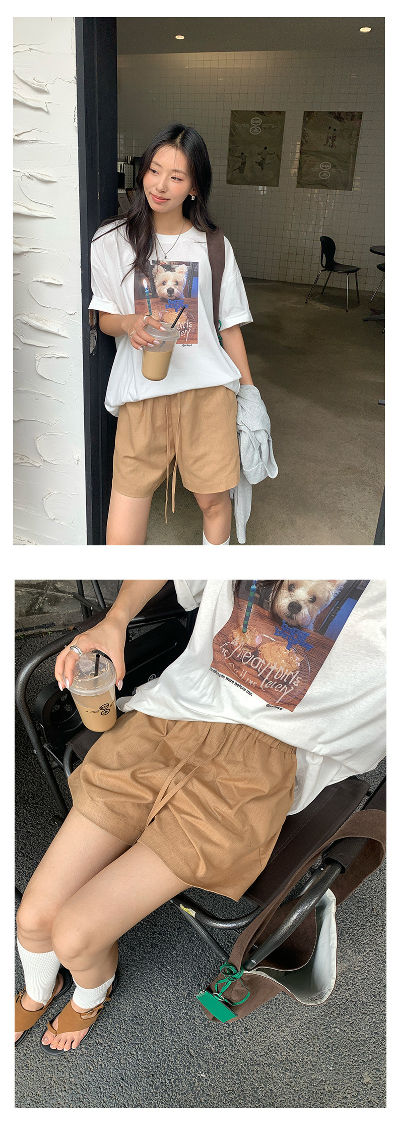 *o-ha-you*【FHZH2GC5020550】韓系鬆緊腰亞麻短褲外空A字褲寬鬆闊腿褲薄款休閒中褲-2色-如有需要請先諮詢
