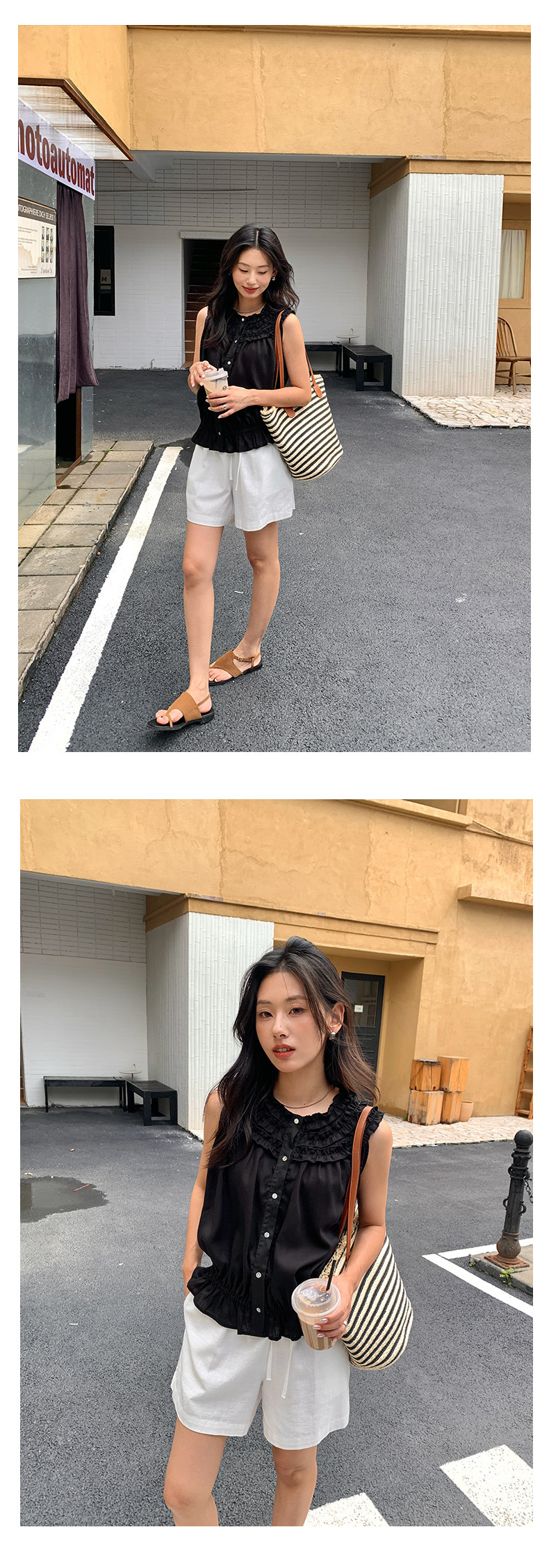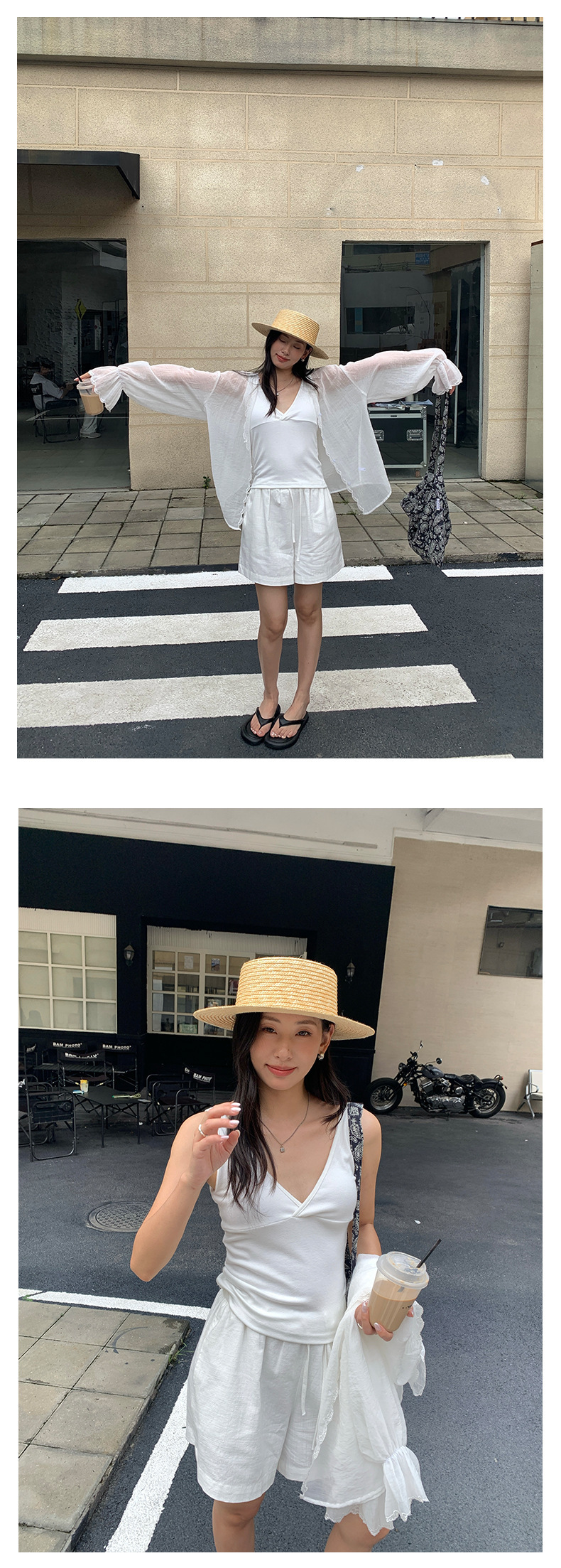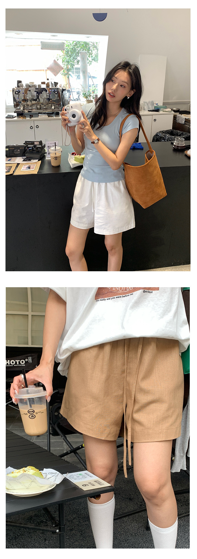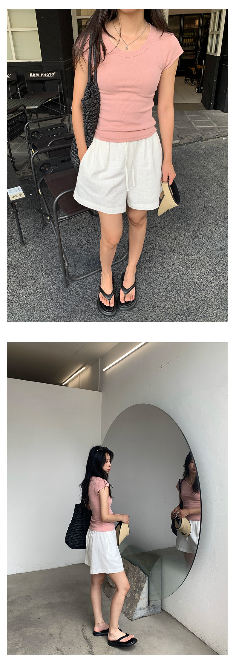 *o-ha-you*【FHZH2GC5020550】韓系鬆緊腰亞麻短褲外空A字褲寬鬆闊腿褲薄款休閒中褲-2色-如有需要請先諮詢