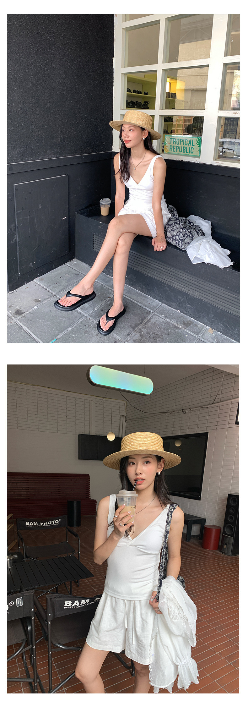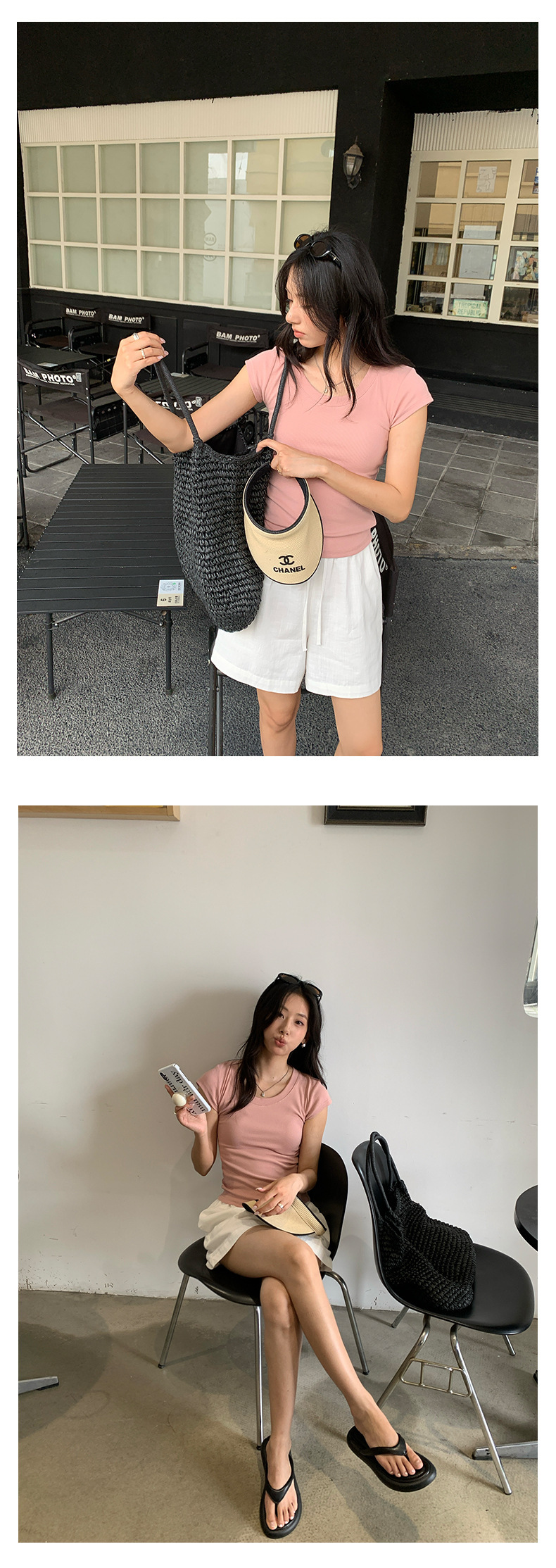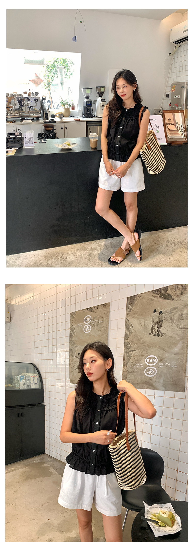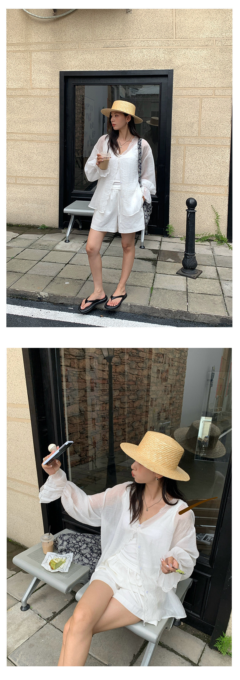 *o-ha-you*【FHZH2GC5020550】韓系鬆緊腰亞麻短褲外空A字褲寬鬆闊腿褲薄款休閒中褲-2色-如有需要請先諮詢