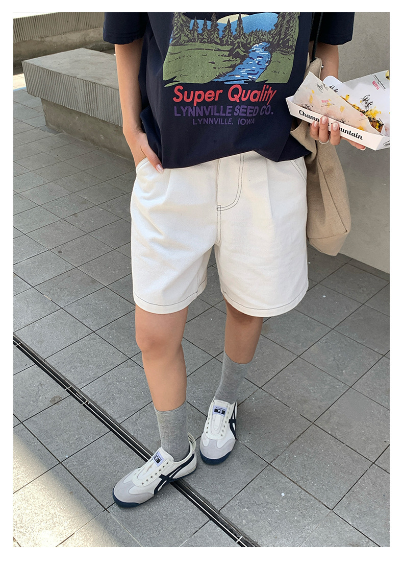 *o-ha-you*【FHZH2GC5020620】韓系薄版牛仔短褲寬鬆直筒高腰顯瘦休閒百搭中褲-如有需要請先諮詢