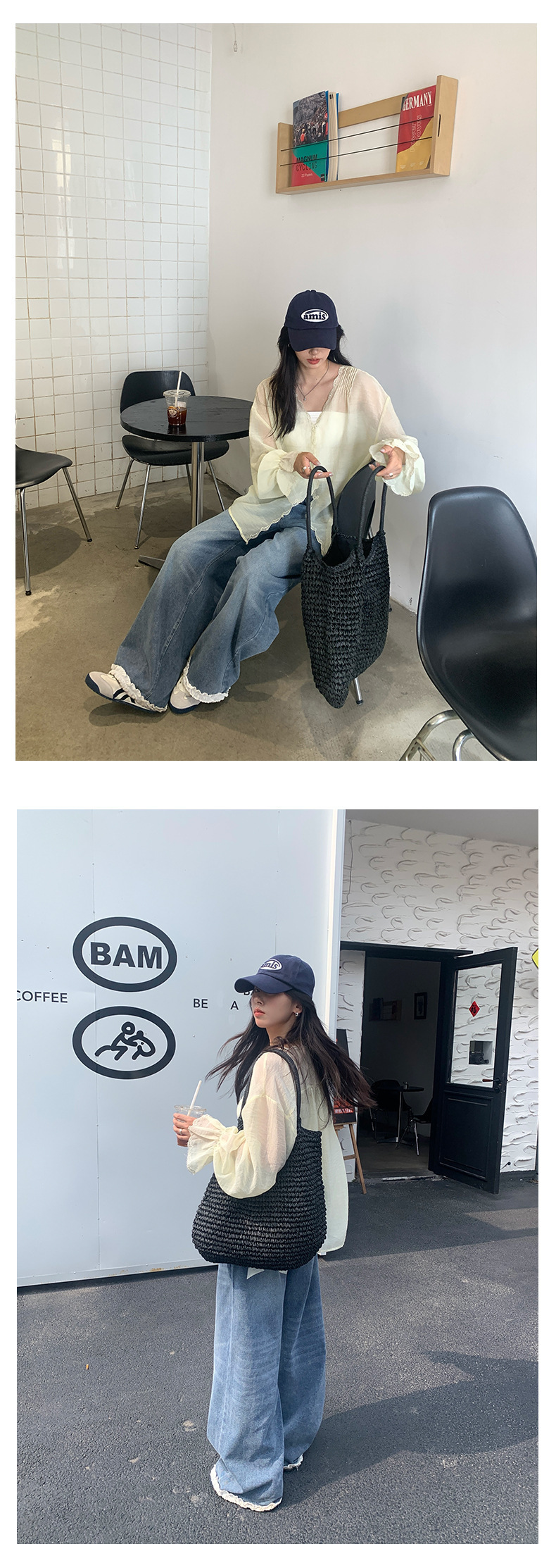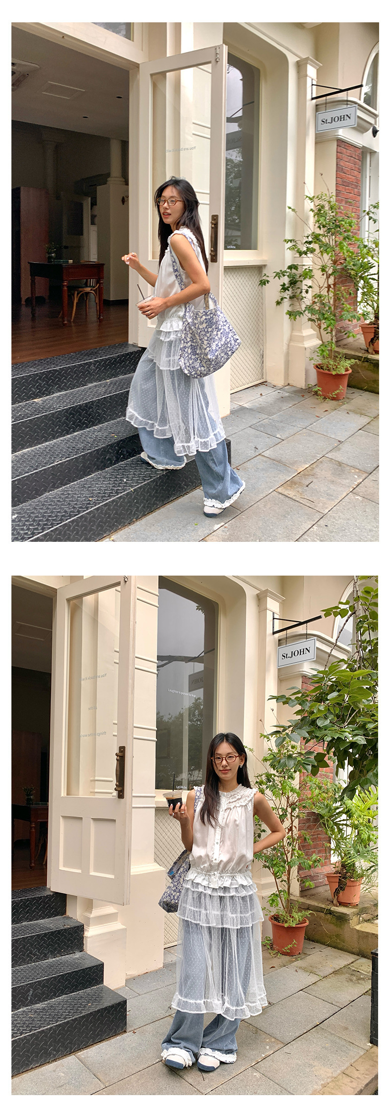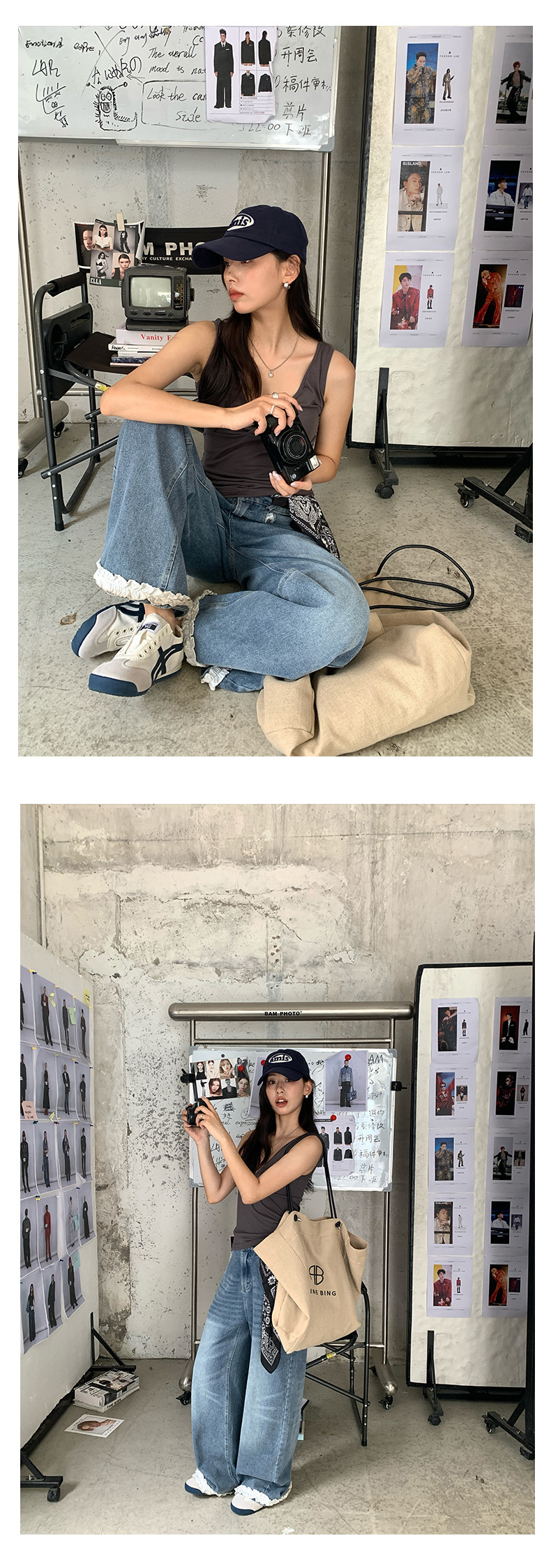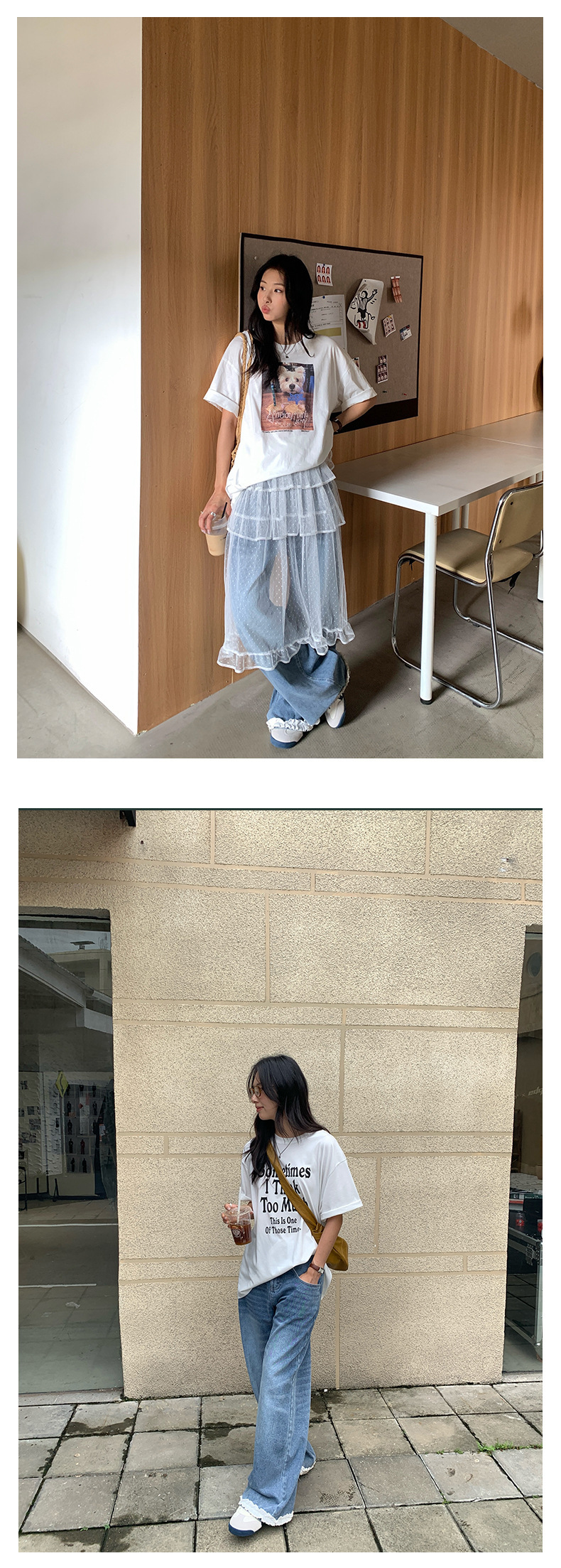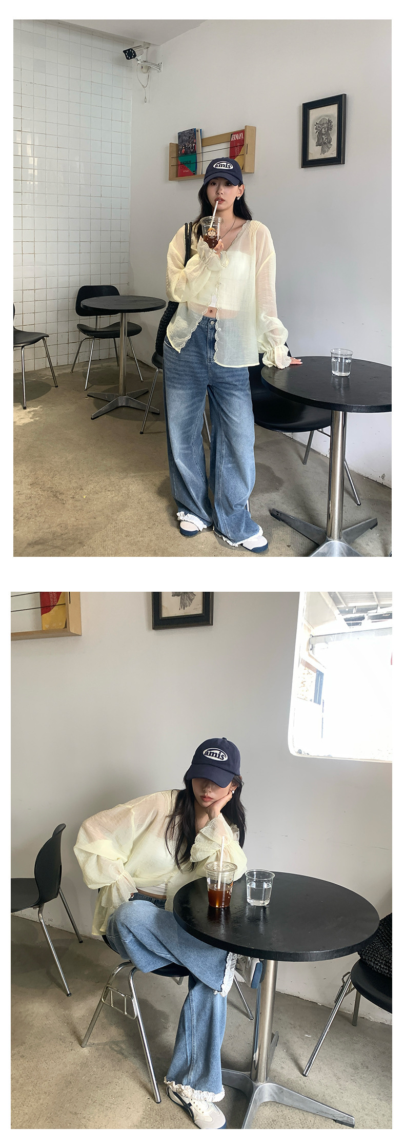*o-ha-you*【FHZH2HA5020499】韓版夏季新款蝴蝶印花低腰垂感闊腿褲蕾絲拼接牛仔褲-如有需要請先諮詢
