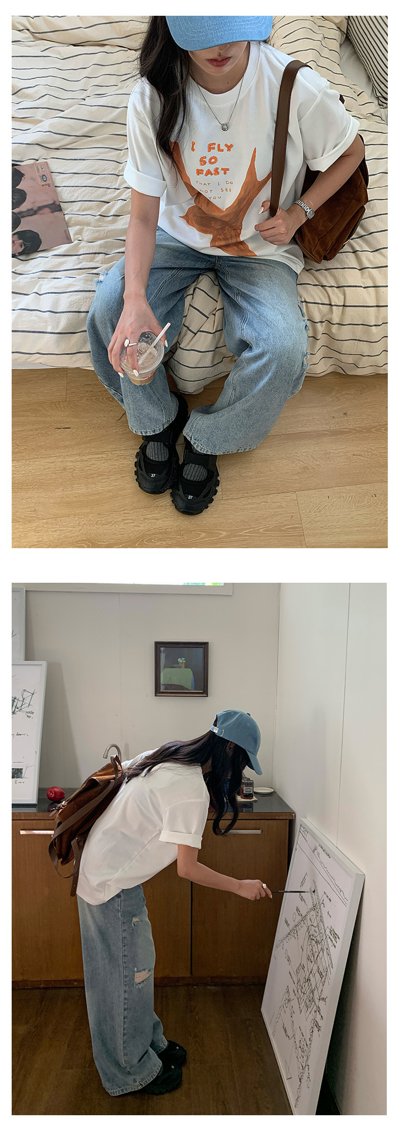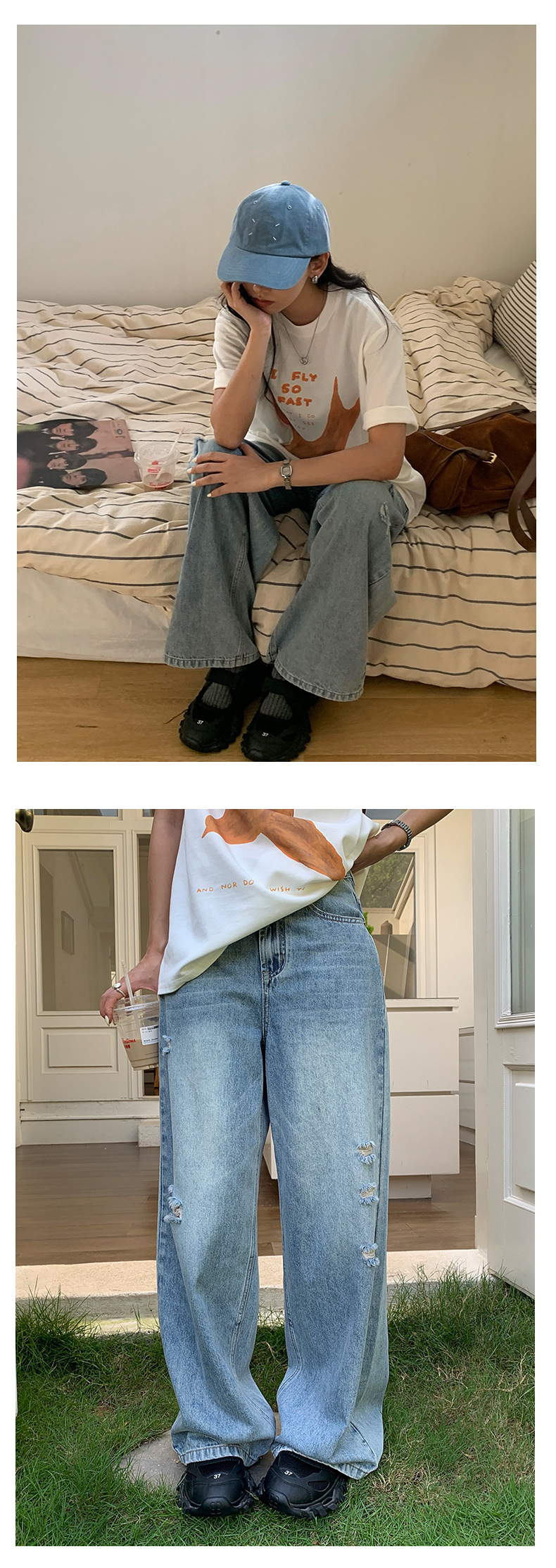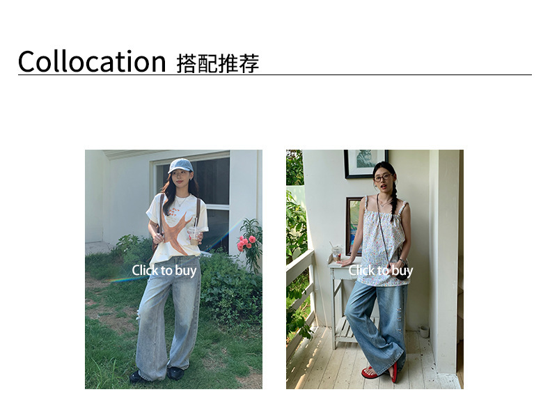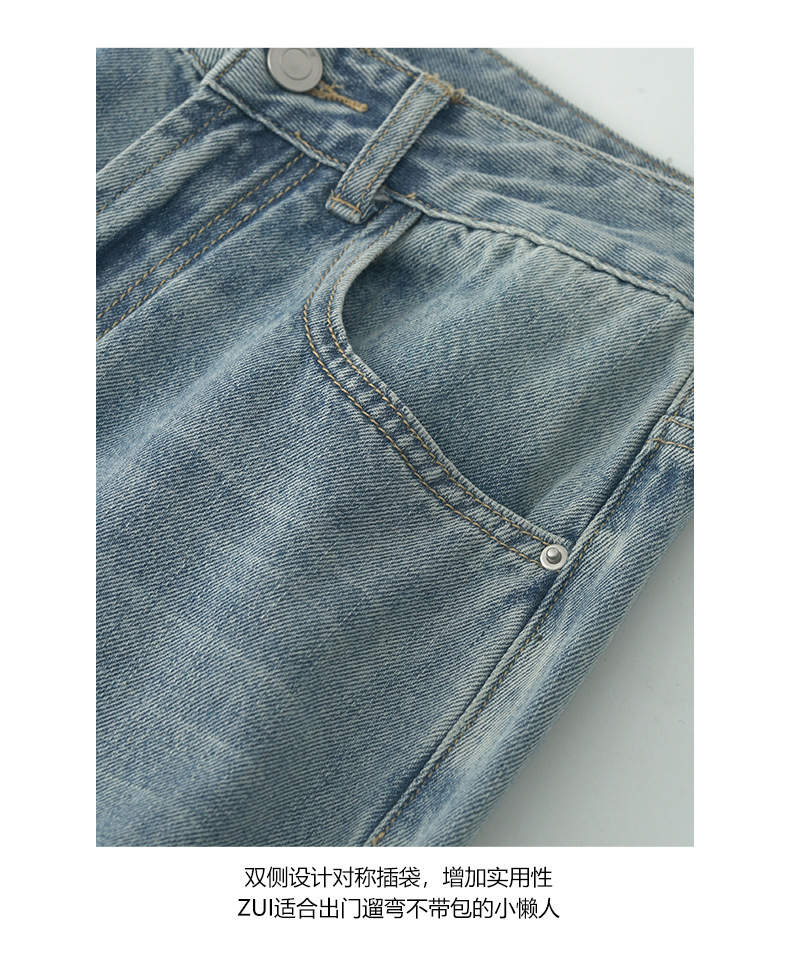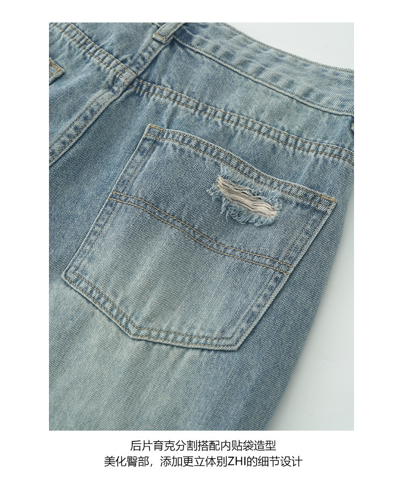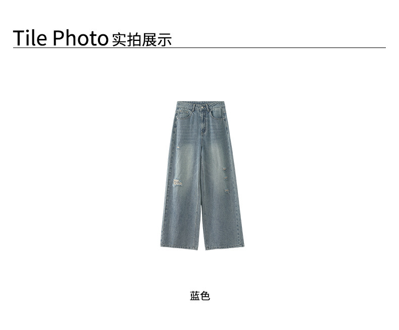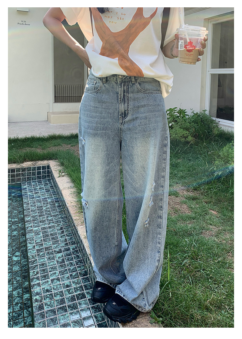 *o-ha-you*【FHZH2HA5020576】韓版小個子復古做舊破洞牛仔褲寬鬆垂感闊腿褲