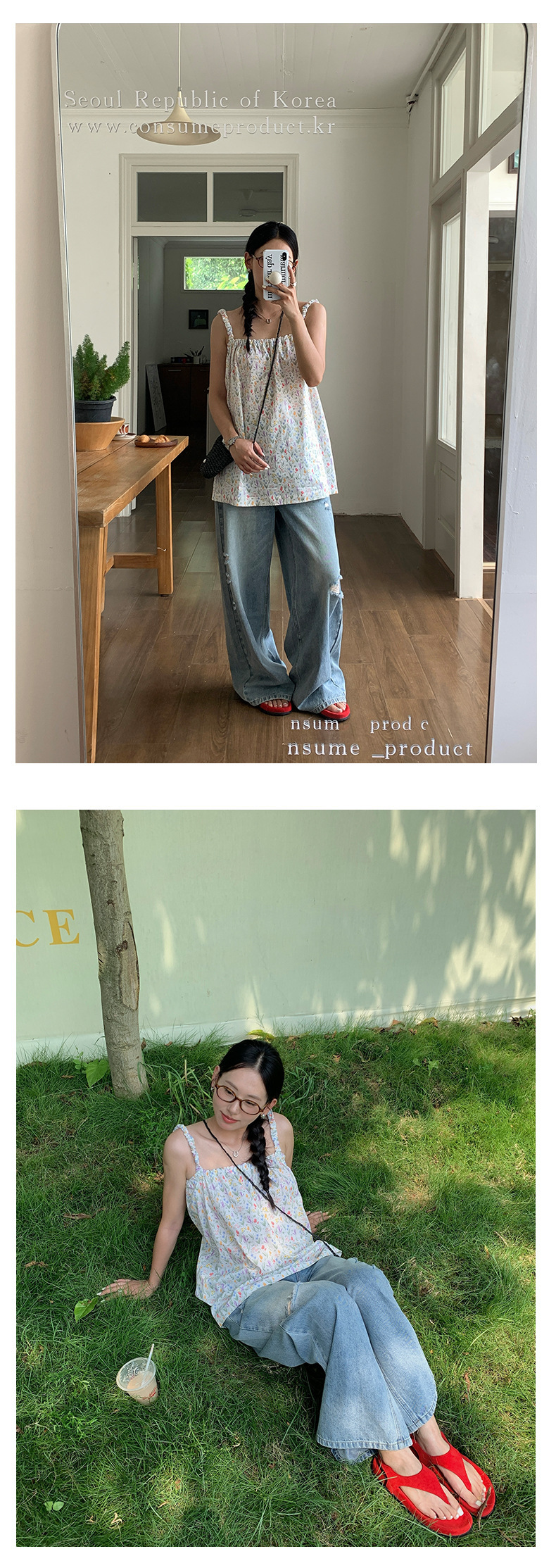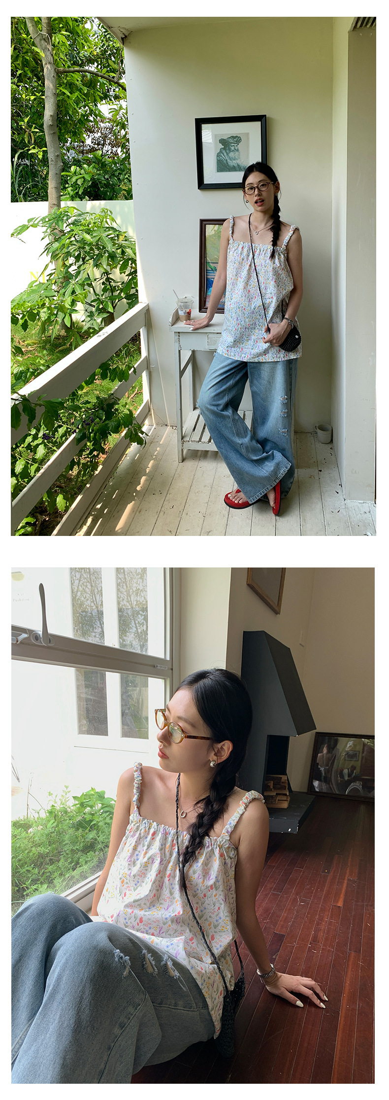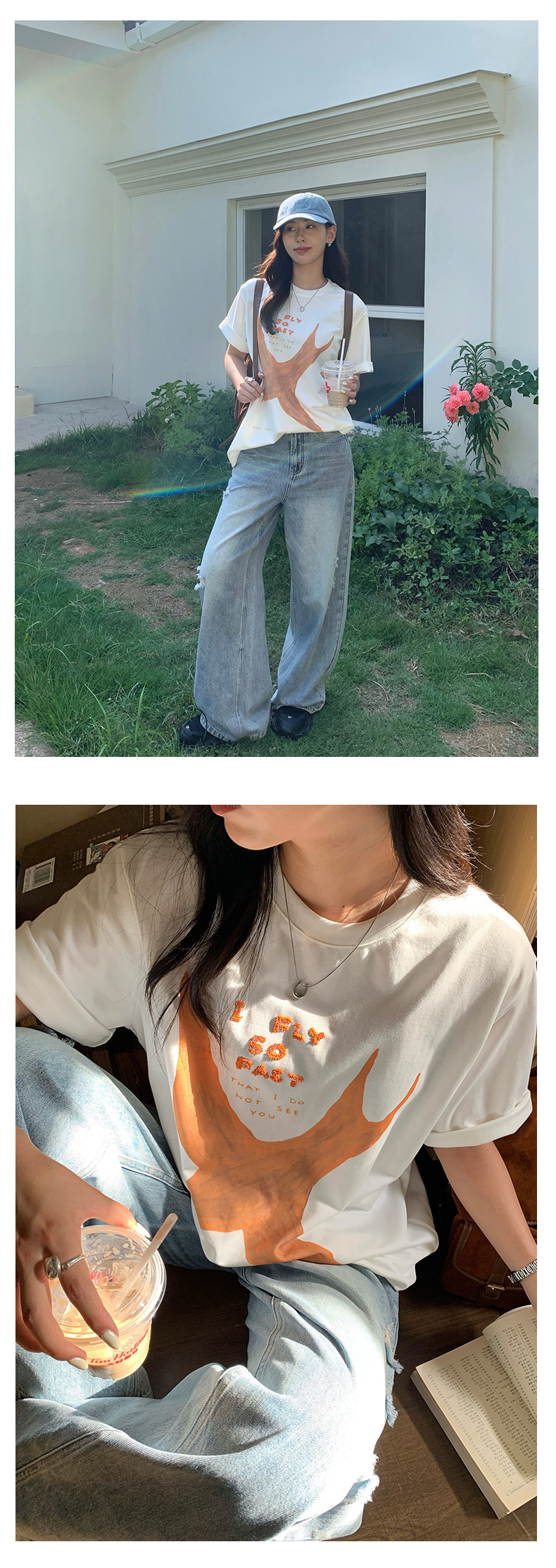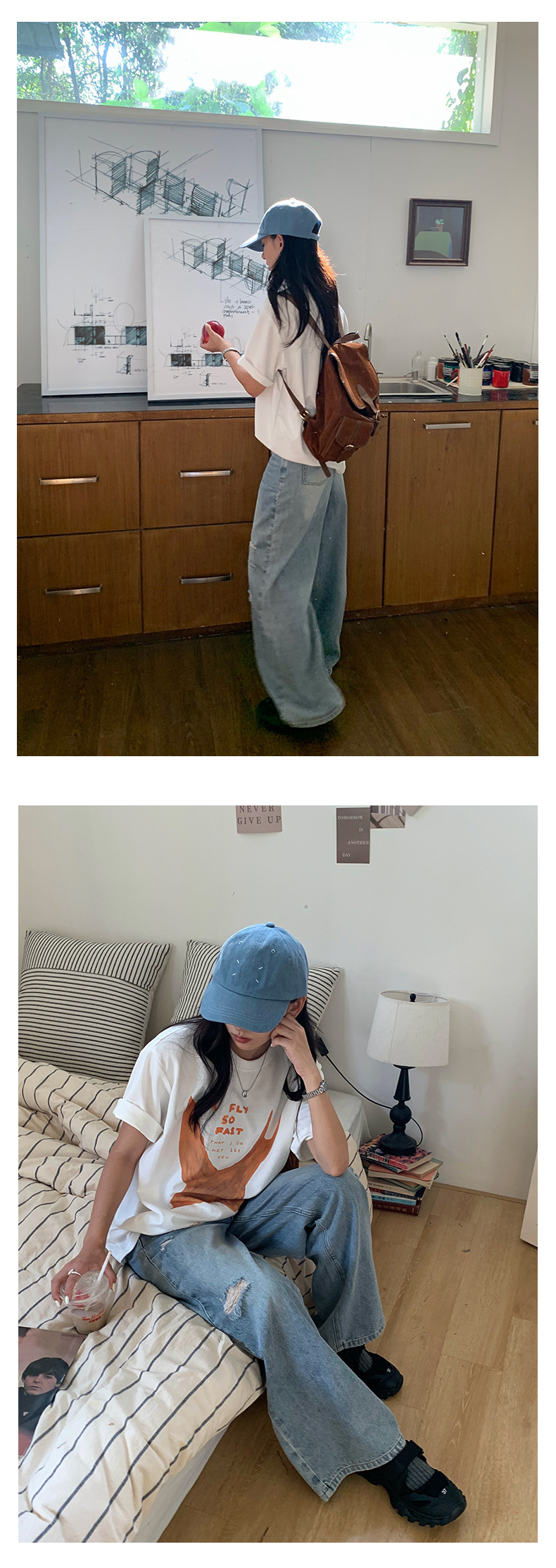 *o-ha-you*【FHZH2HA5020576】韓版小個子復古做舊破洞牛仔褲寬鬆垂感闊腿褲