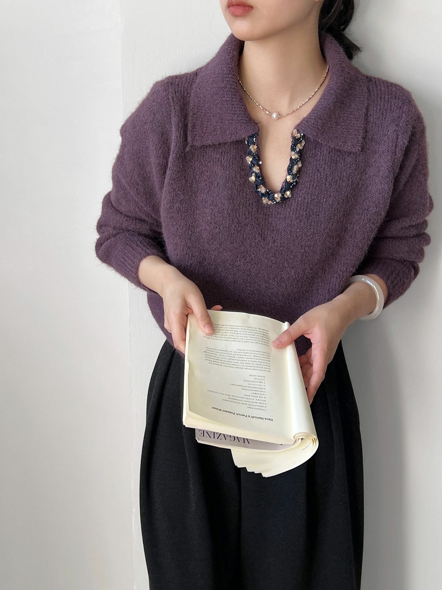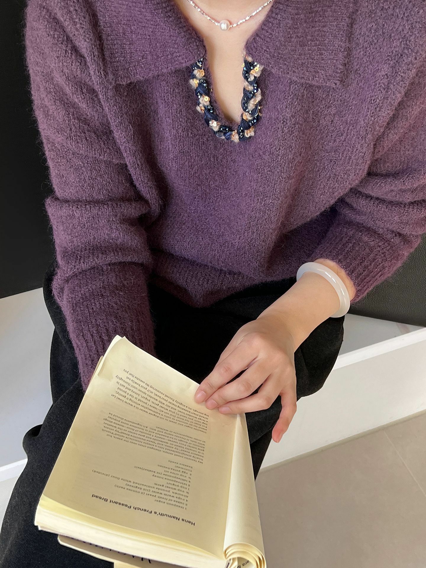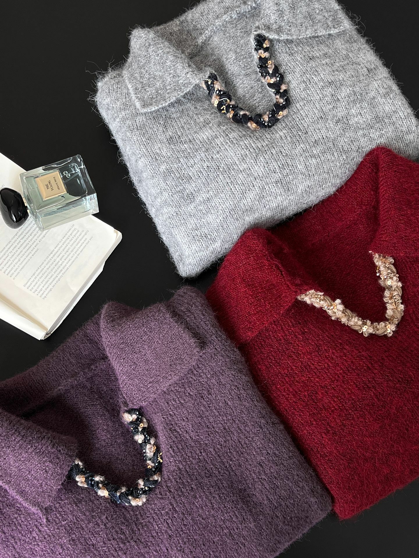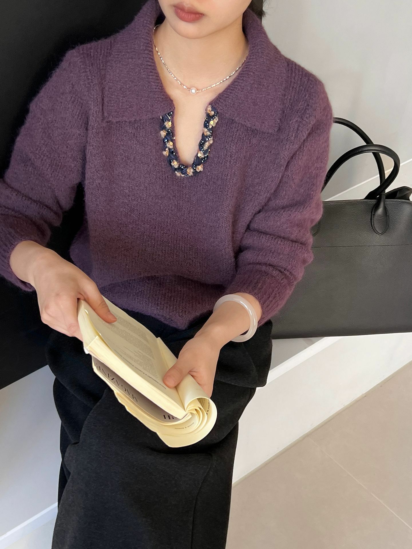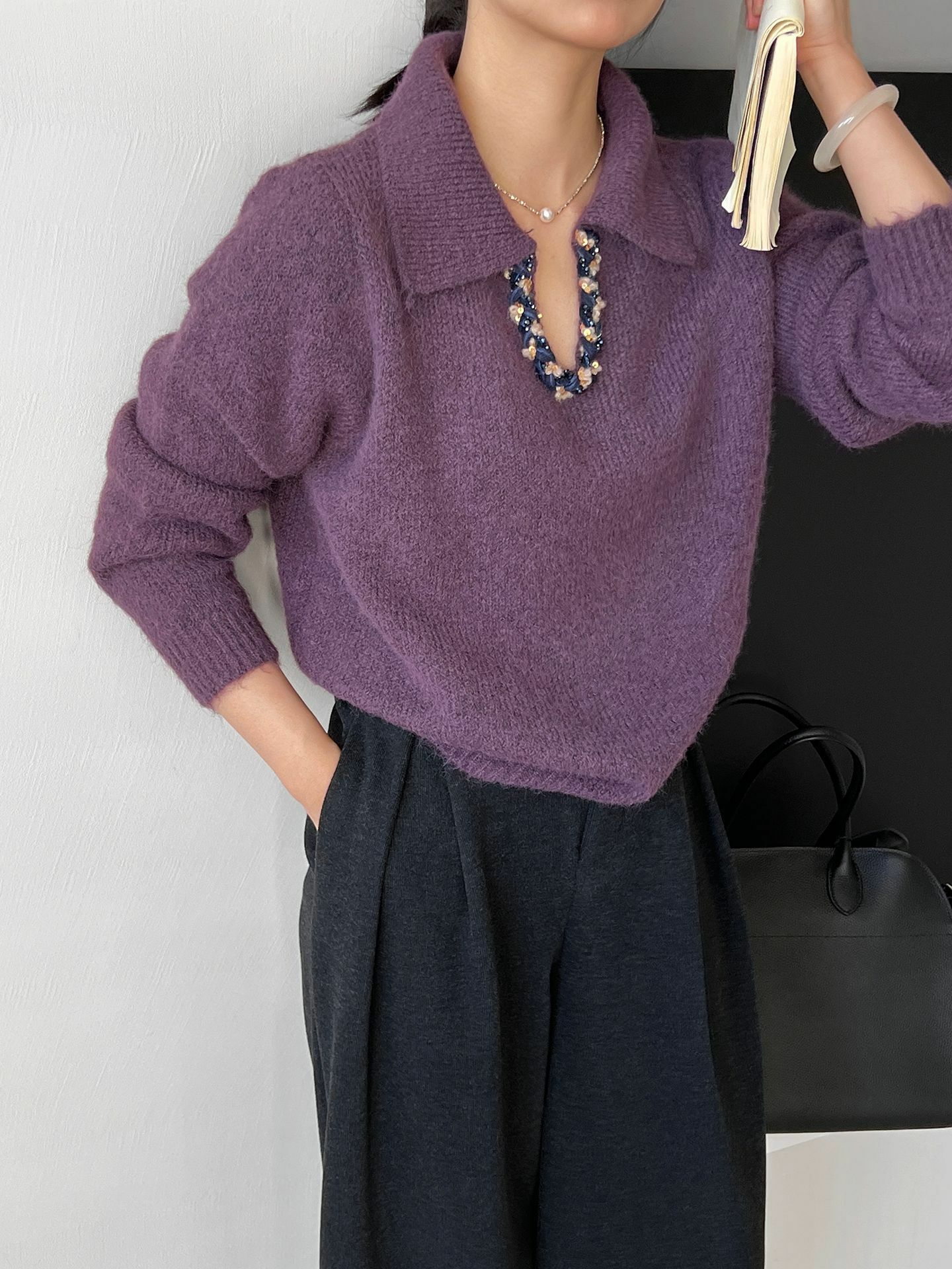 *o-ha-you*【FJZ20497】重工編織翻領毛衣寬鬆慵懶高級感針織衫-3色