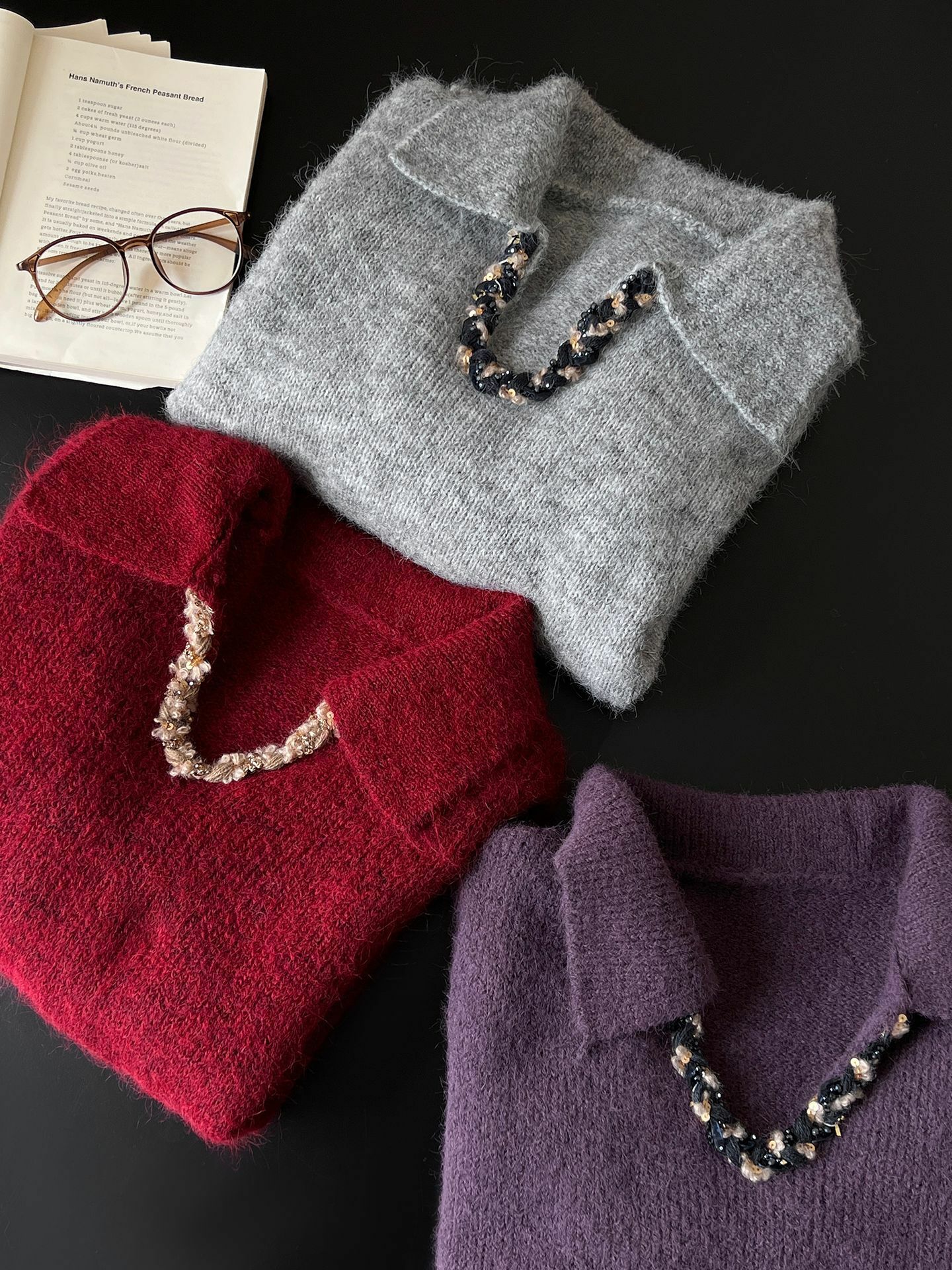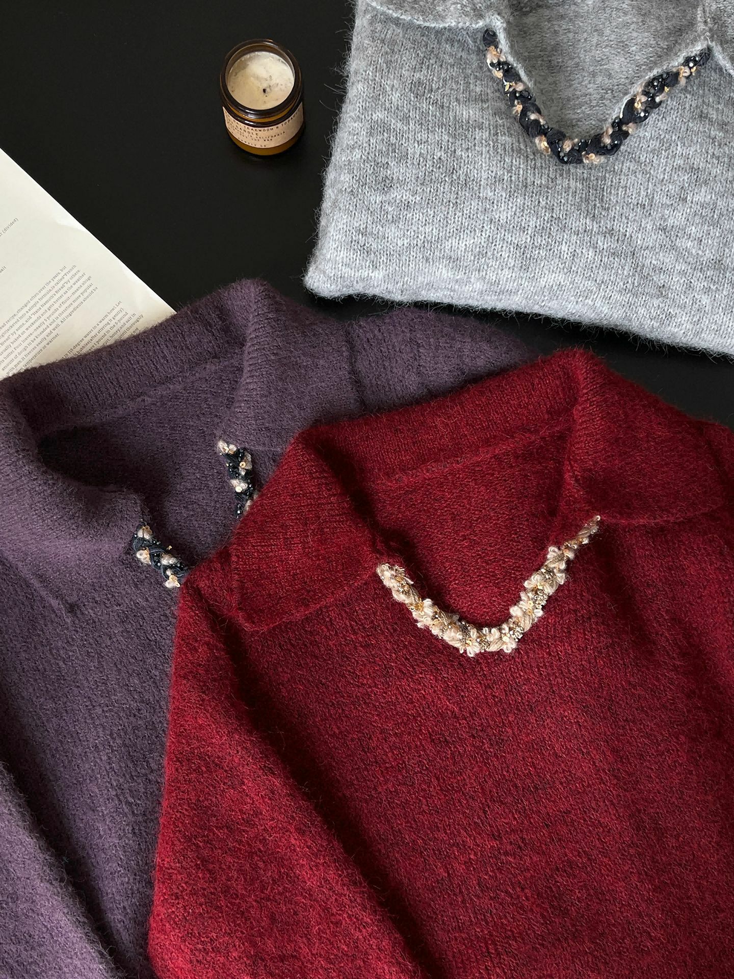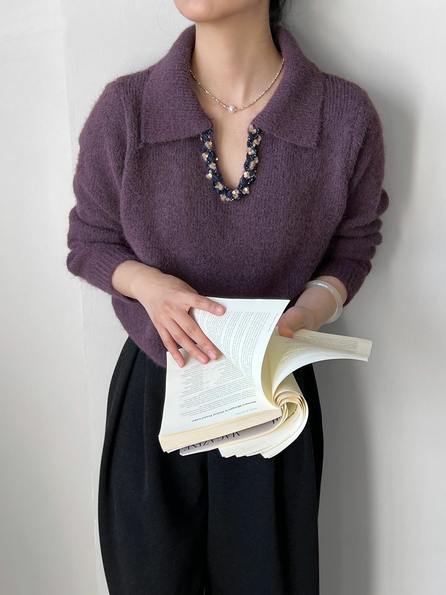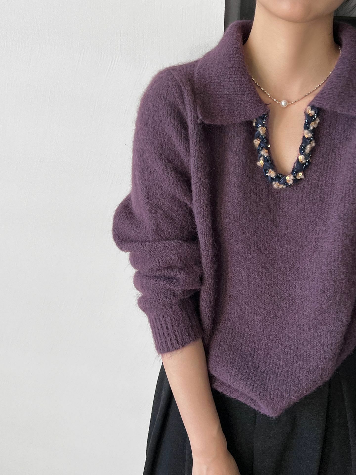 *o-ha-you*【FJZ20497】重工編織翻領毛衣寬鬆慵懶高級感針織衫-3色