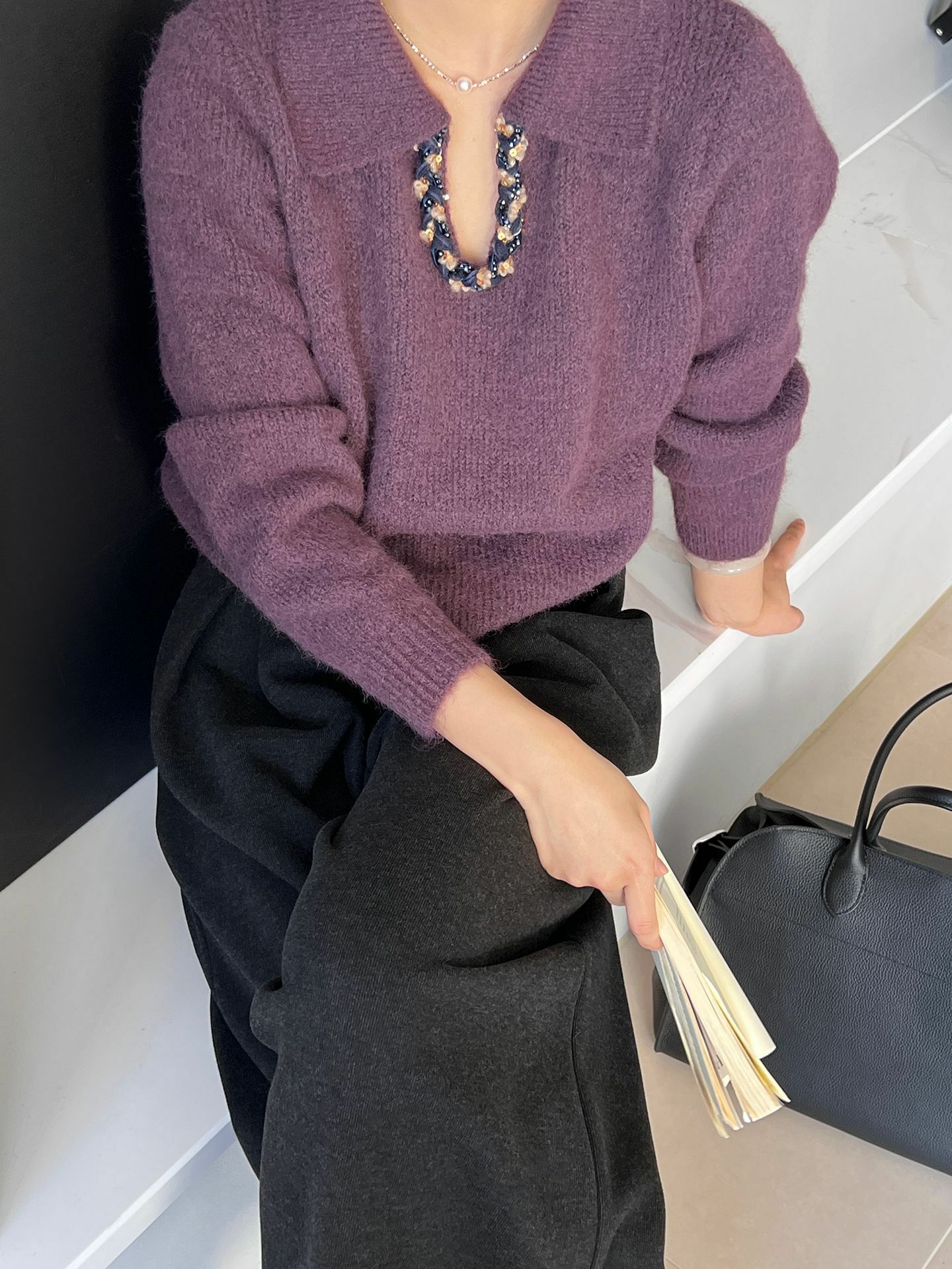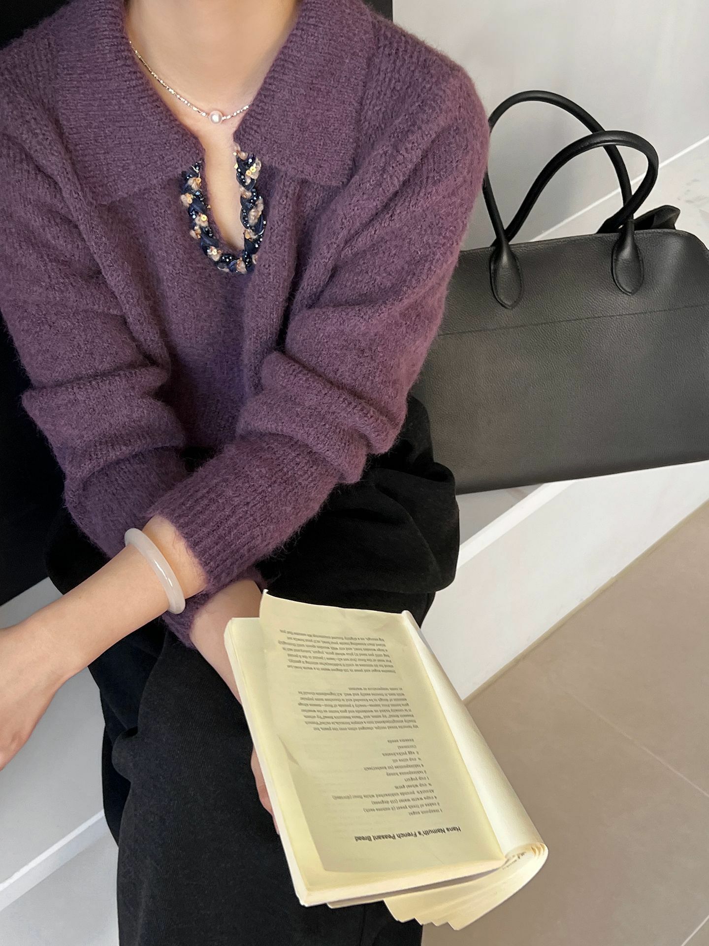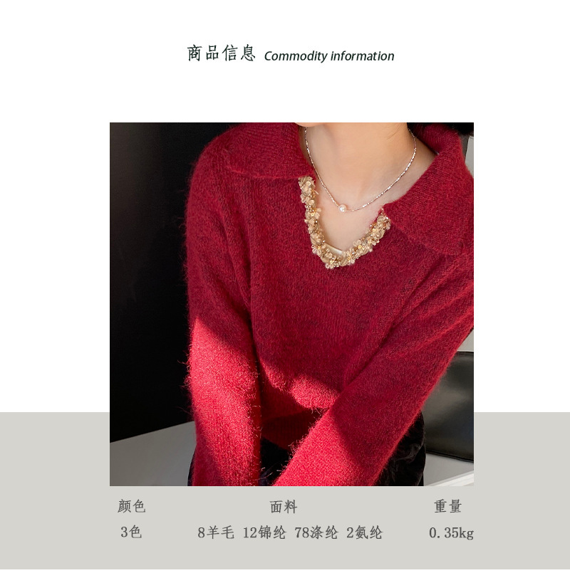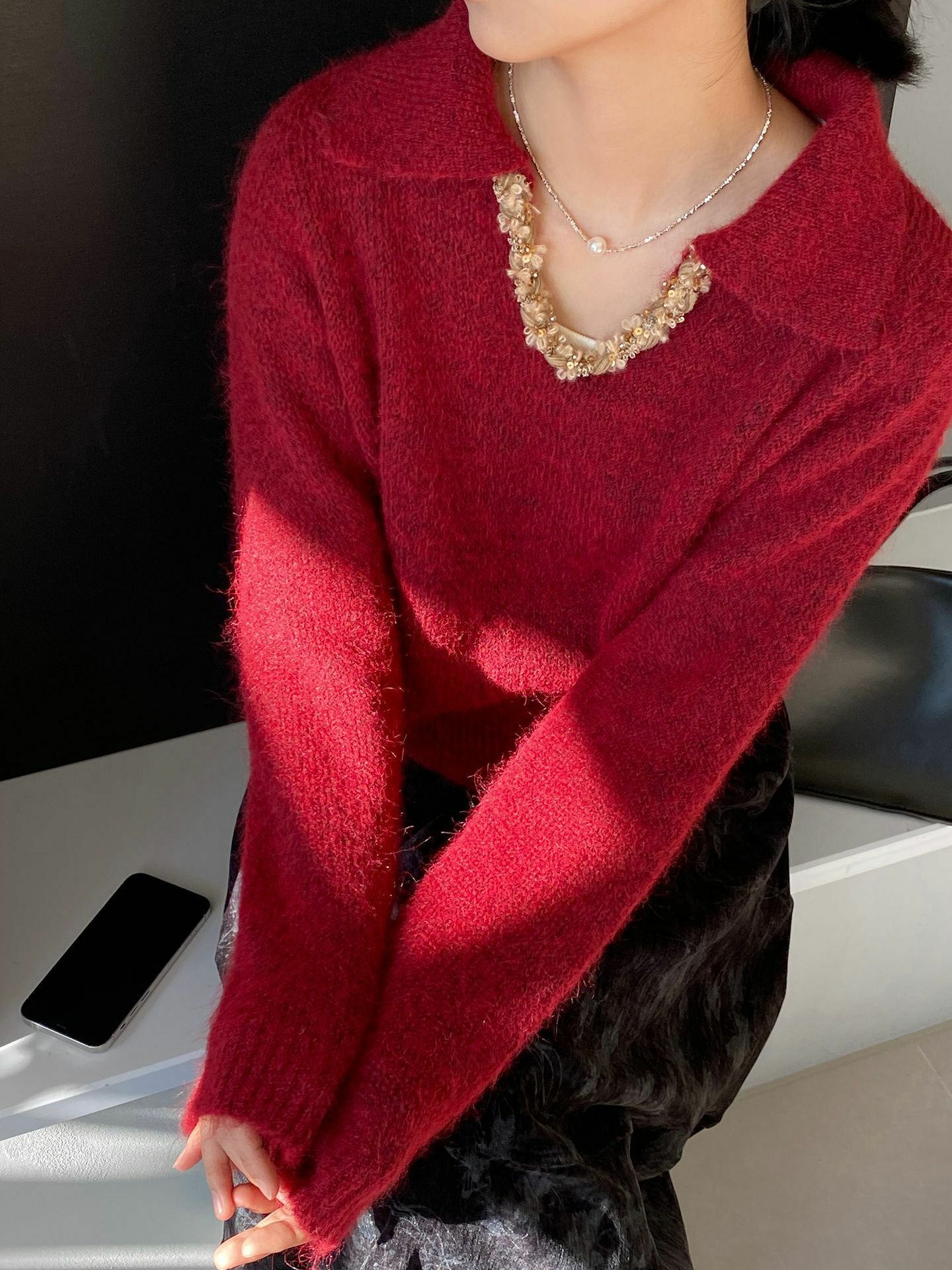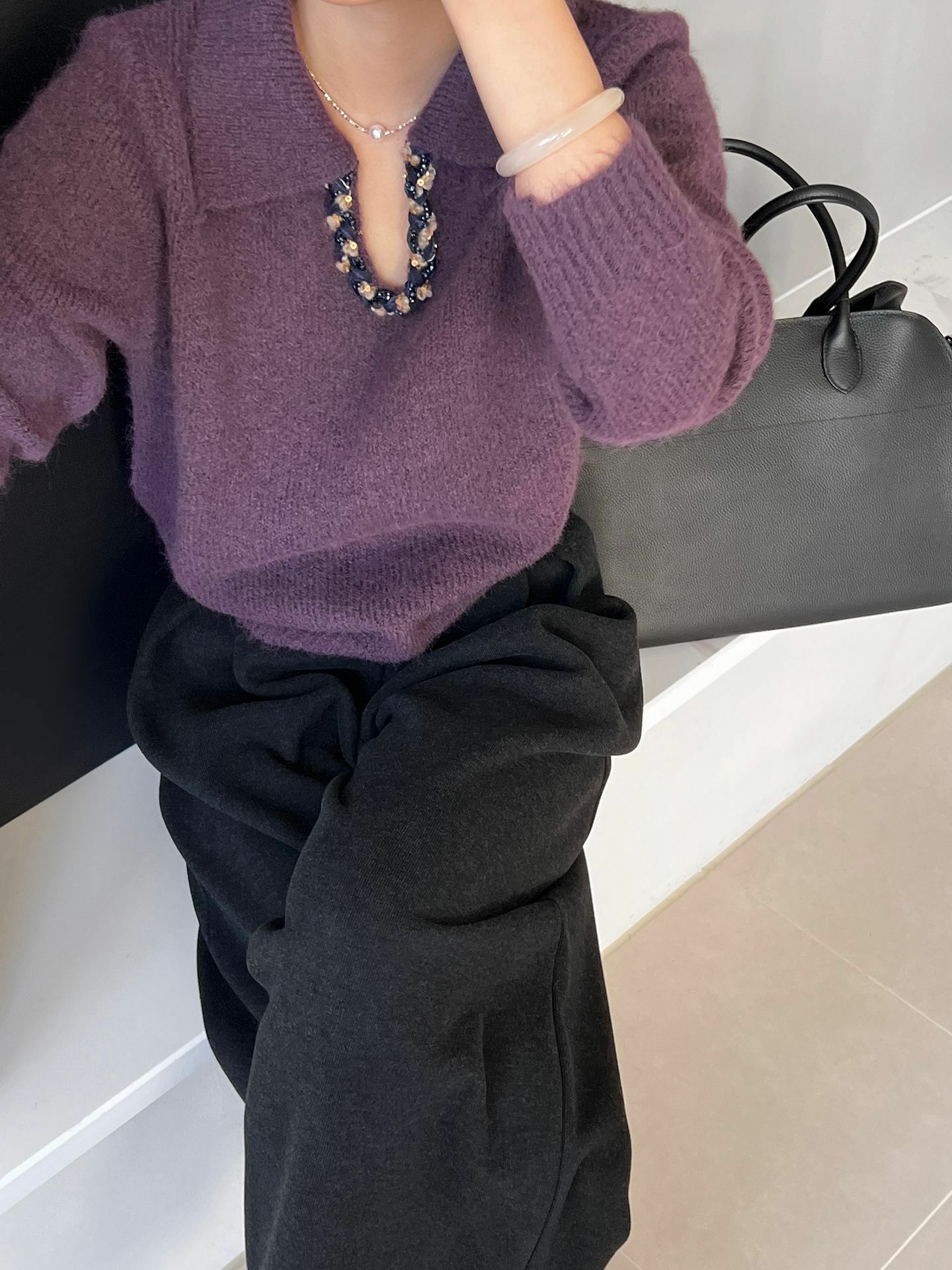 *o-ha-you*【FJZ20497】重工編織翻領毛衣寬鬆慵懶高級感針織衫-3色