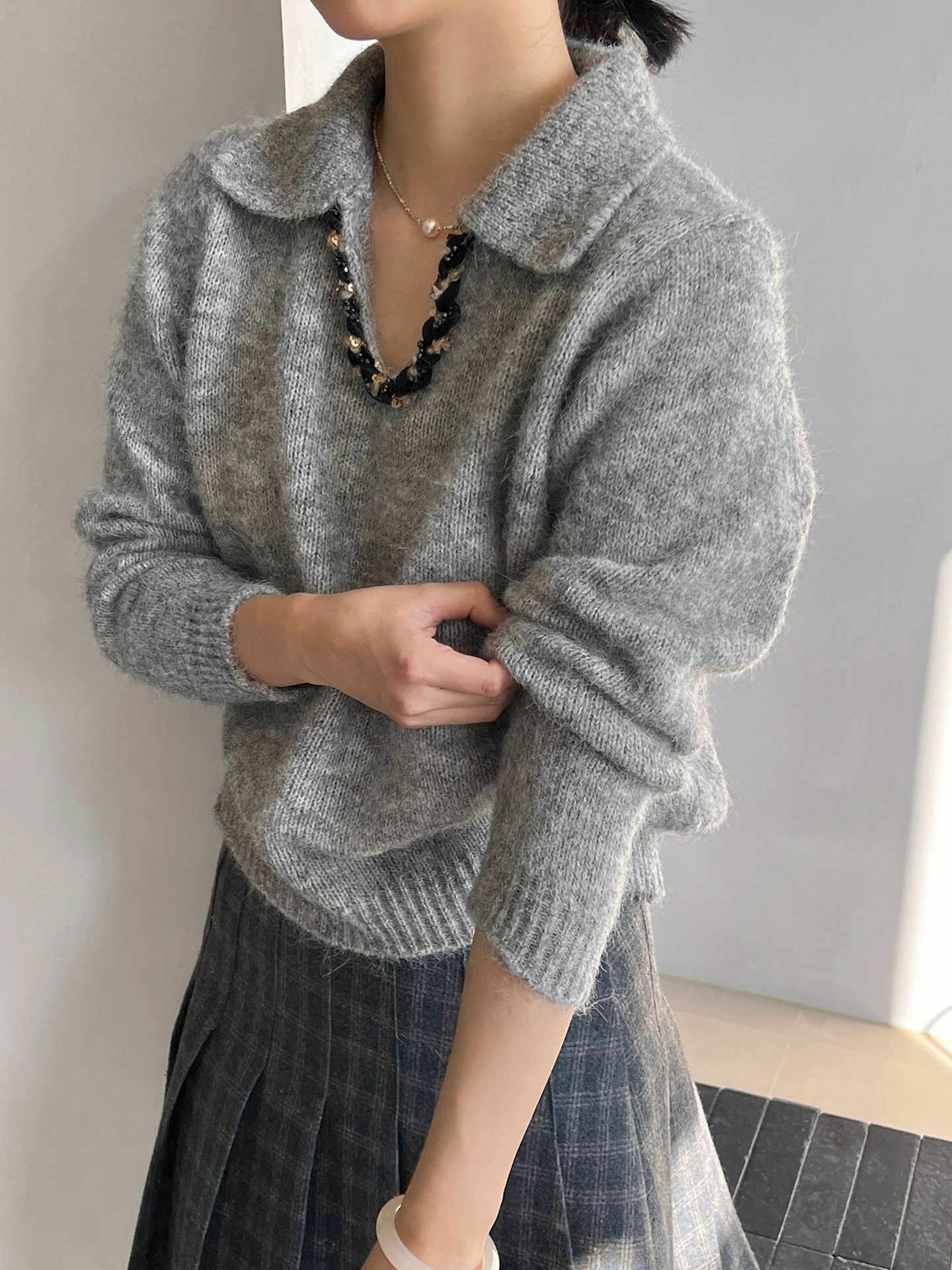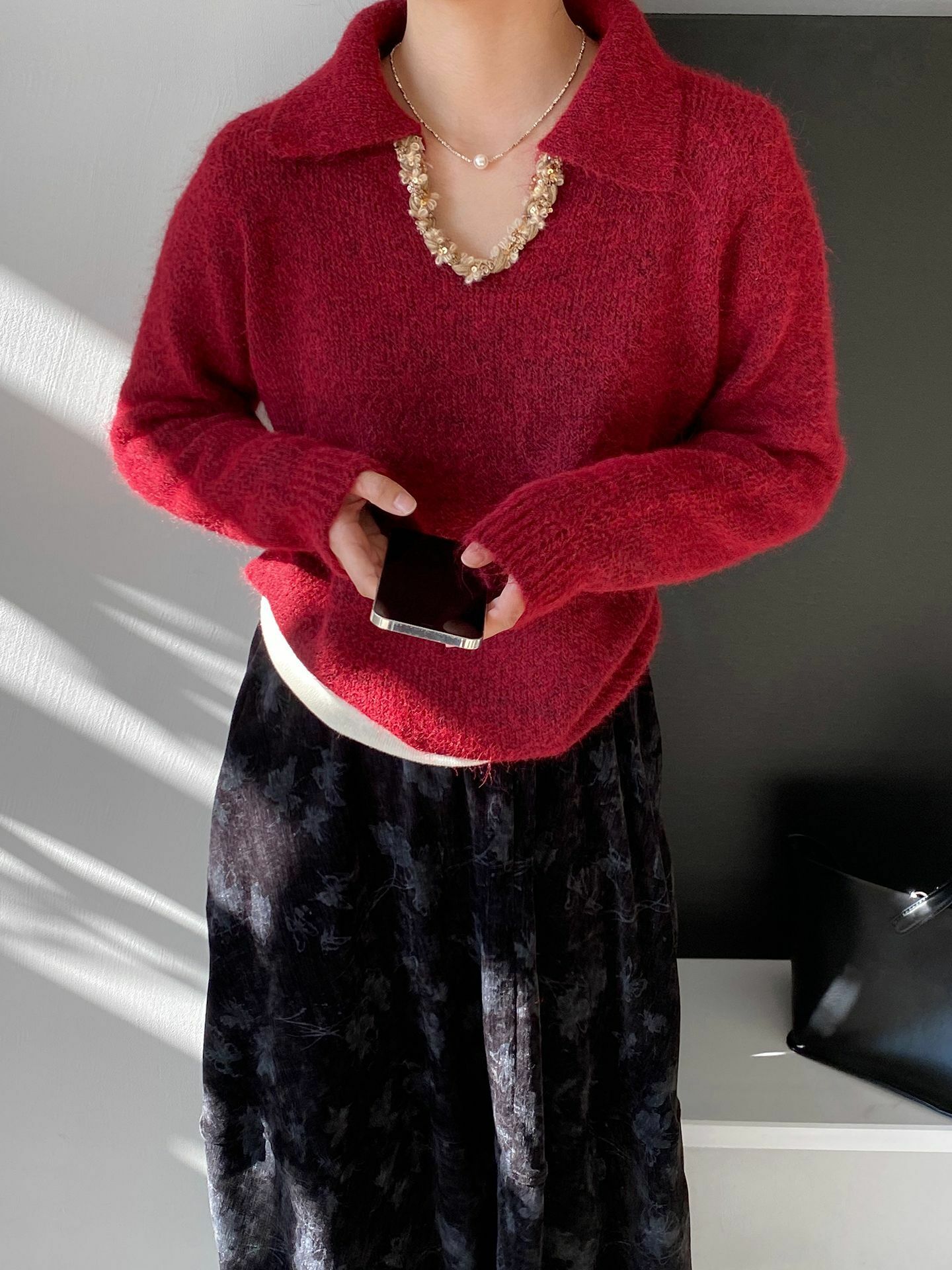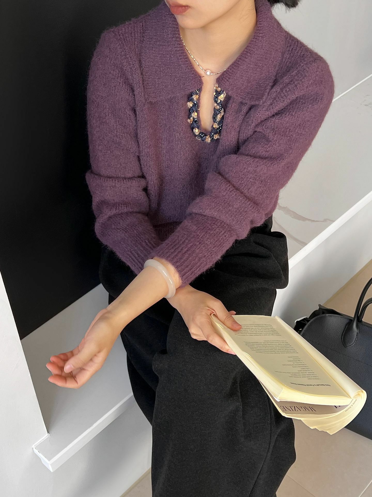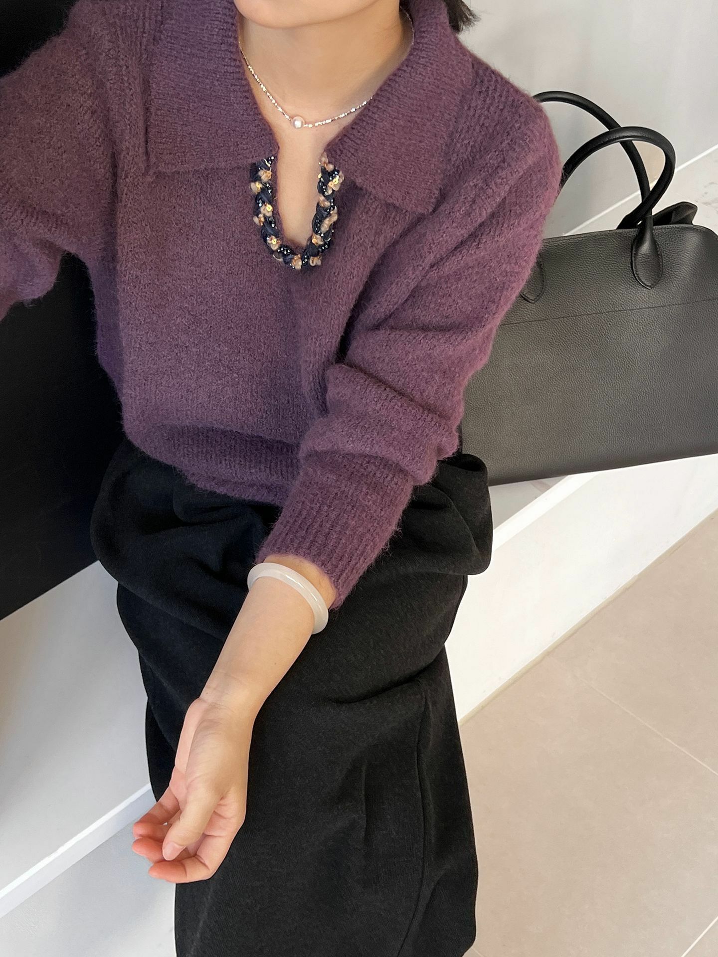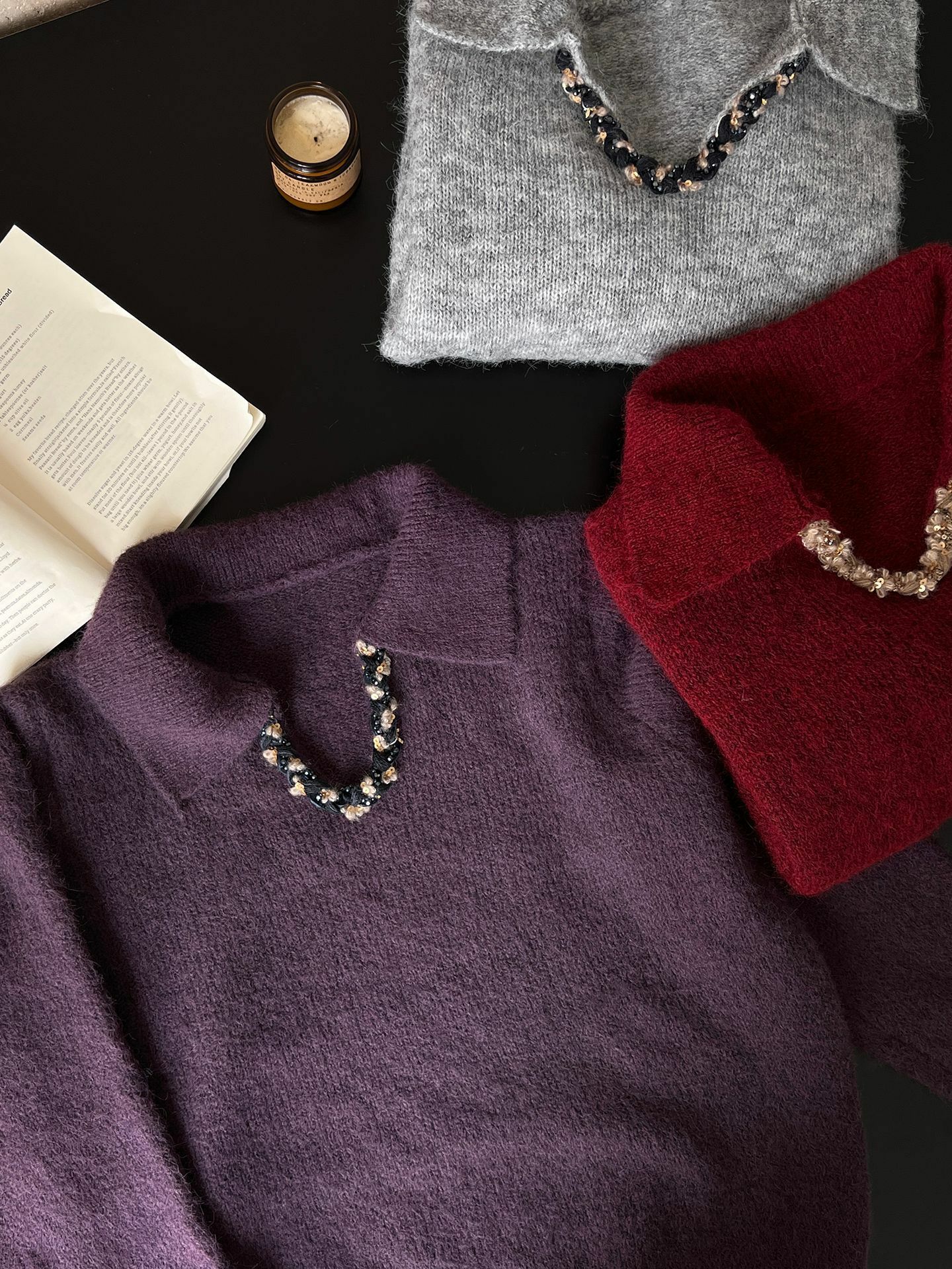 *o-ha-you*【FJZ20497】重工編織翻領毛衣寬鬆慵懶高級感針織衫-3色