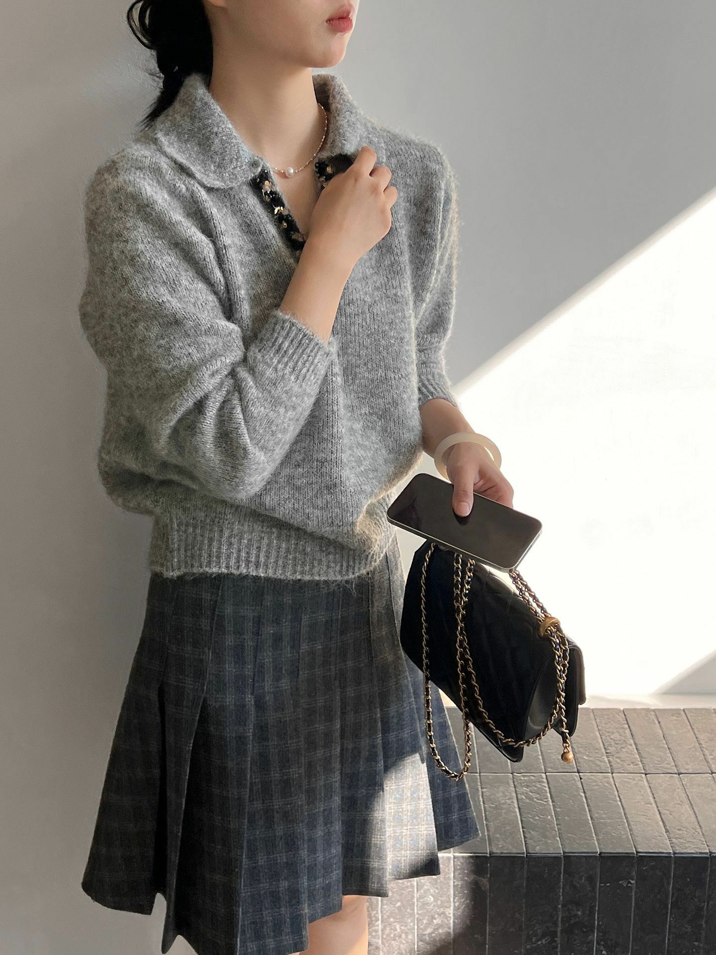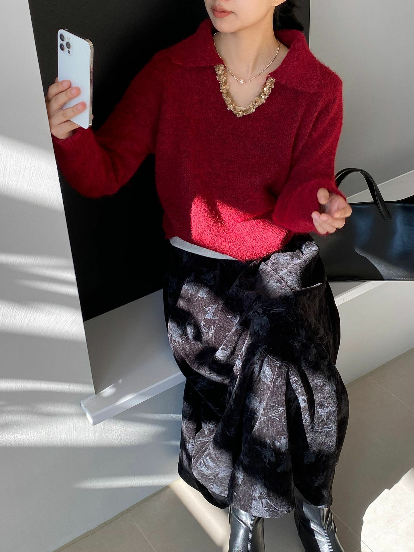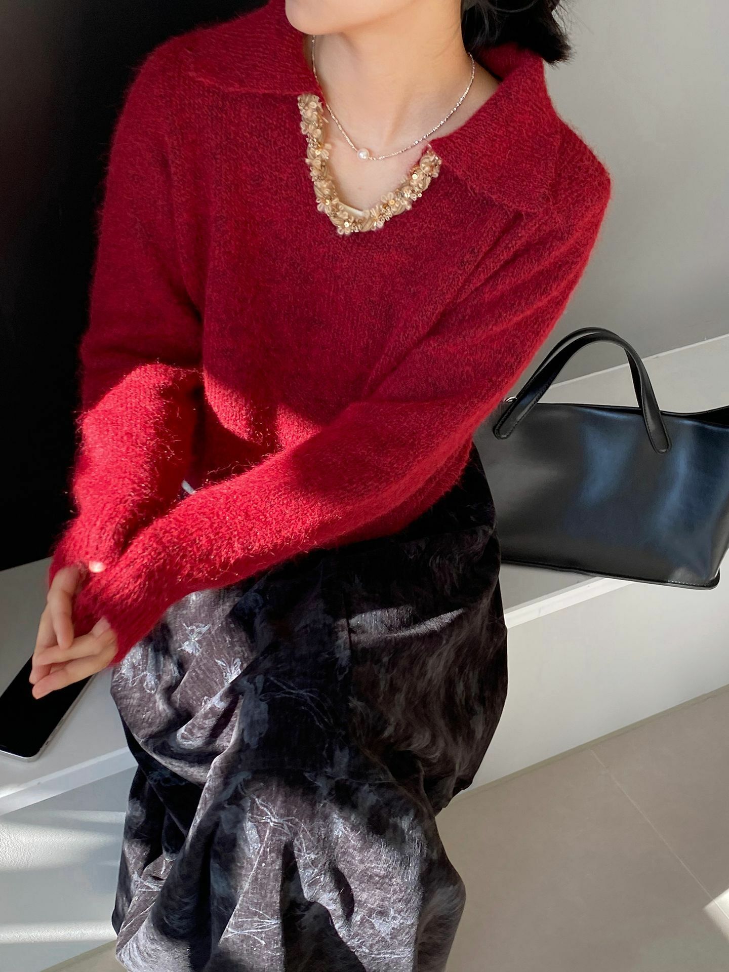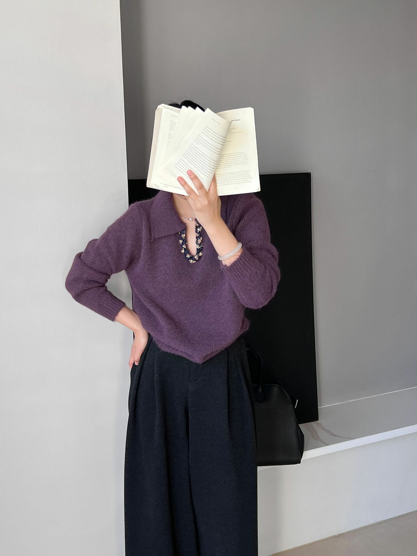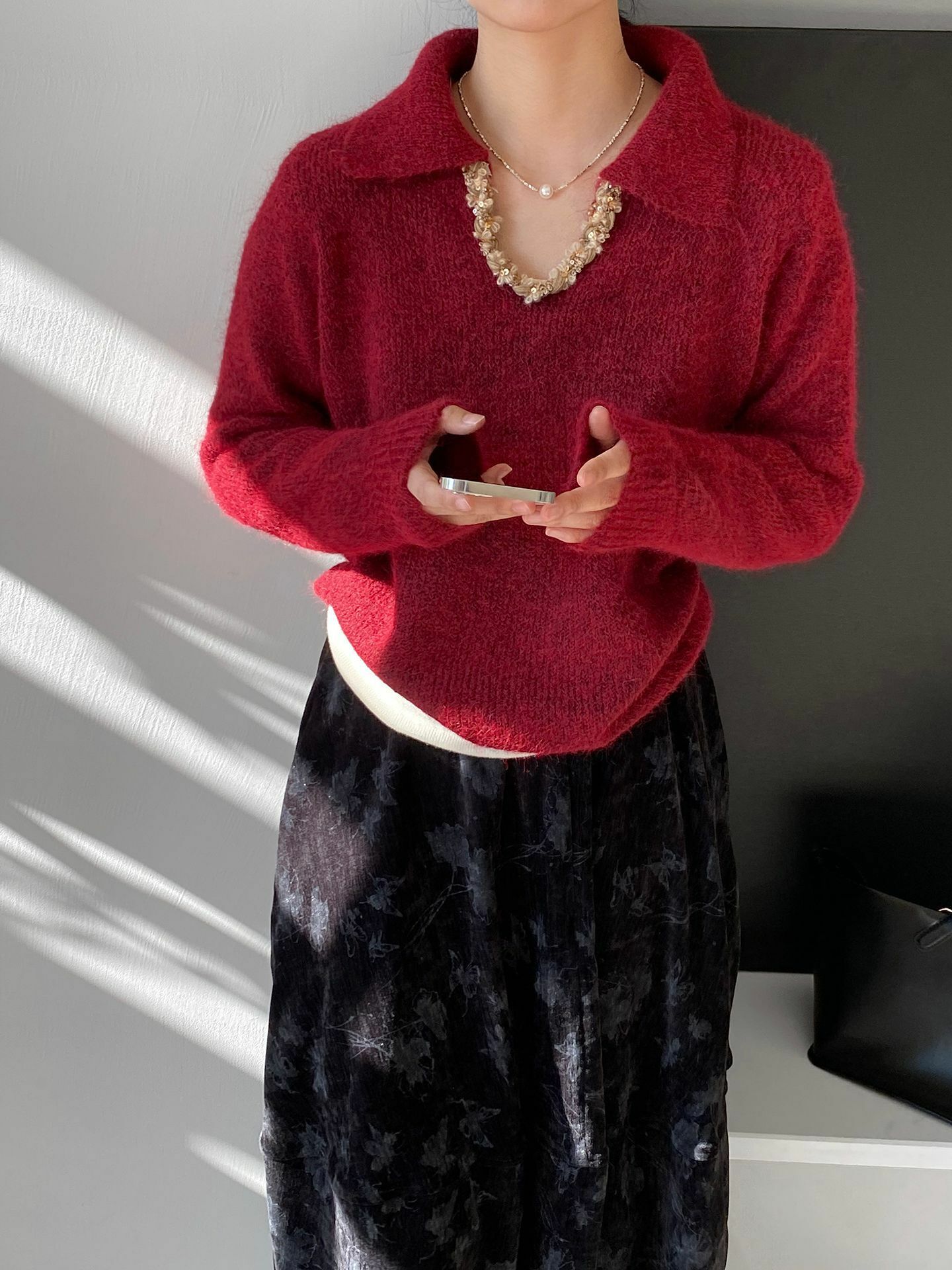 *o-ha-you*【FJZ20497】重工編織翻領毛衣寬鬆慵懶高級感針織衫-3色