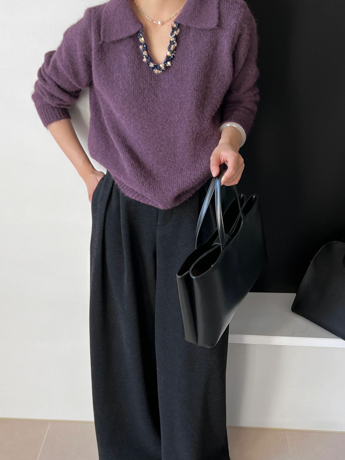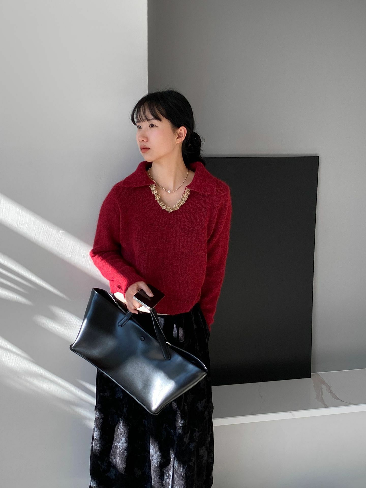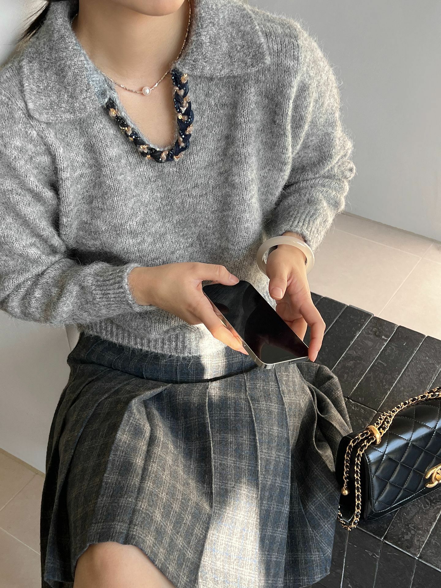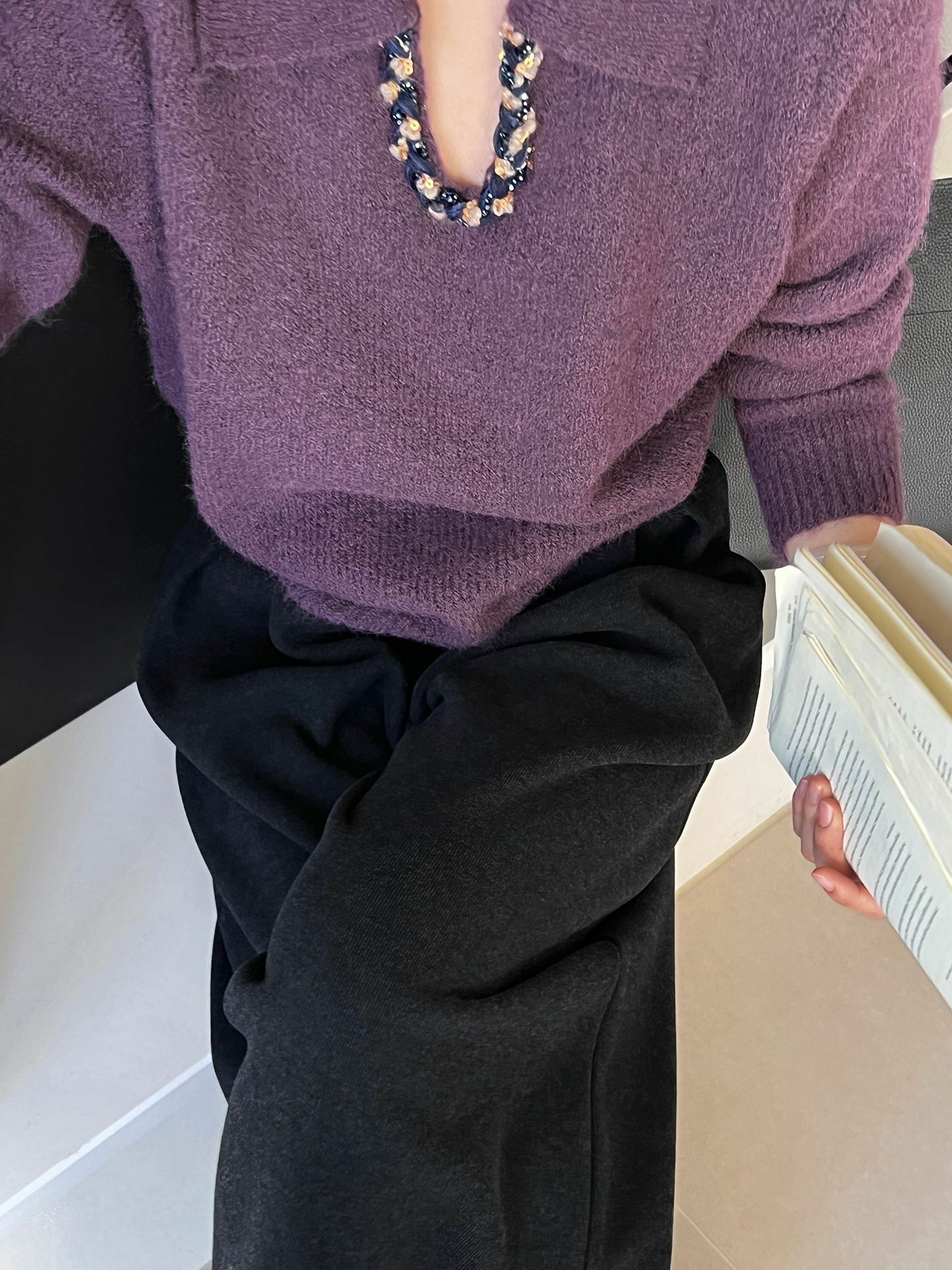 *o-ha-you*【FJZ20497】重工編織翻領毛衣寬鬆慵懶高級感針織衫-3色