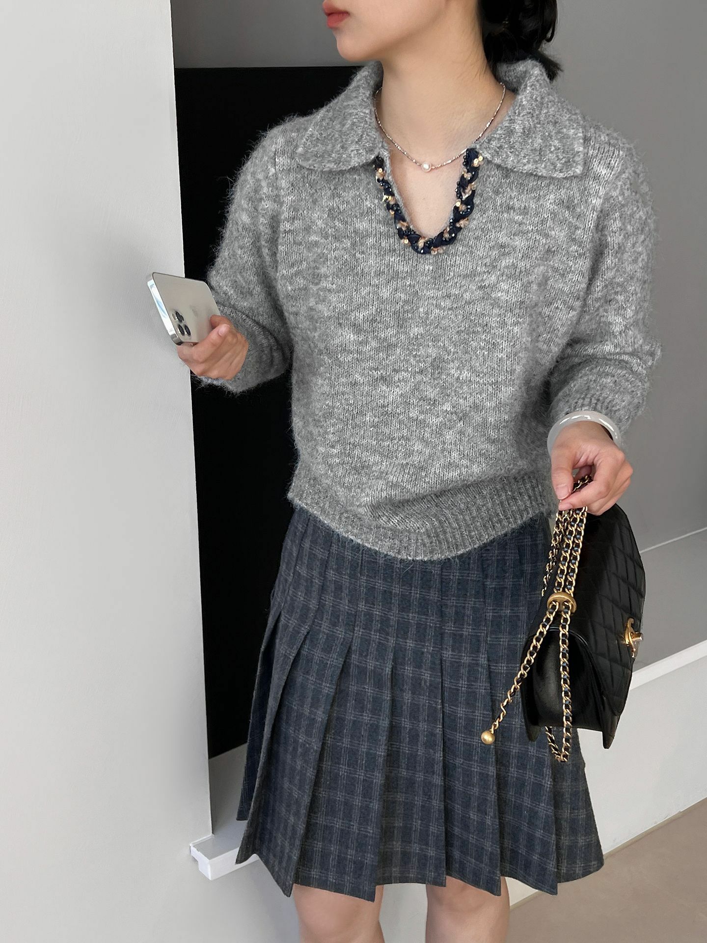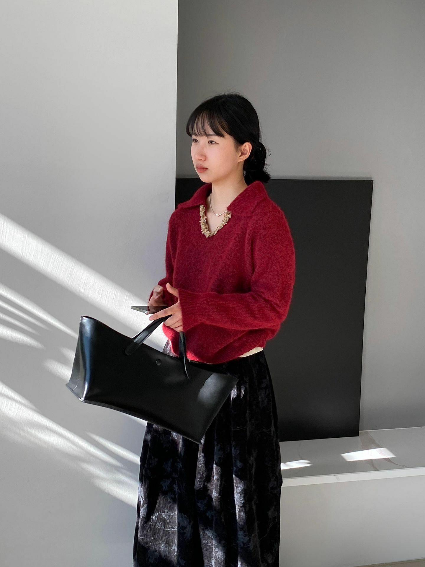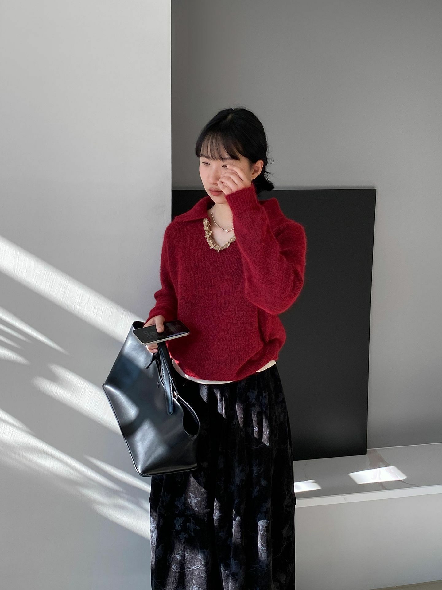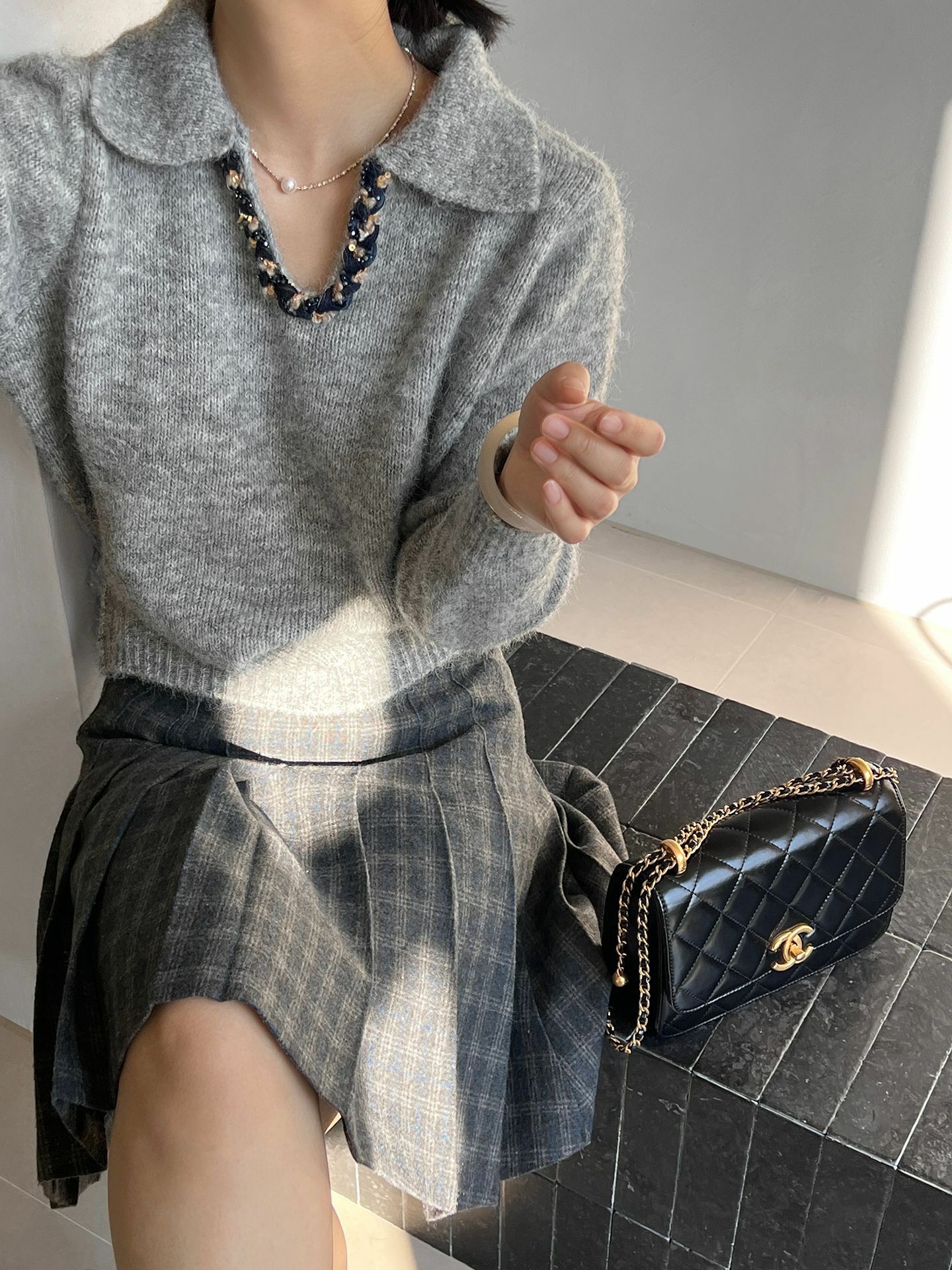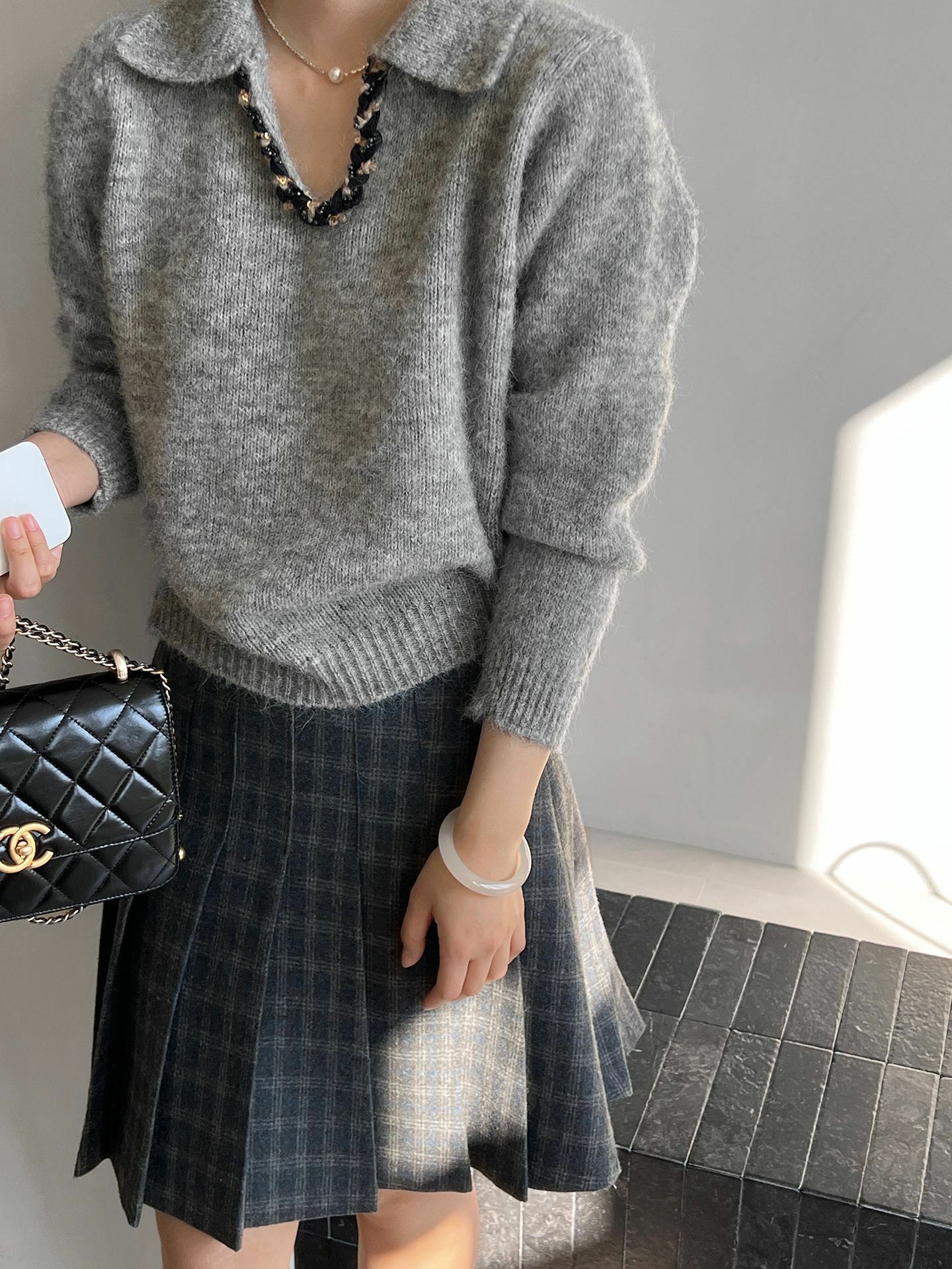 *o-ha-you*【FJZ20497】重工編織翻領毛衣寬鬆慵懶高級感針織衫-3色