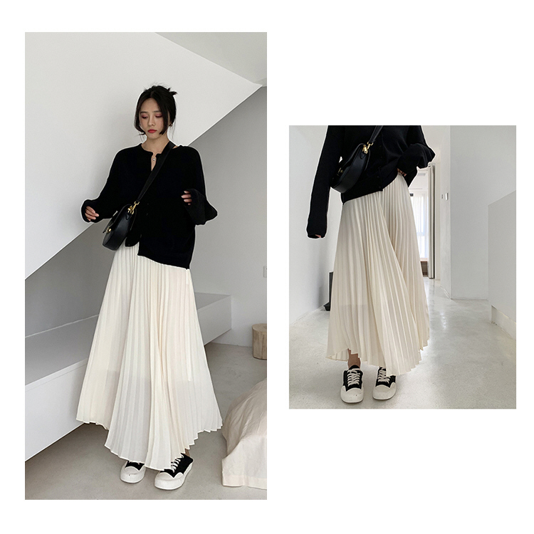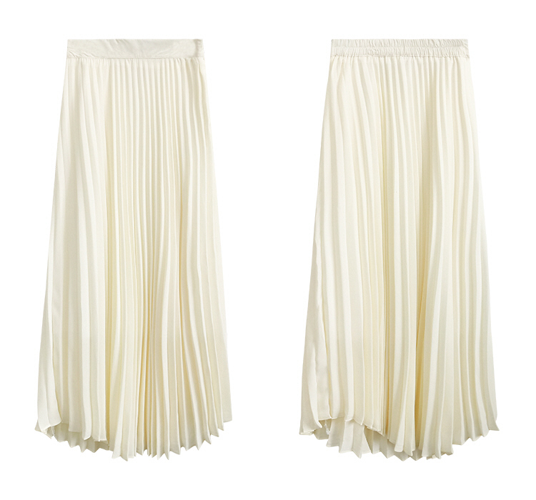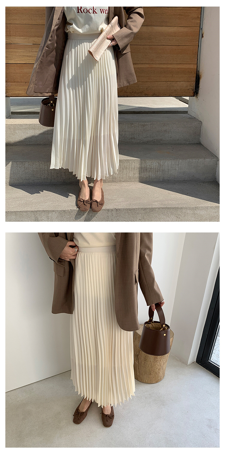 *o-ha-you*【FLC0002】百褶半身裙春季高腰顯瘦杏白色氣質A字裙百褶裙長裙-L號現貨