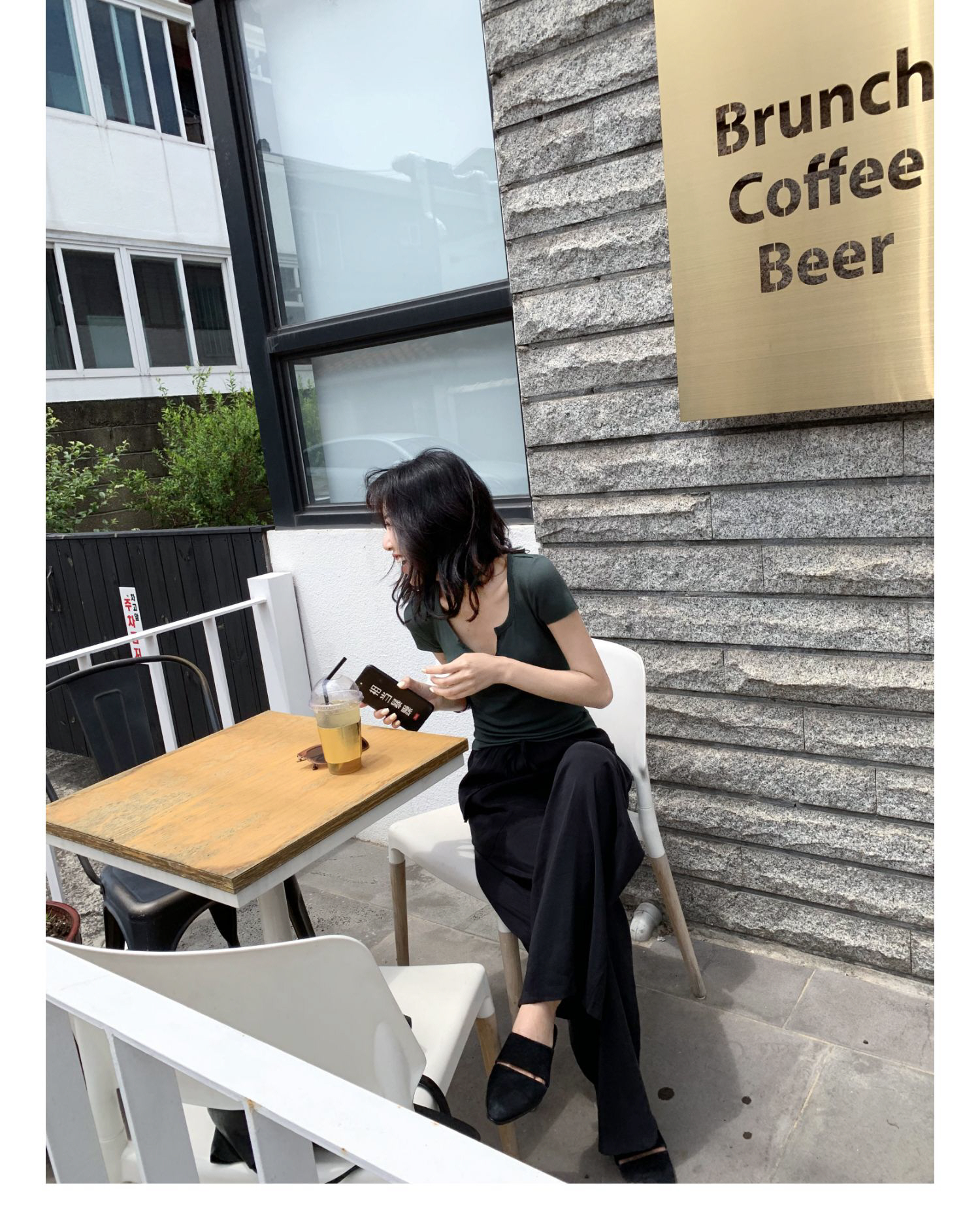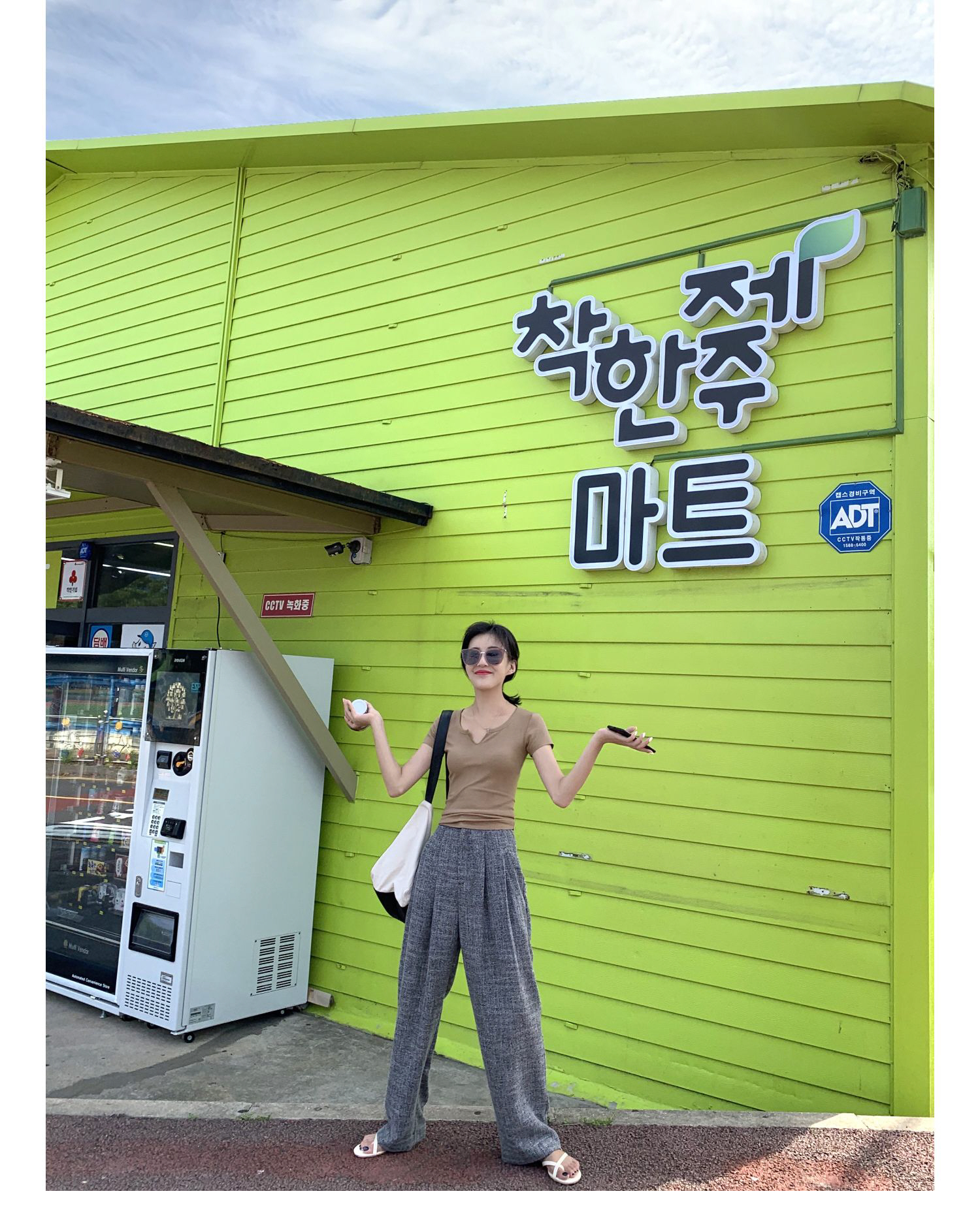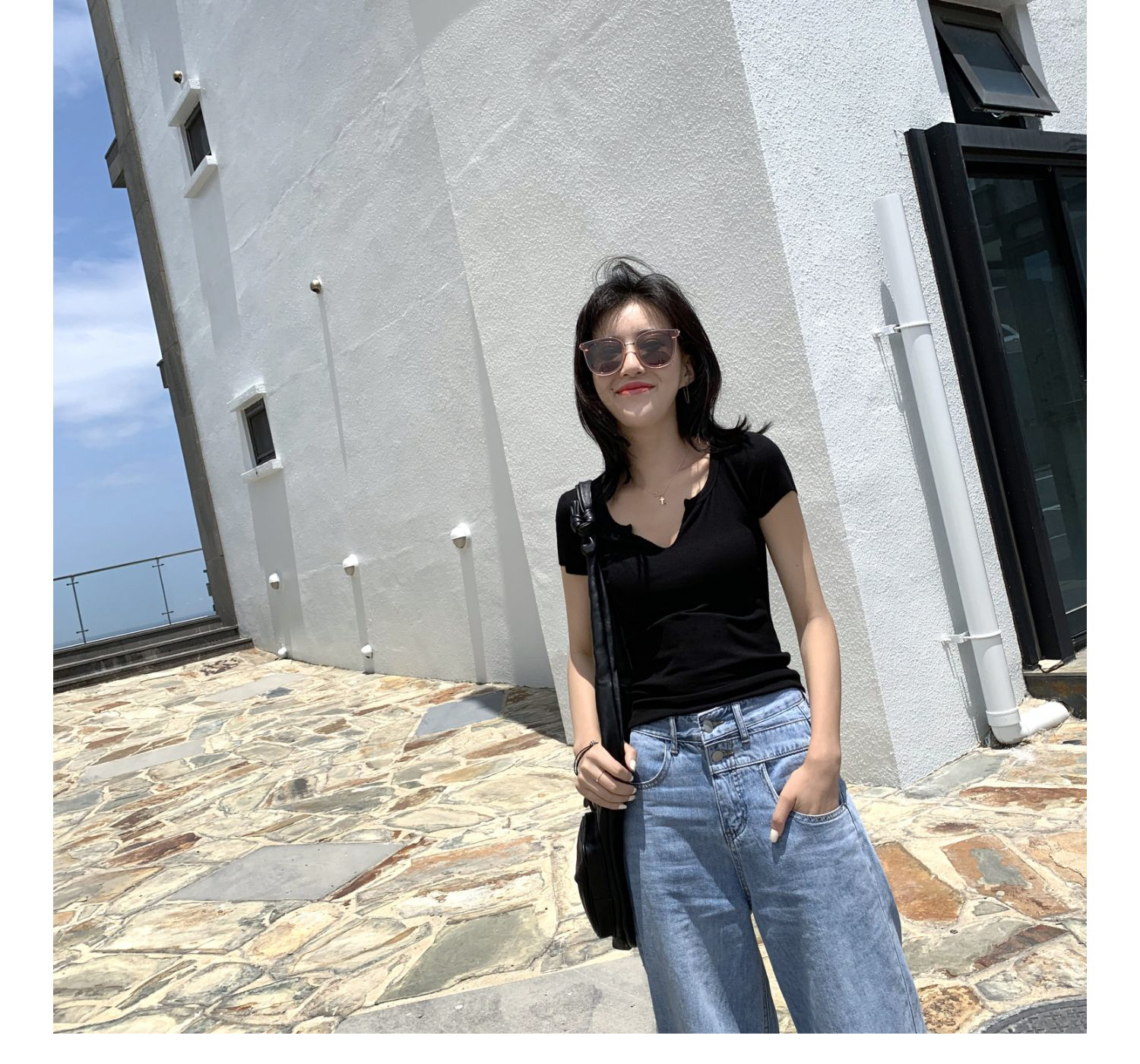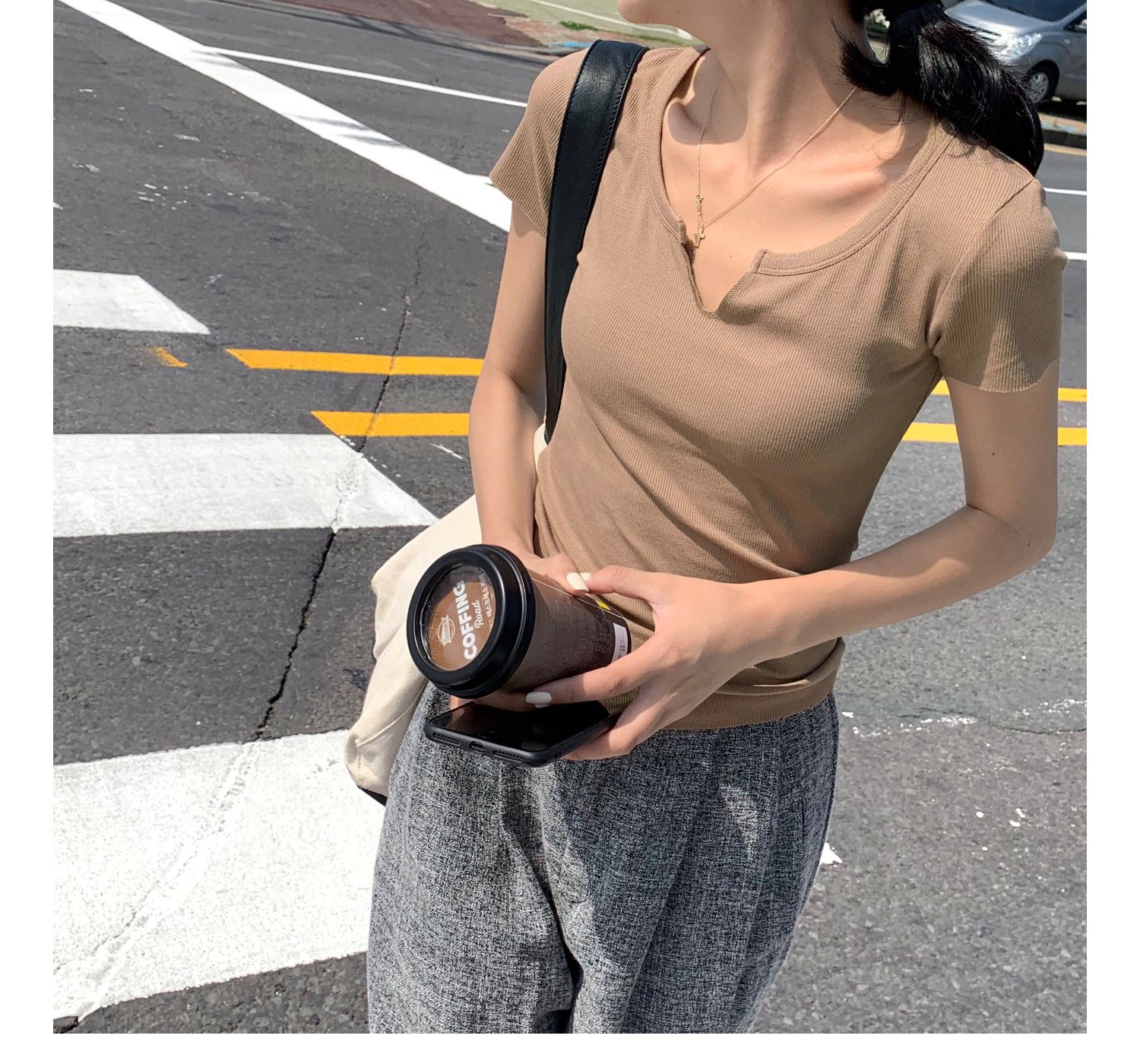 *o-ha-you*【FLCT0063】極簡慵懶!薄款修身V領短袖T恤韓版夏季百搭休閒顯瘦上衣(推薦自留款)-5色