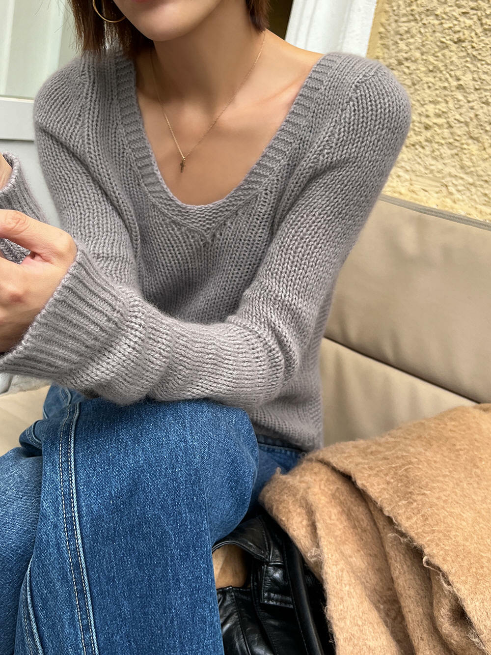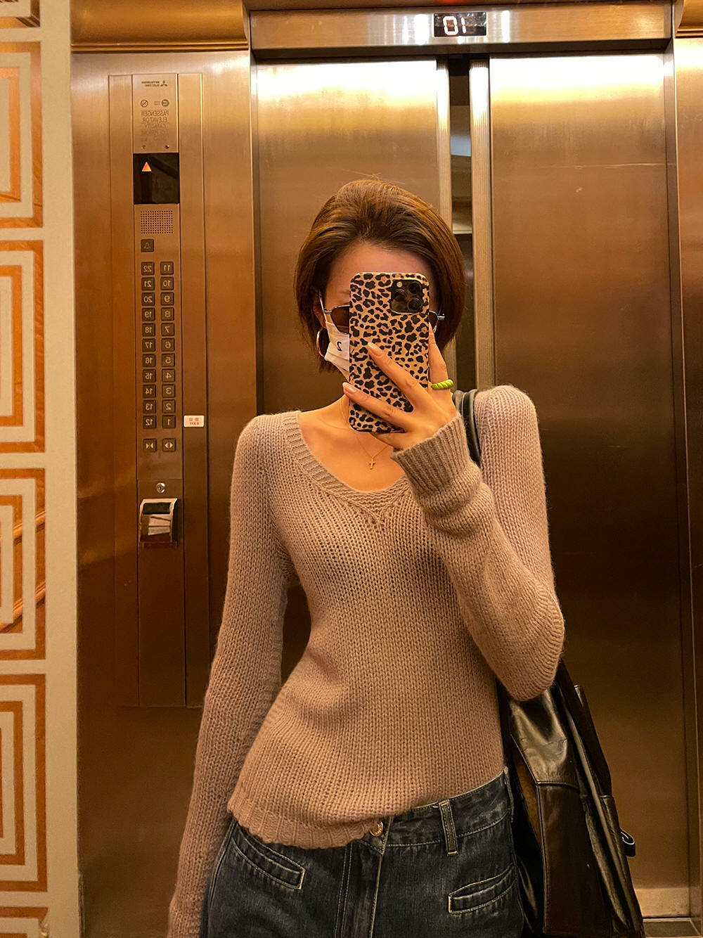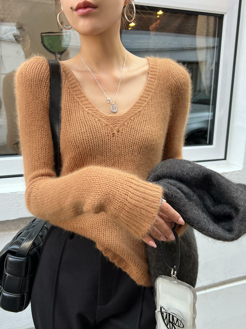 *o-ha-you*【FLCT1158】打底衫2022新款爆款秋冬內搭針織衫高級感V領別緻上衣短款毛衣-2色