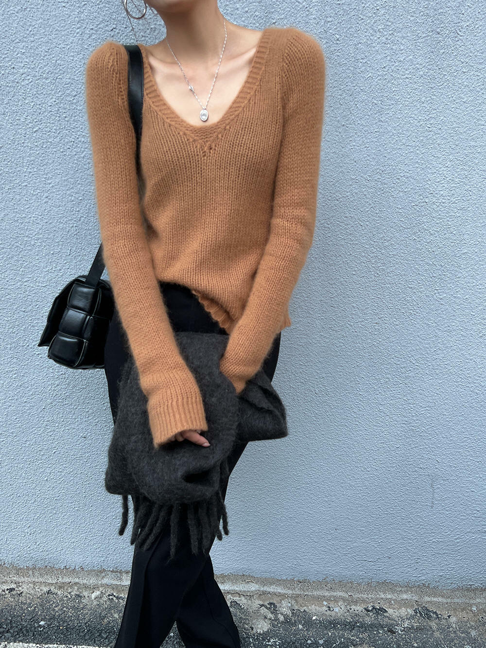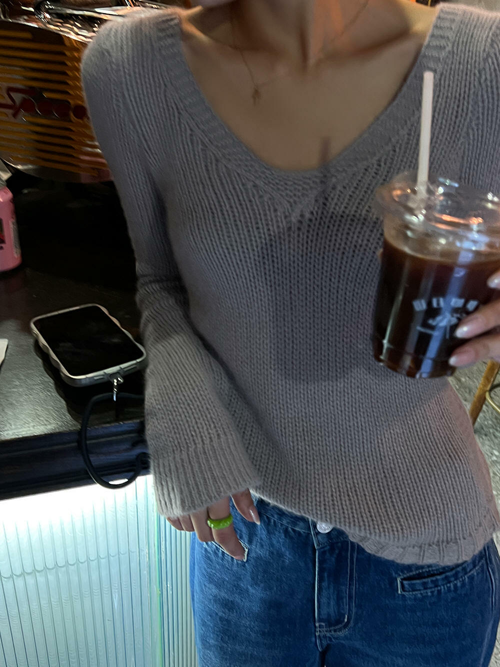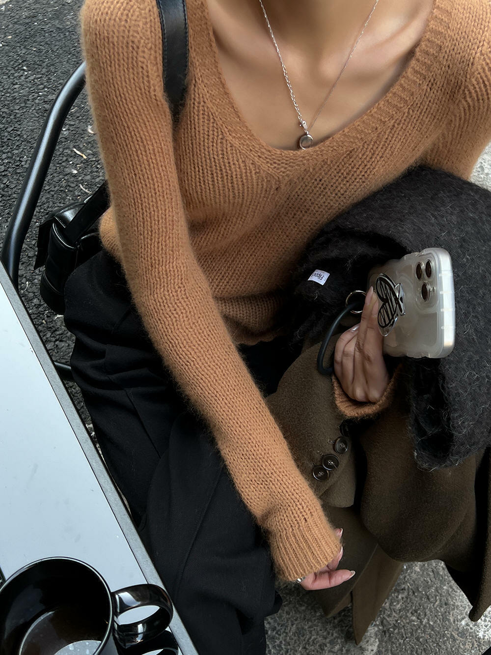 *o-ha-you*【FLCT1158】打底衫2022新款爆款秋冬內搭針織衫高級感V領別緻上衣短款毛衣-2色