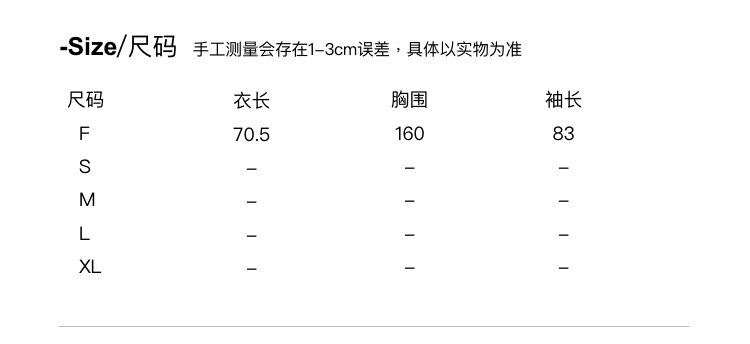 衣長/肩寬/袖長為平量,其他為一圈(單位:公分)