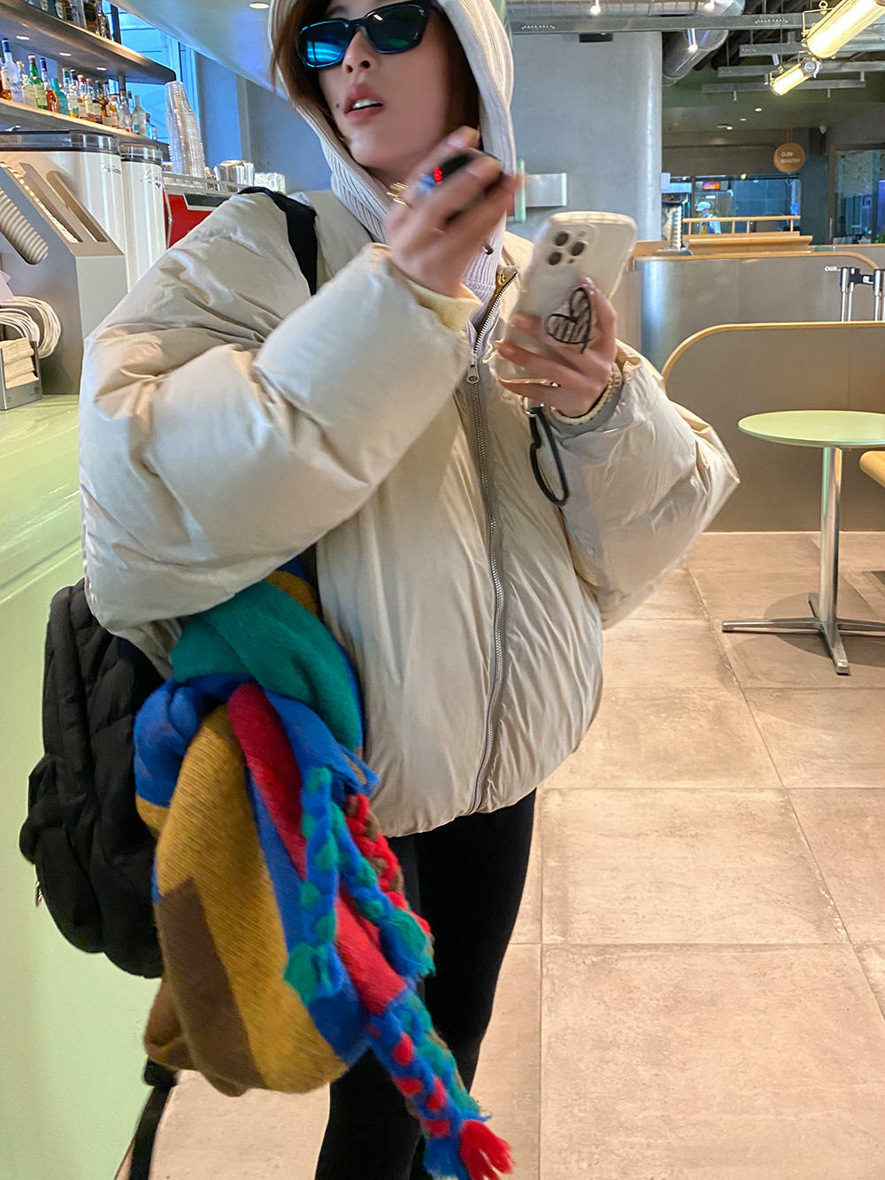 *o-ha-you*【FLCT1176】短款羽絨服冬季2022新款爆款寬鬆保暖加厚時尚麵包白鴨絨外套-2色