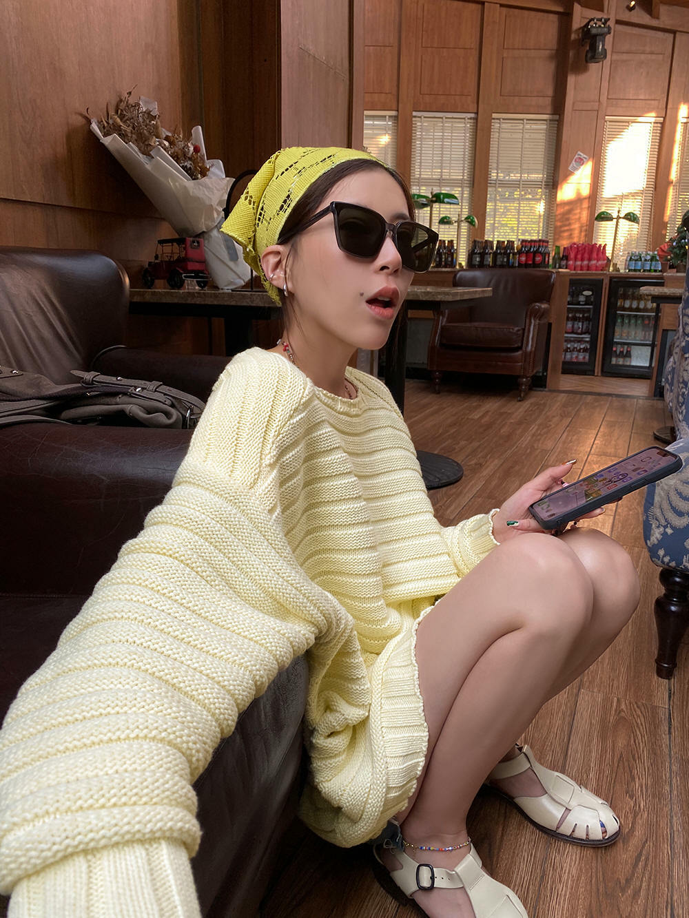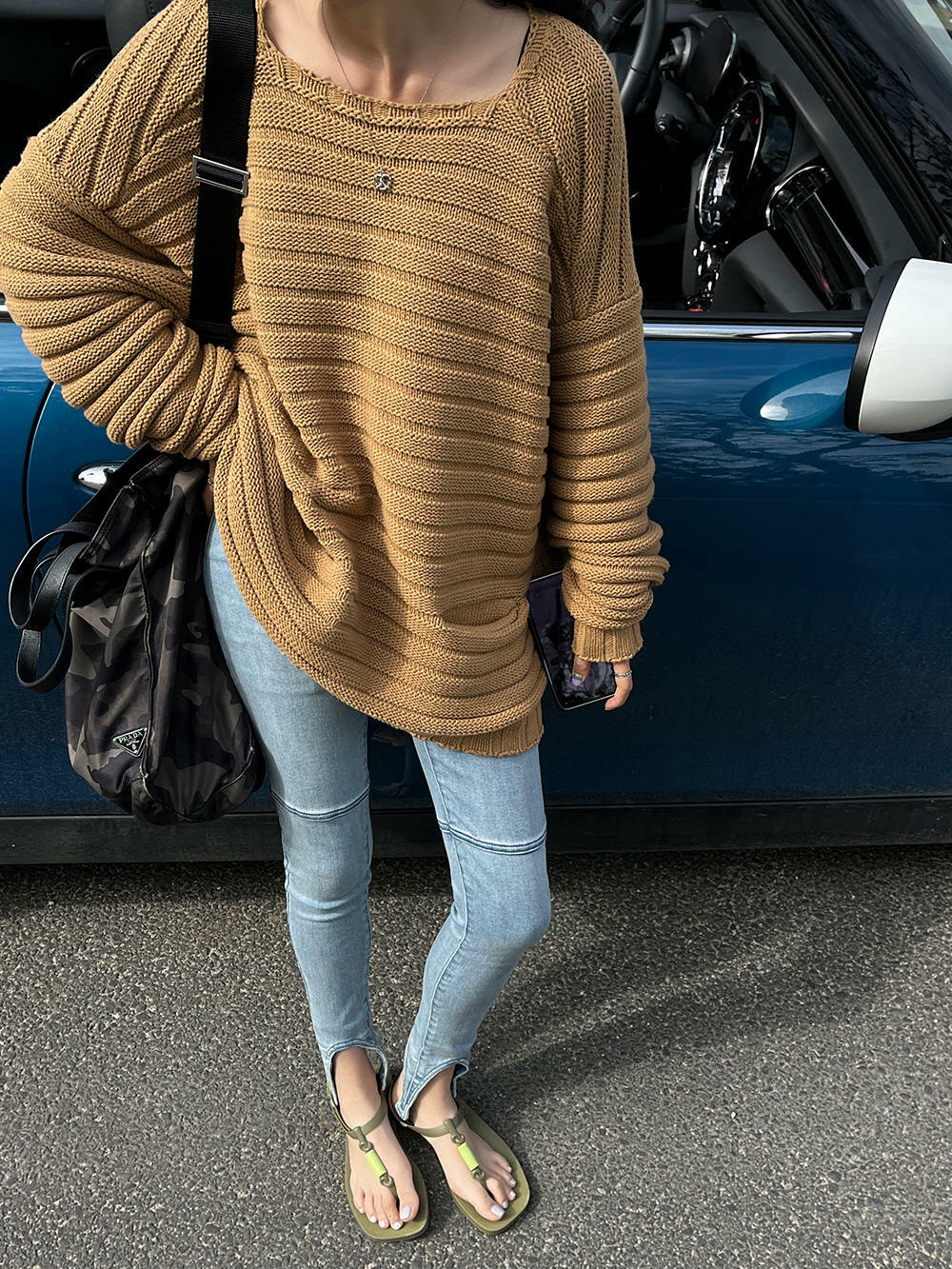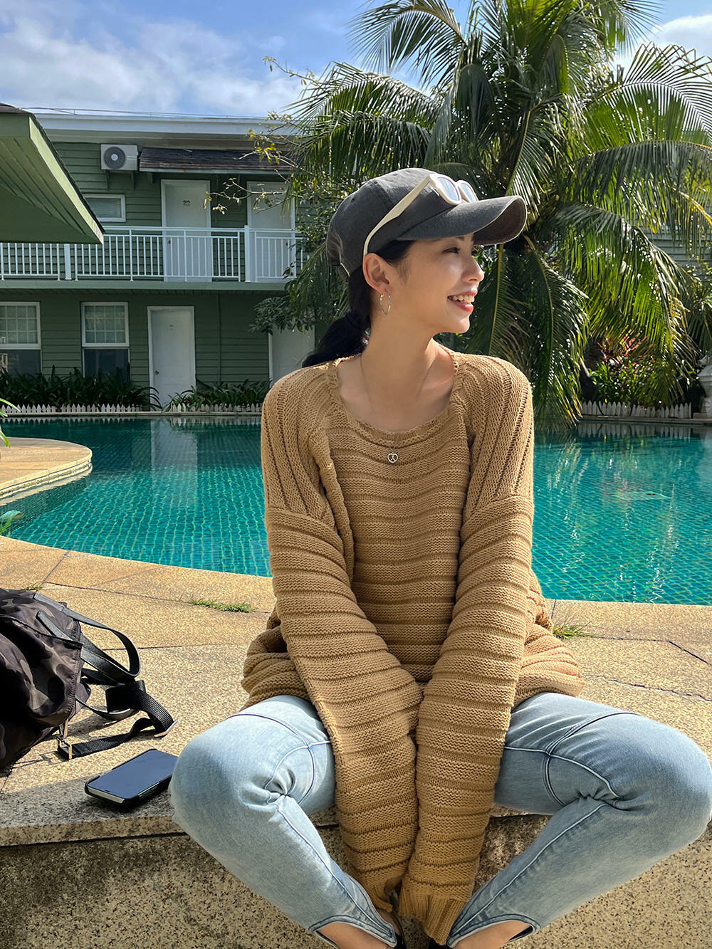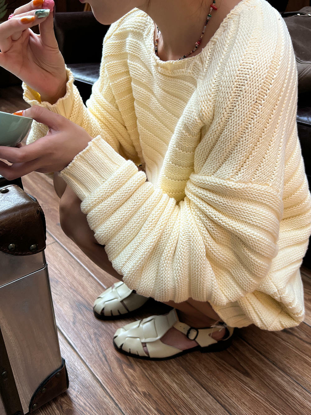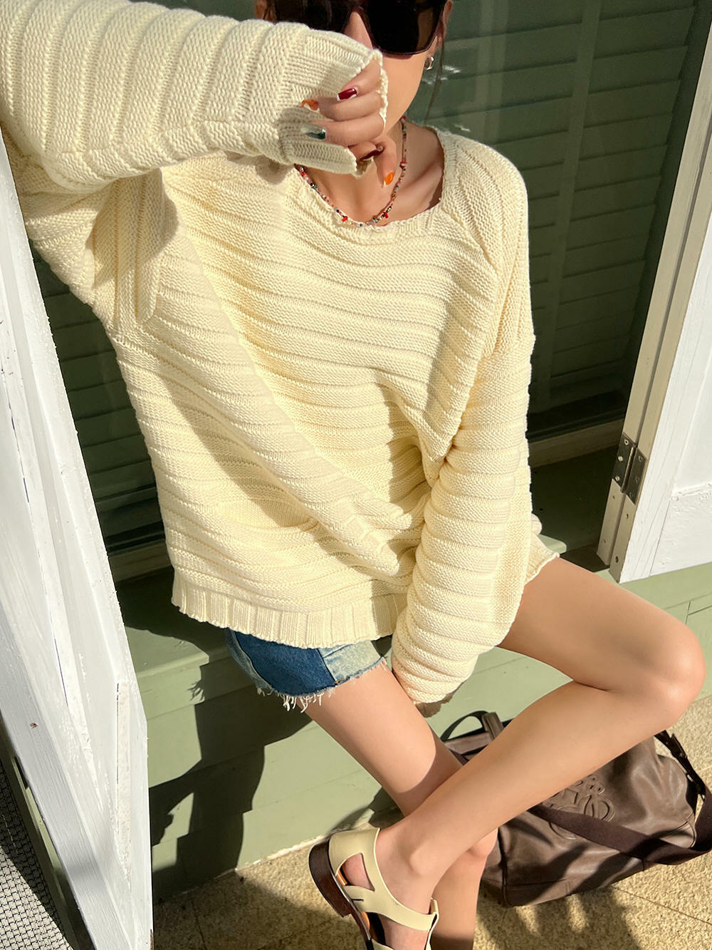 *o-ha-you*【FLCT1269】方領坑條毛衣早春2023新款洋氣氣質寬鬆慵懶風長袖上衣針織衫-2色