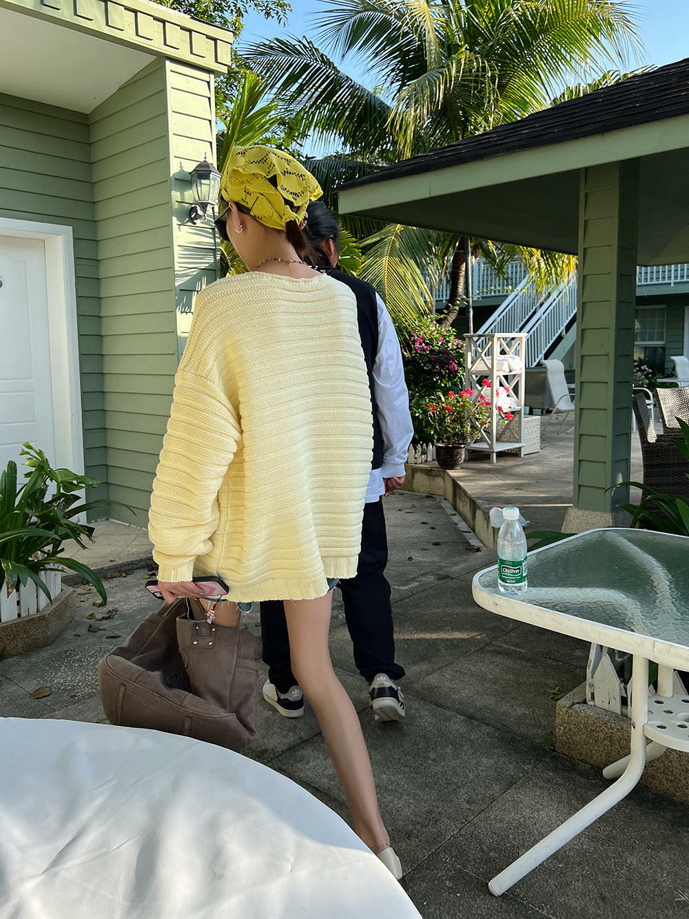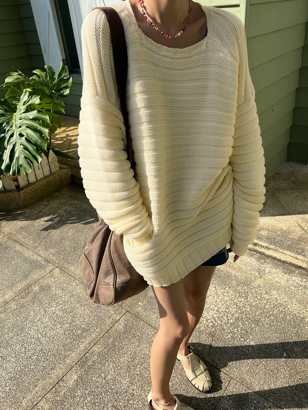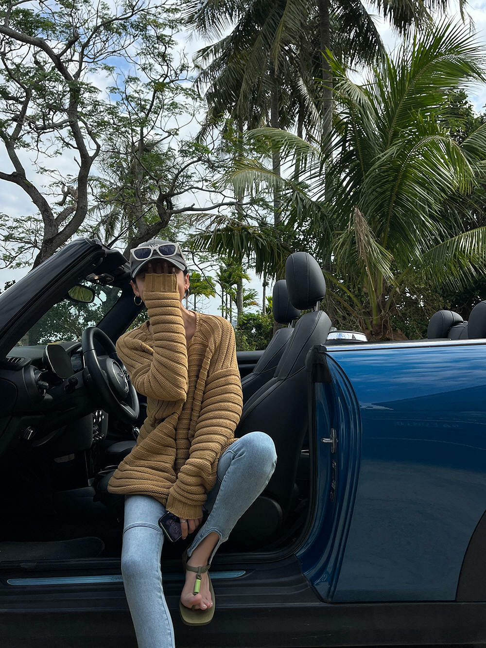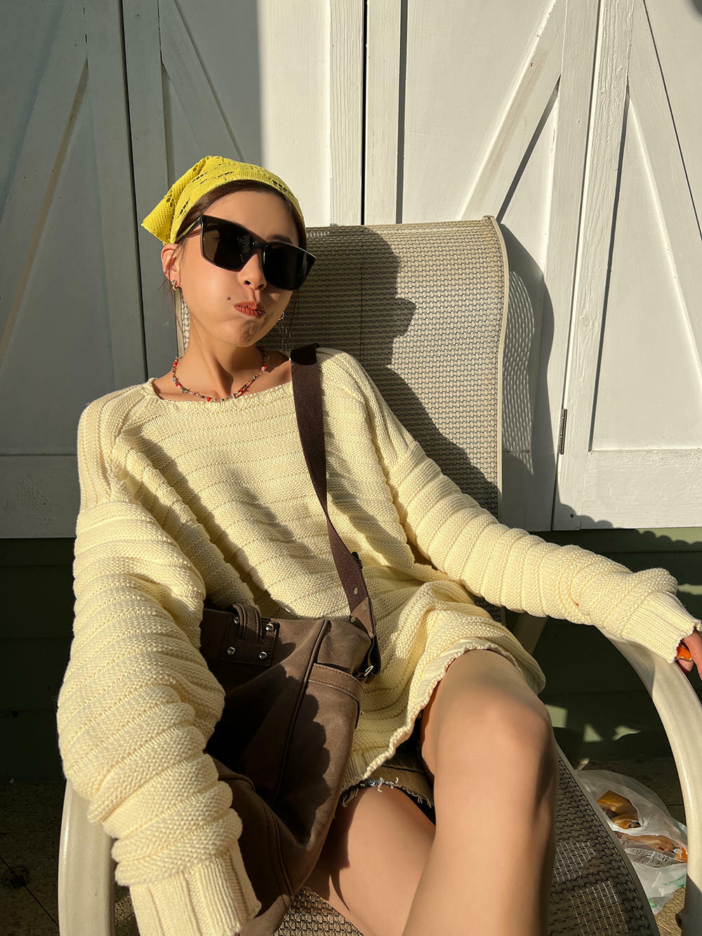 *o-ha-you*【FLCT1269】方領坑條毛衣早春2023新款洋氣氣質寬鬆慵懶風長袖上衣針織衫-2色