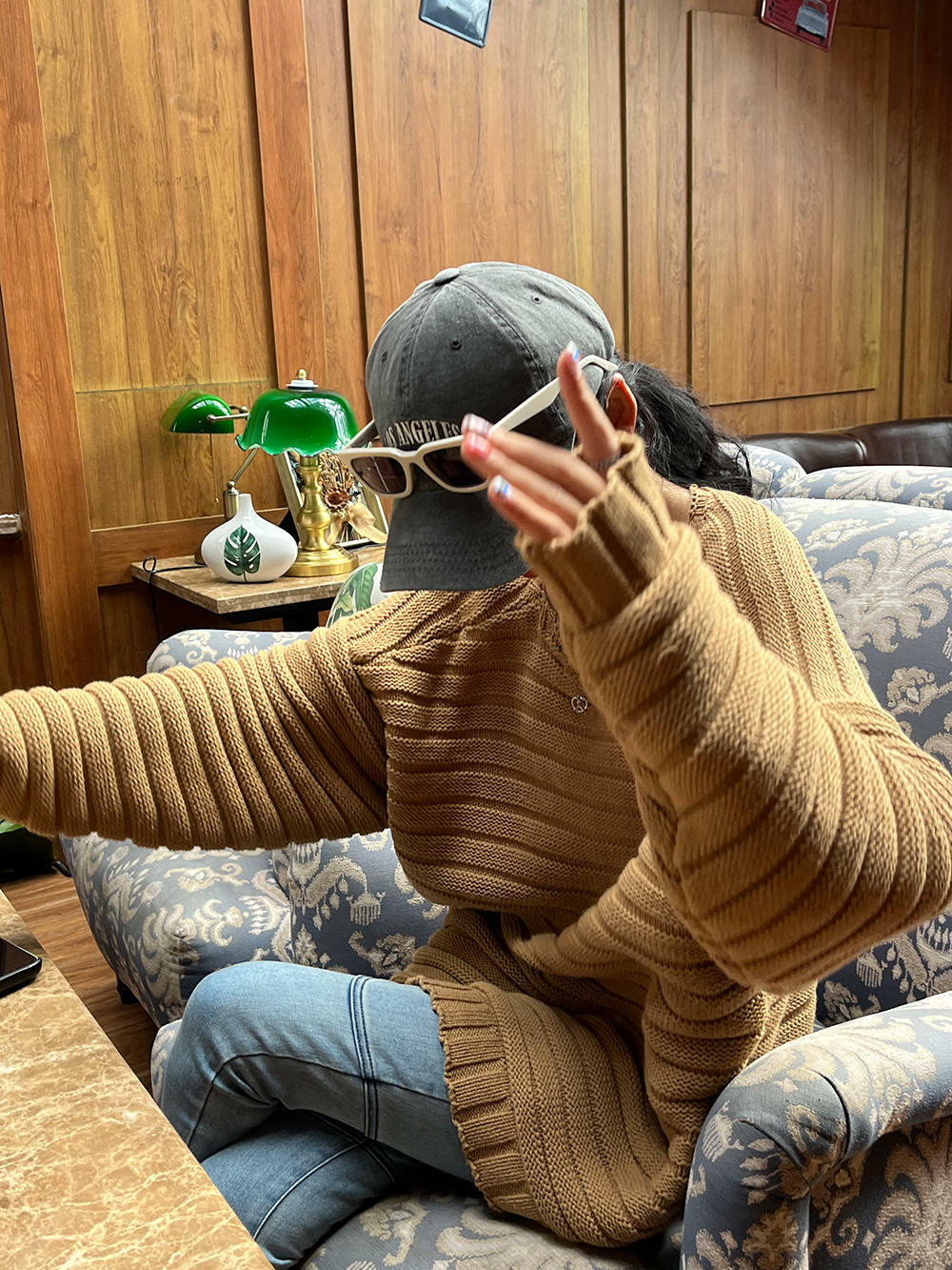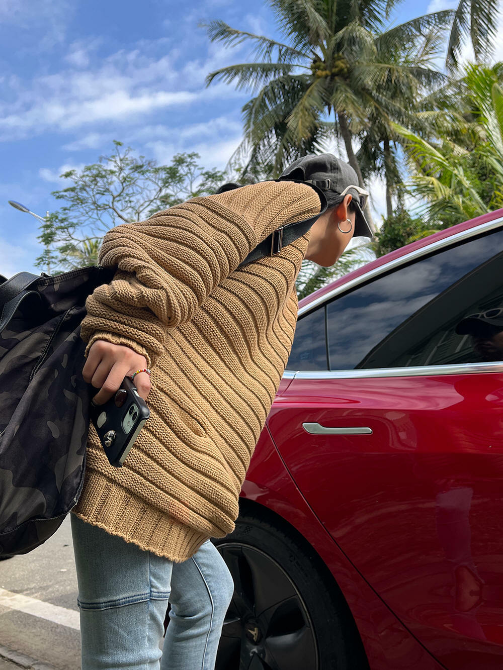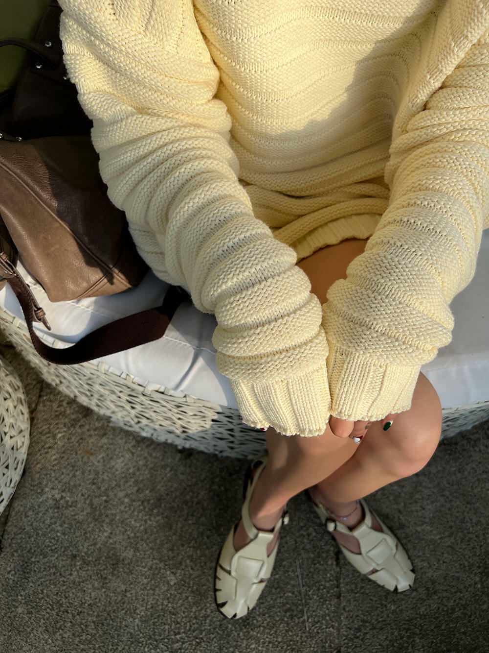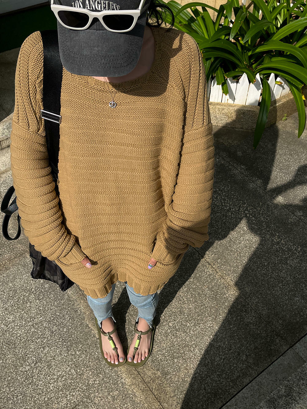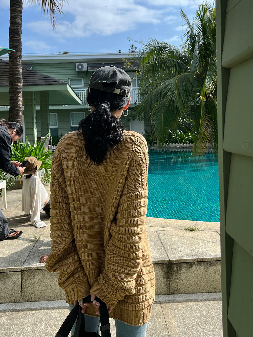 *o-ha-you*【FLCT1269】方領坑條毛衣早春2023新款洋氣氣質寬鬆慵懶風長袖上衣針織衫-2色