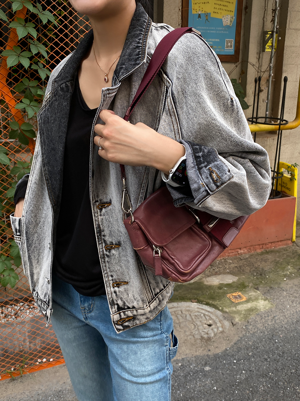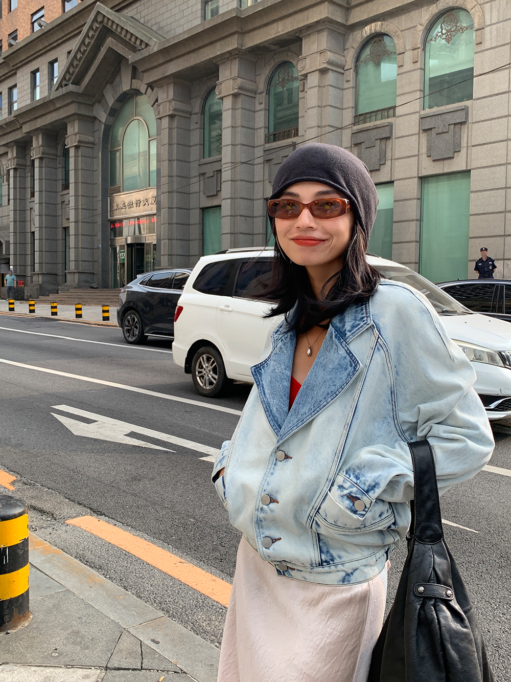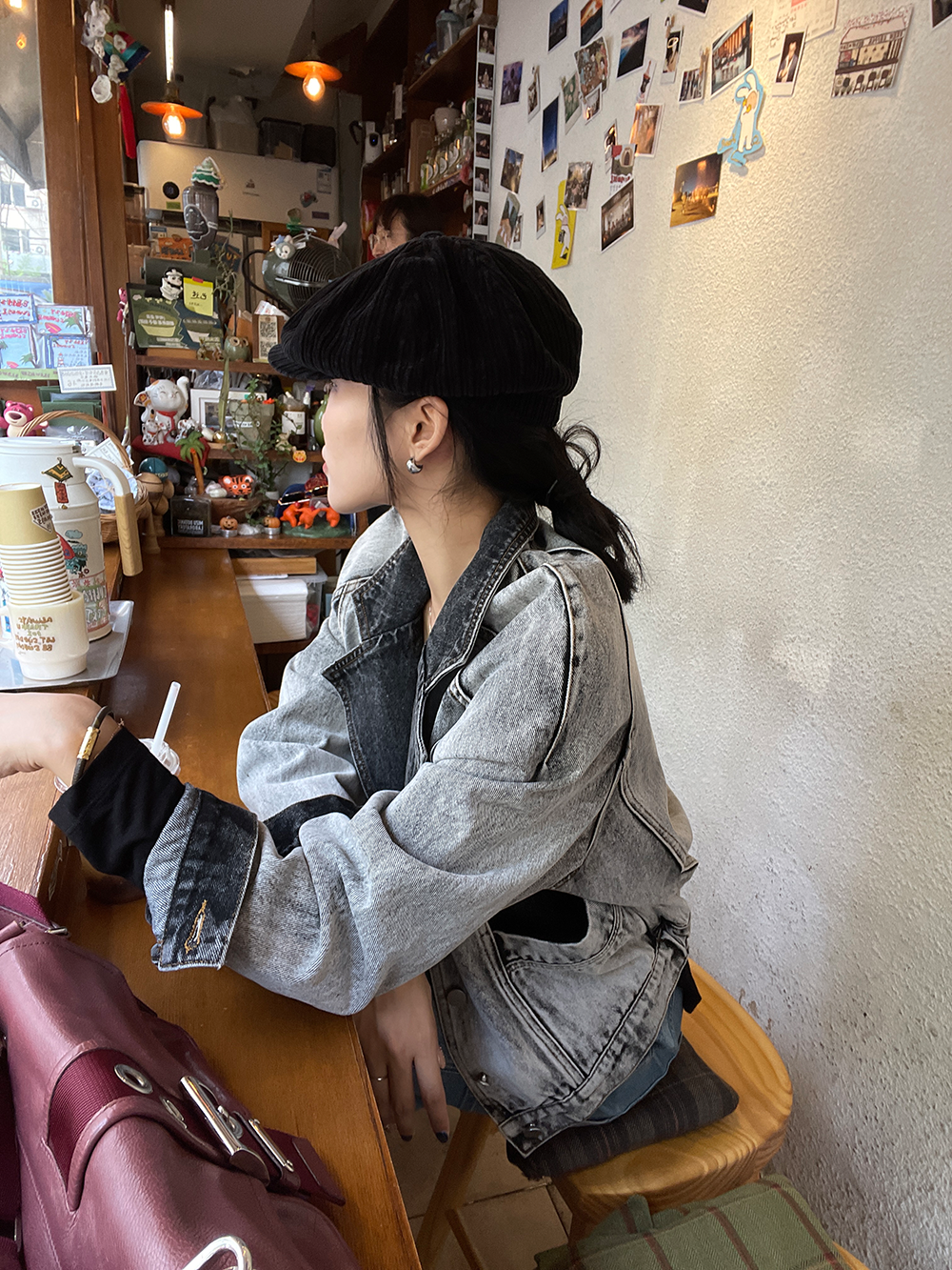 *o-ha-you*【FLCT1636】復古水洗做舊牛仔外套秋季新款拼色西裝領寬鬆休閒長袖機車夾克-2色