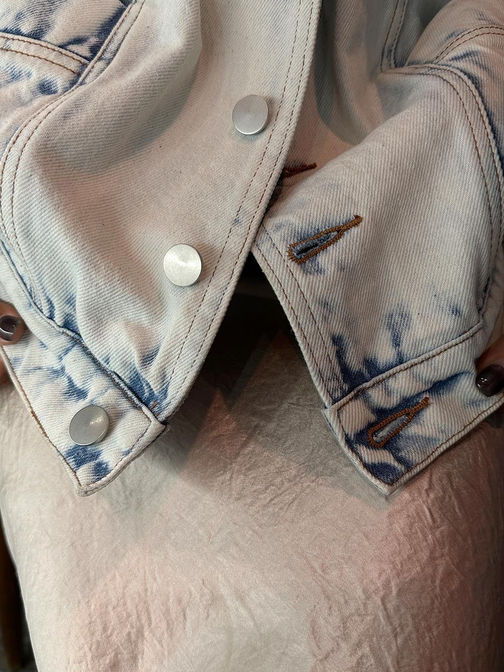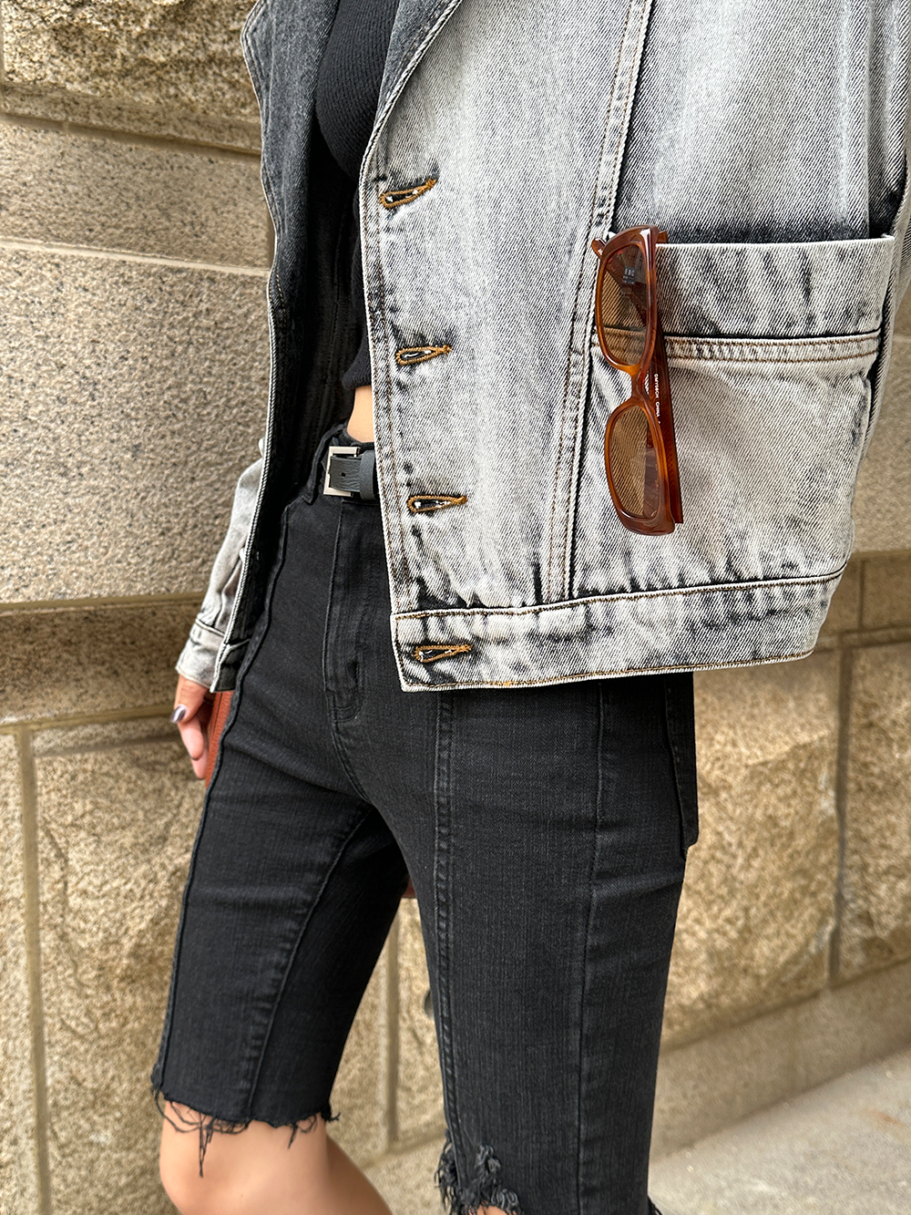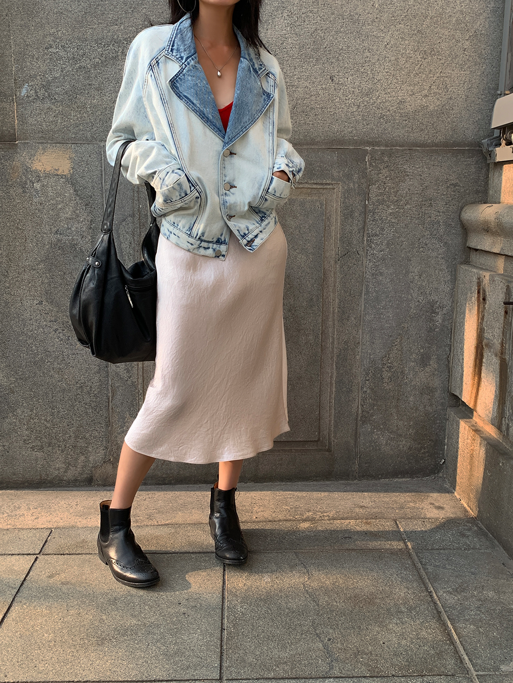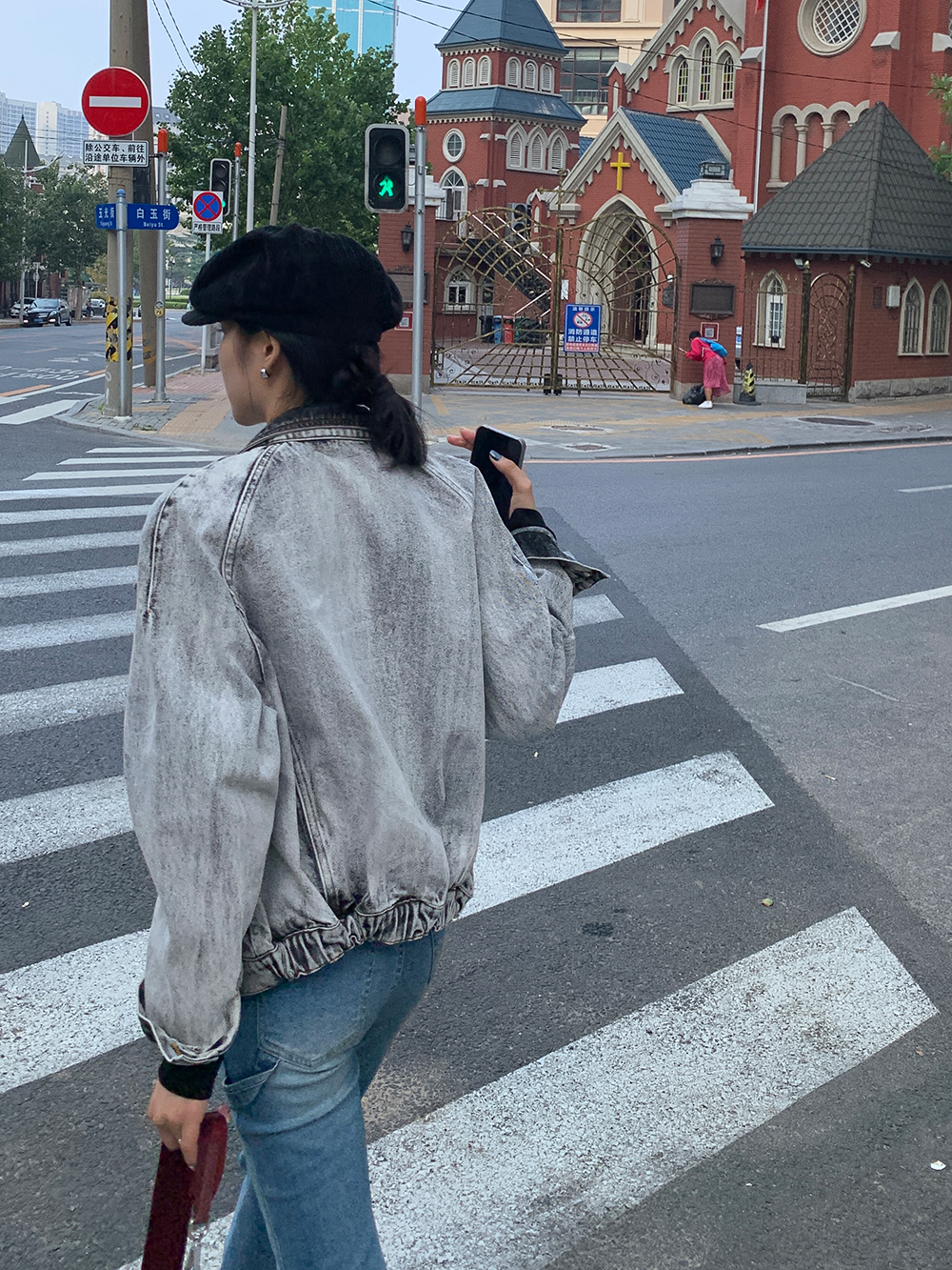 *o-ha-you*【FLCT1636】復古水洗做舊牛仔外套秋季新款拼色西裝領寬鬆休閒長袖機車夾克-2色