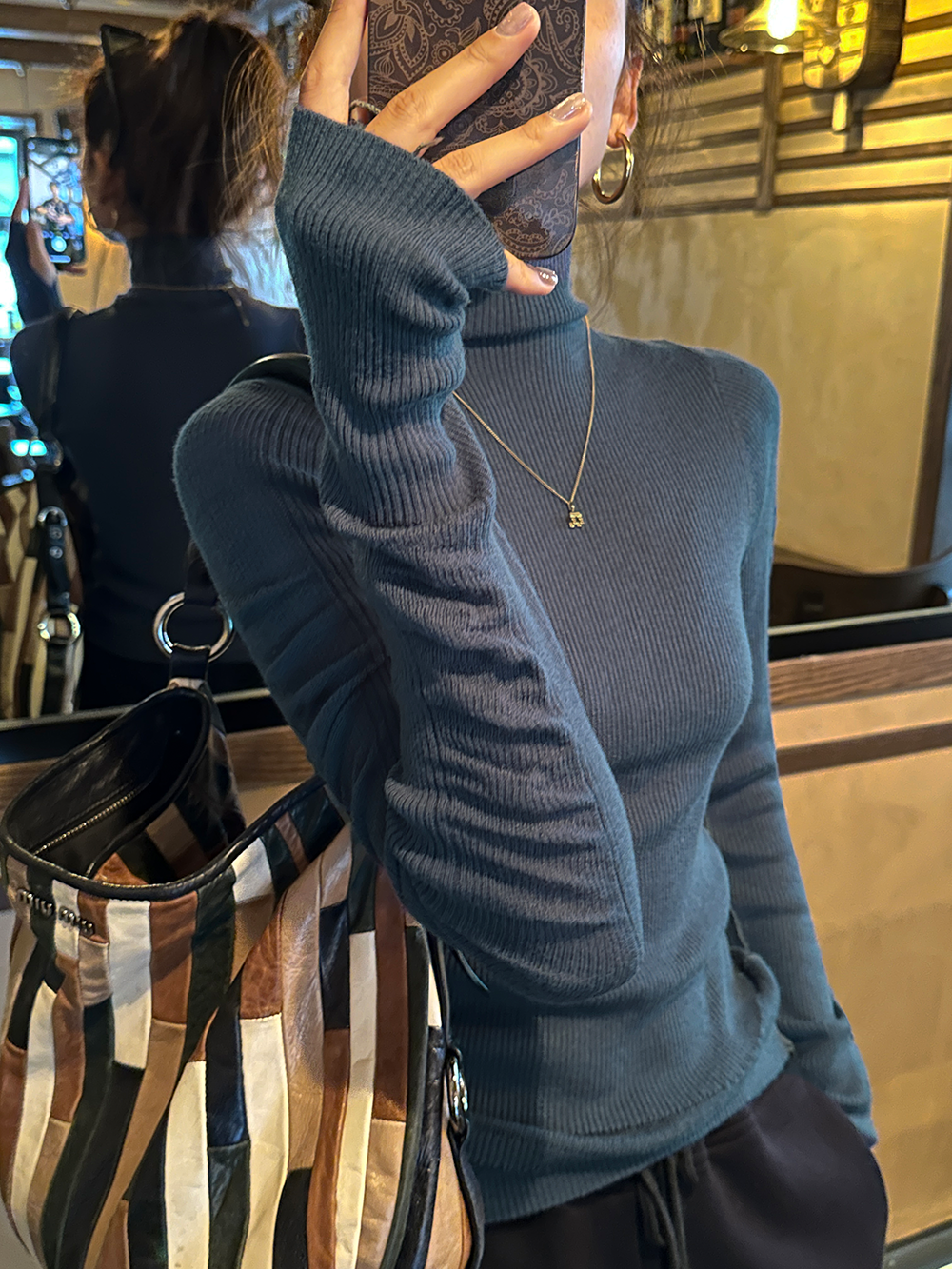 *o-ha-you*【FLCT1716】高領針織衫2023年新秋季緊身長袖上衣冬季洋氣修身內搭打底衫-2色-如有需要請先諮詢