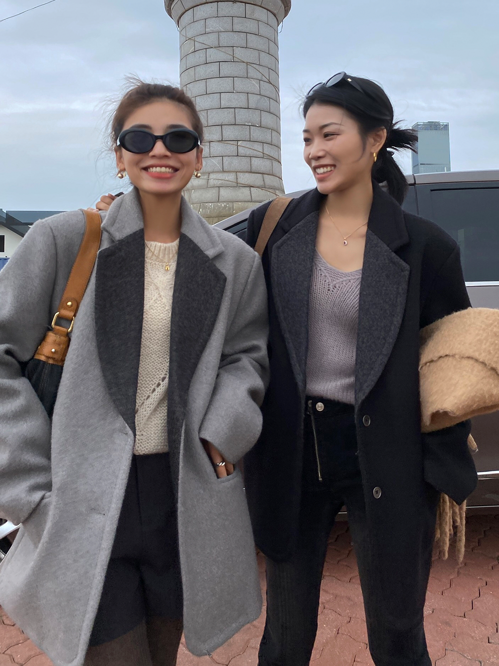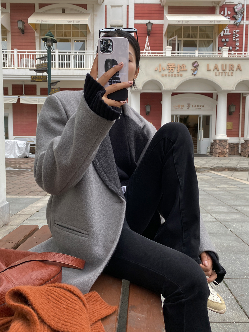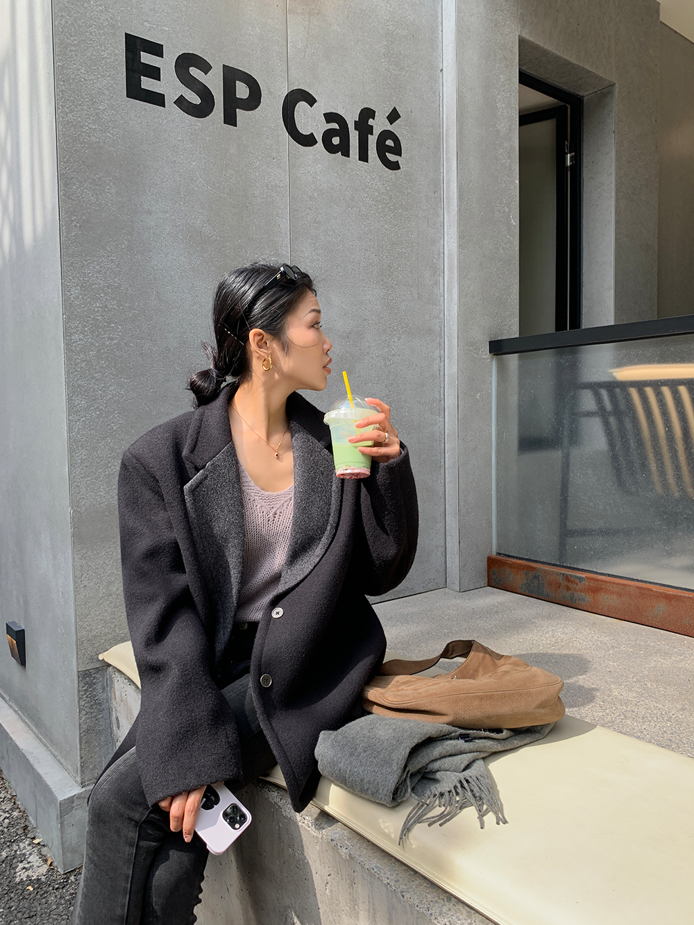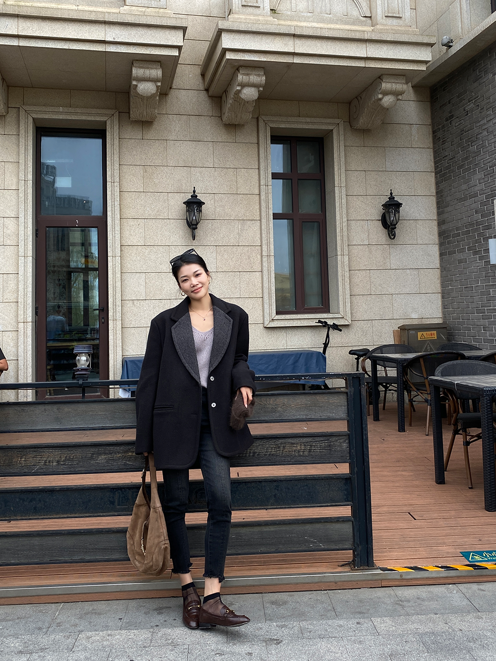*o-ha-you*【FLCT1719】復古毛呢西裝外套2023新款冬季寬鬆輪廓氣質高級感呢子西服-2色