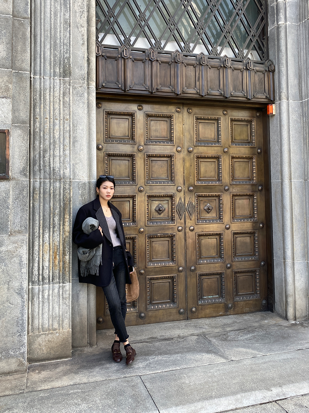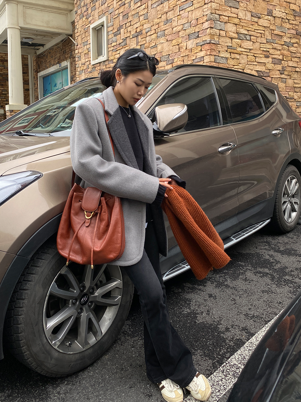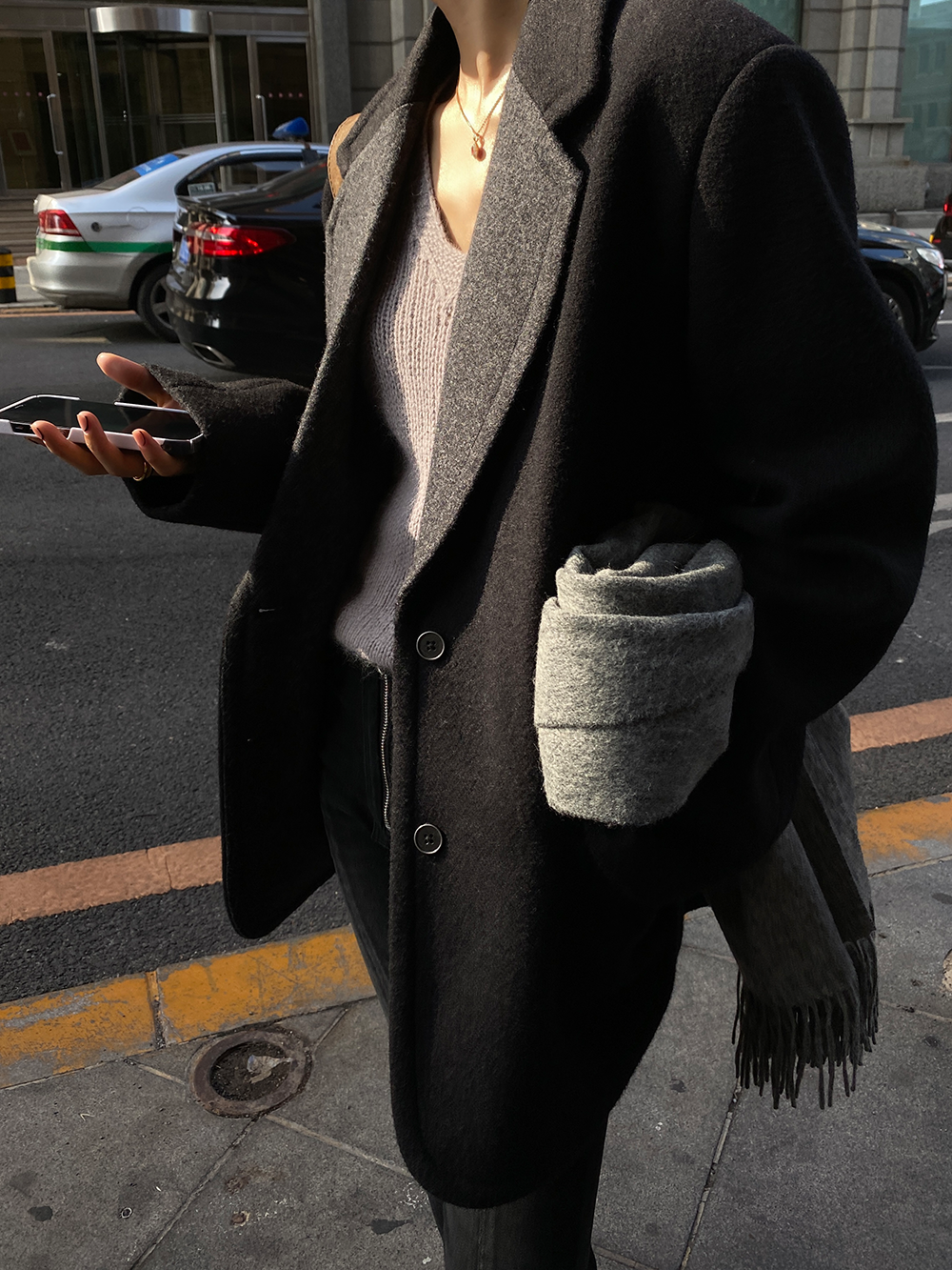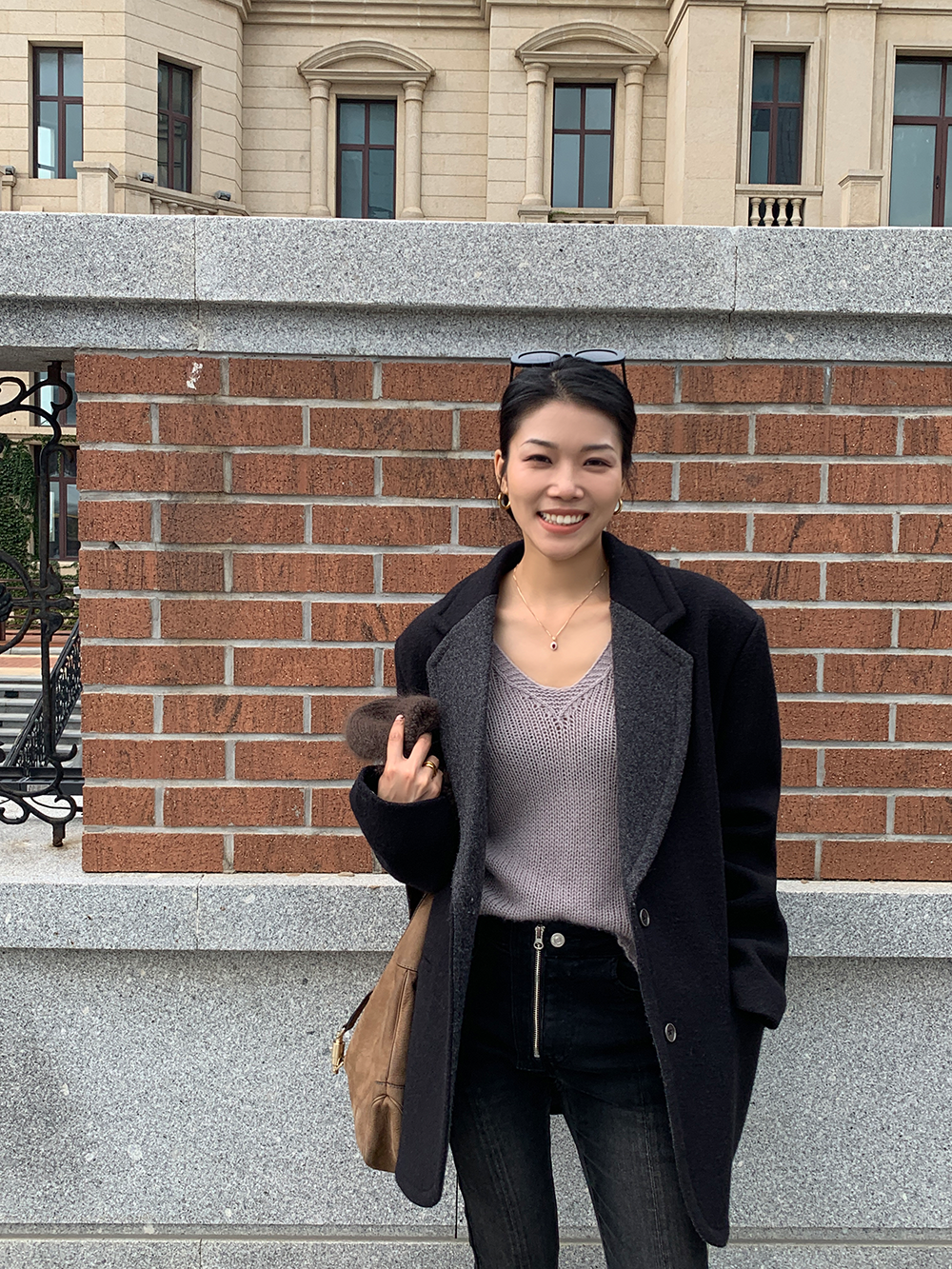 *o-ha-you*【FLCT1719】復古毛呢西裝外套2023新款冬季寬鬆輪廓氣質高級感呢子西服-2色