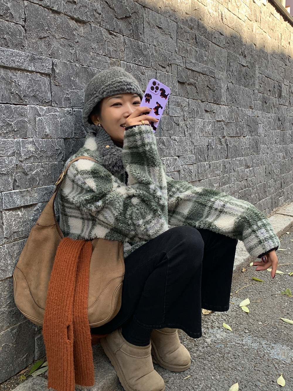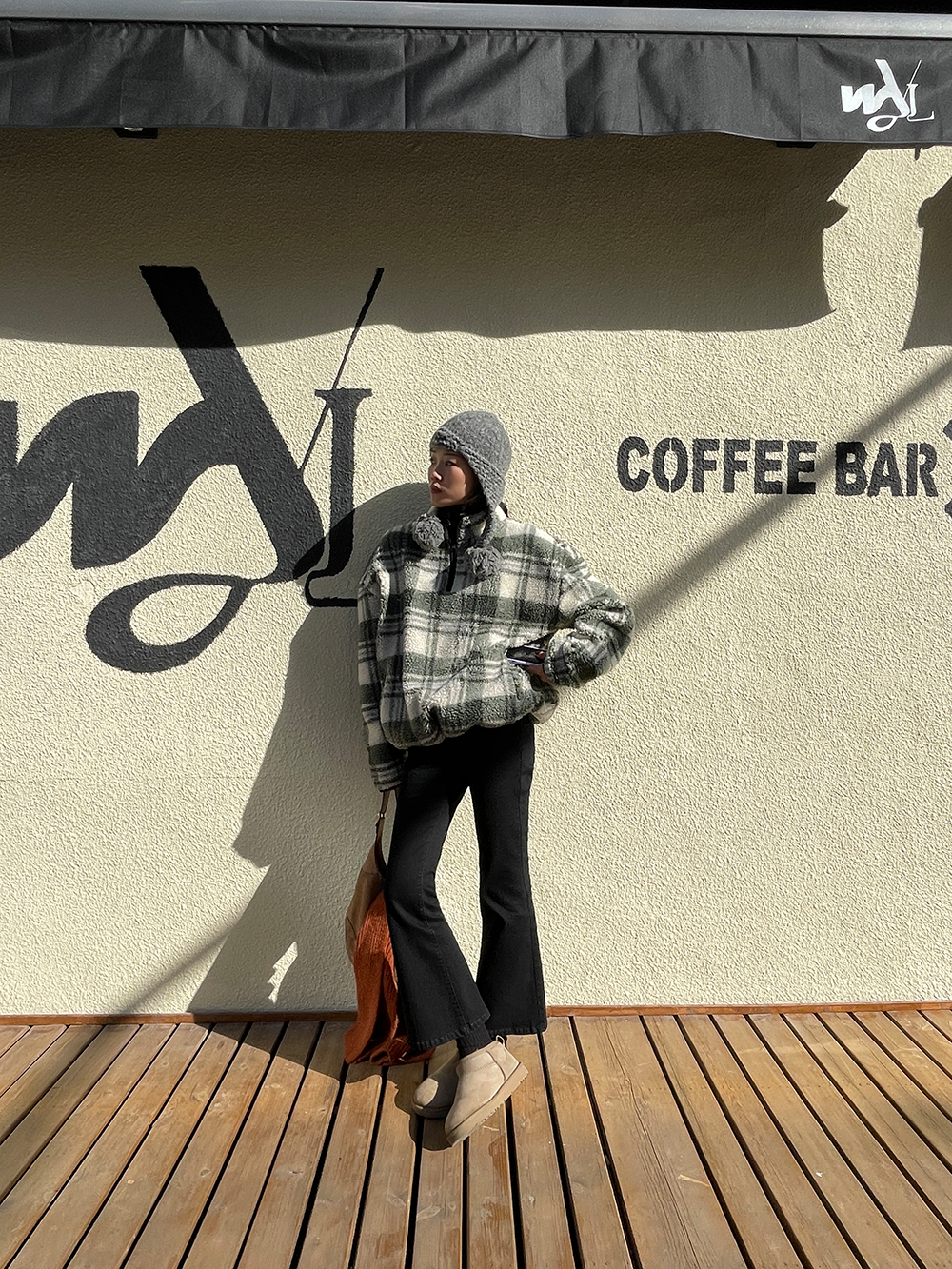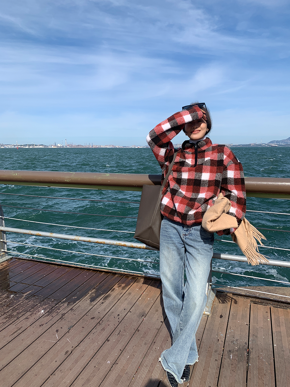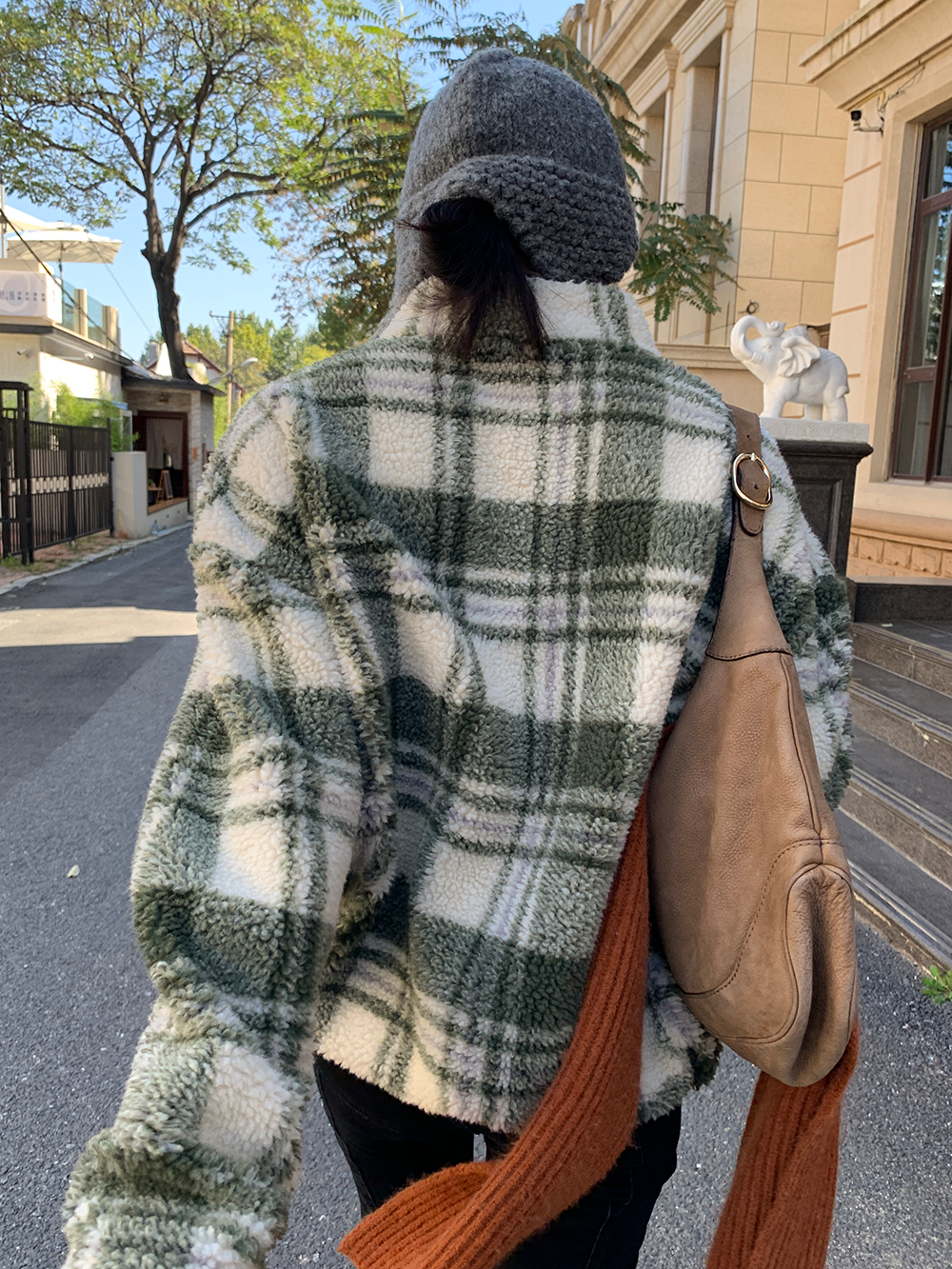 *o-ha-you*【FLCT1732】格紋搖粒絨衛衣秋冬季2023新款復古休閒寬鬆長袖加厚套頭上衣-2色-如有需要請先諮詢